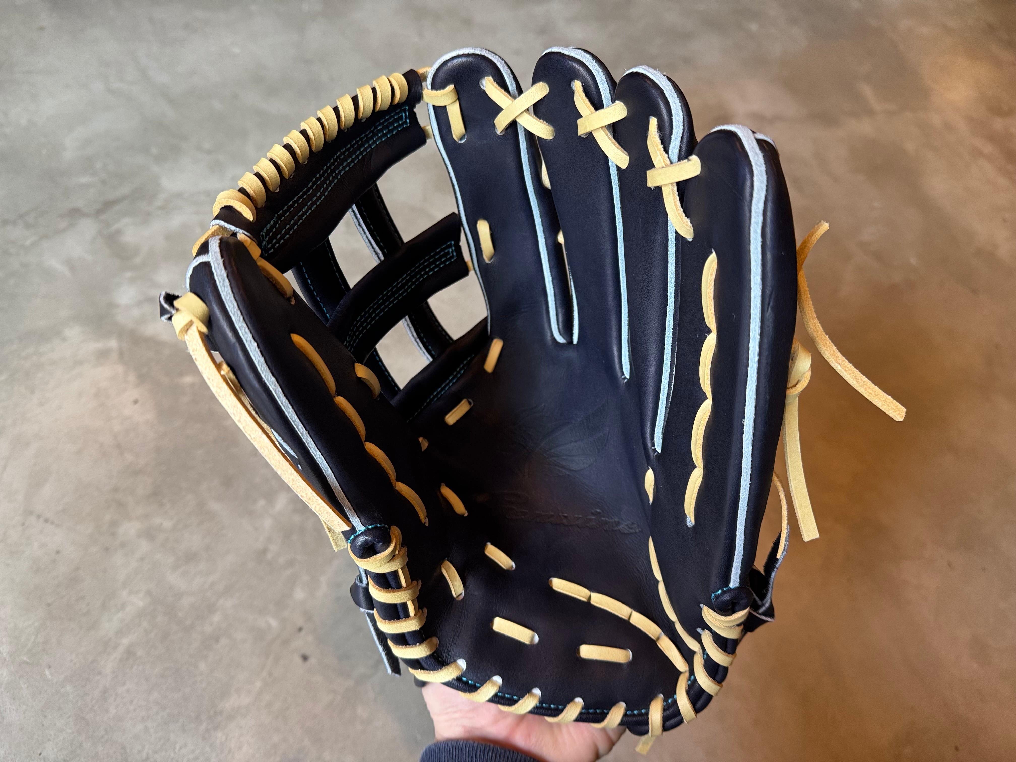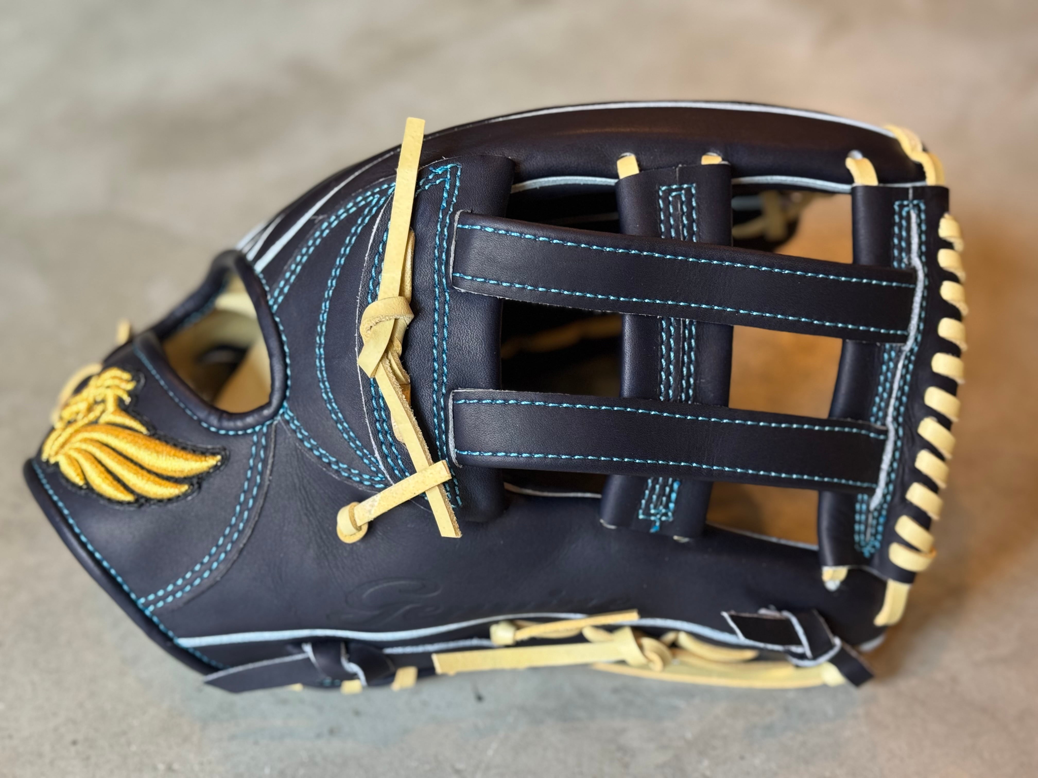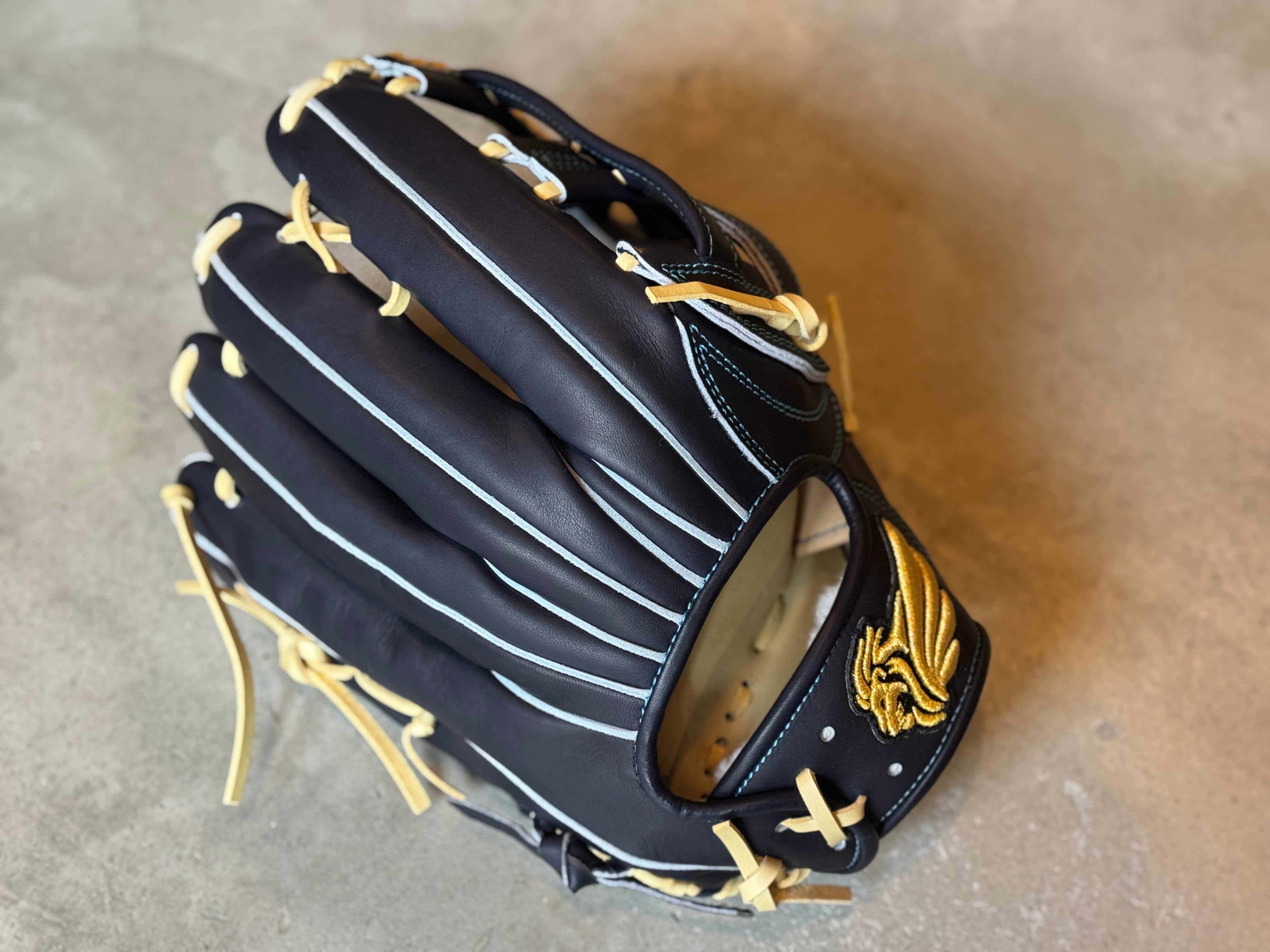 〜野球界の最高級ブランドへ〜 数多くの実業団選手の方々の意見を取り入れ、作り上げた野球ブランド 〜驚愕のブースト加工済モデル〜 このグラブをはめるだけで体幹力が大幅UP! 結果、普段よりも強い送球や体幹の強いプレーが可能に! 型番:MIU-M9 球際を意識し指先まで感覚が通るがっちりと掴める設計。ウェブもダブルクロスタイプを採用し、さらにガッチリ! ブランド特有の軽量感も相まって最高の相棒になること間違いナシ! ※サイズ約33.0cm ポジション:外野手 本体カラー:インペリアルブラック 平裏カラー:キャメル 紐カラー:キャメル ステッチカラー:サックス ラベル:ゴールド×ブラック 専用グラブ袋:有 高校野球使用:可 [Genuine]ジェニュイン 数多くの実業団選手からの意見を取り入れて、一から金型を作りあげ、2年もの歳月を経て追求し完成。 2023年10月1日からスタートした野球メーカー。 プロ選手が使用している品質をアマチュアの選手にも届けたい想いでスタート‼︎ 革のハリ・ツヤ感が良く、尚且つ軽い。ストレス無く打球に反応しやすい印象。 親指と小指の芯材を硬くし、しっかり感も残しつつ開閉しやすいグローブとなっている。 ※送料無料 ※型付け有の場合、加工期間に1週間程度かかる可能性がございます。予めご了承下さい。 追加で確認する事項がありましたらメールにてご連絡する事がございます。 ※柔らかさの目安(個人差はございます) 「硬め」・・・形を整える程度。お客様ご自身で柔らかくしていくイメージ。 「普通」・・・キャッチボールが出来る程度。多少の開閉ができるイメージ。 「柔らかめ」・・・ノックなど受けれる程度。しっかり開閉できるイメージ。 ※グラブ刺繍は、平裏土手部のみ可能。ご利用の際はグラブ刺繍ページをご確認下さい。 (メニューバー→カテゴリ→グラブ刺繍)