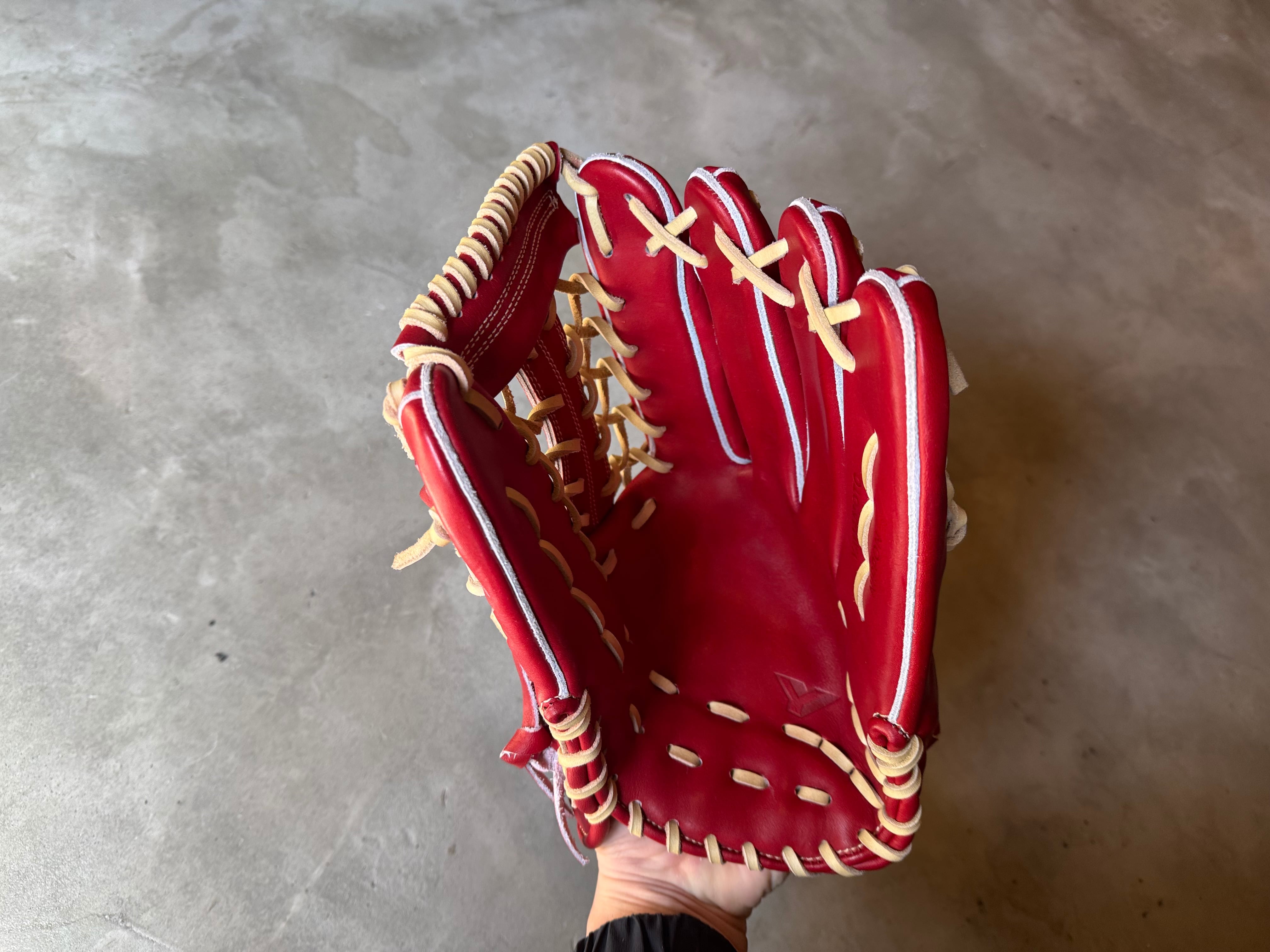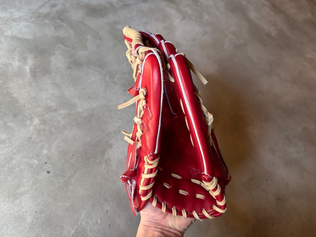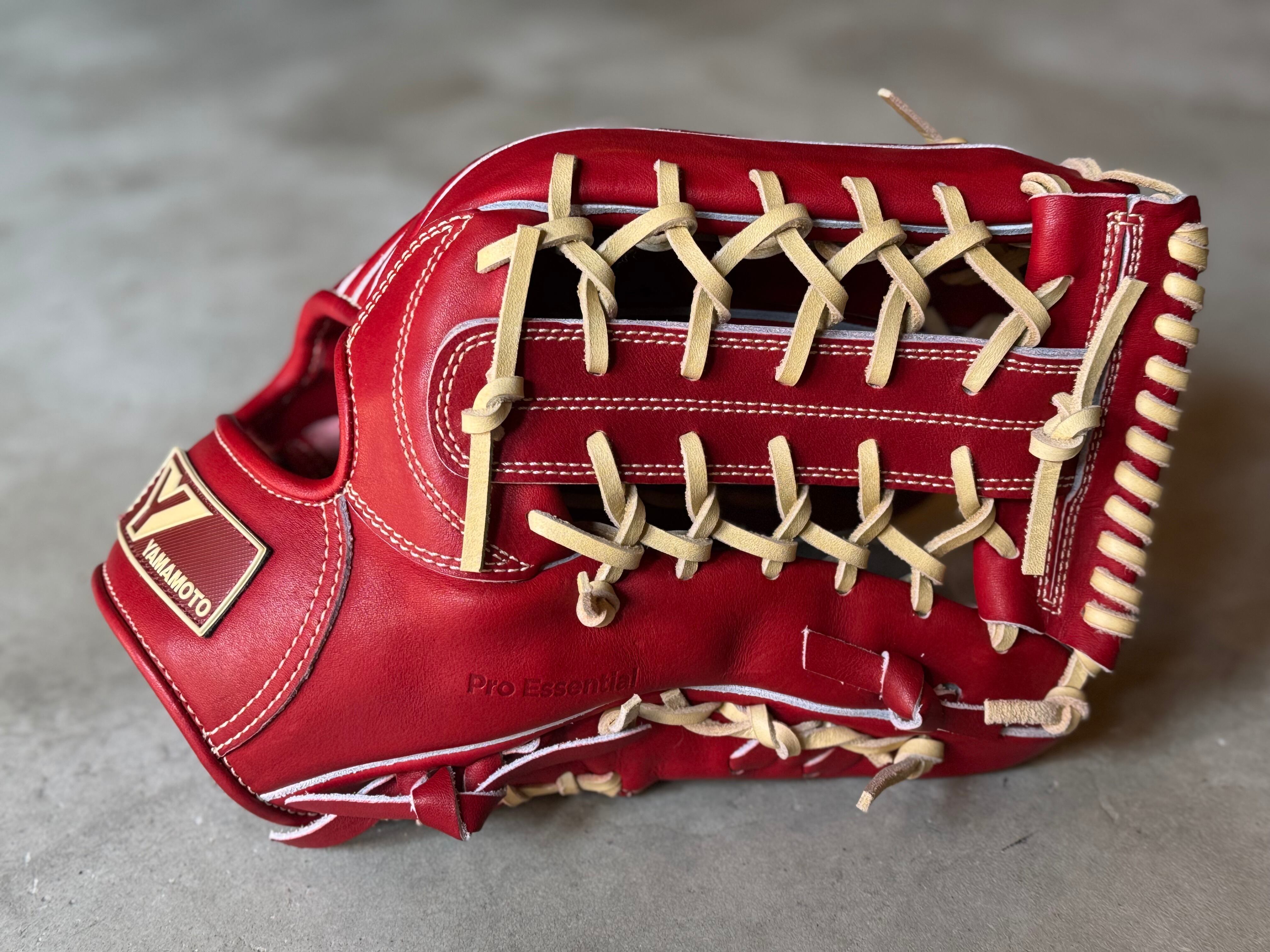 ※即戦力型付け済商品 型番:CG98 約33.0cm。ポケットが人差し指のラインに深く、親指と小指でボールを挟み込むスタンダードな外野用です。 グラブの人差し指の下から、手のひら、土手と縦にポケットが揃うモデルです。 親指と小指でパカパカ系です。 ポジション:外野手 本体カラー:ボルドー 紐カラー:クリーム ステッチカラー:クリーム ラベル:YAMAMOTO STYLEラベル ボルドー×クリーム 専用グラブ袋:有 高校野球使用:可 ボーイズリーグ使用可 "YAMAMOTO Pro Essential" 全ての野球選手の必需品を目指すシリーズ プロ選手から年々ニーズが高まっている、硬さをキープできるグラブをテーマに取り組みました。 グラブの課題は夏場です。 捕球感の良い、しっかりと手に馴染んだグラブが夏場にどれだけバテないか。 その永遠の課題に正面から向かいました。 ・採用レザーの紹介 新皮革"ダイナミックハードレザー" 原皮力の高い、北欧産原皮を使用したレザーになります。 捕球感はガチっとした硬さを感じつつも、躍動的なグラブの開閉性能を出せるレザーです。 グラブのアーチ感や形状をキープをしやすい様に革表面の硬さにこだわった鞣しになっております。 グラブを設計図通りの形をキープしつつ開閉させたいと思いこのレザーを作りました。 グラブの性能により手の動きを導いてほしい選手にオススメです。 手の動きを自在にグラブで表現するイメージではなく、グラブの設計図通りの開閉性能により選手の手の動きを導くイメージです。 革は硬く鞣してあるのですが、ヒンジなどの柔らかくしたい部分だけを狙って動きは出しやすくなっております。 開閉の硬さではなく、グラブの形状記憶的な硬さを表現しております。 "カチッとしたグラブ"、"パキッとしたグラブ"という表現のグラブの中で最適解の仕上がりだと思います。 全てグラブを型付け済み販売する事で動きと硬さのバランスを両立する事ができました。 ・新デザインラベル "YAMAMOTO STYLE" 今回のシリーズは商標の存在感をアピールする事よりも、 グラブデザインとラベルデザインのシンプルさ、統一感を意識しました。 シンプルに捕球性能を追い求める弊社ヤマモトの流儀(STYLE)を表現したく、デザインにもシンプルさを落とし込みました。 見た目の派手さではなく、捕球性能、グラブのフィット感でシンプルに選んで頂きたい想いのデザインです。 上記が新ロゴ、YAMAMOTO STYLEの名称の由来です。 ※送料無料 ※型付け有の場合、加工期間に1週間程度かかる可能性がございます。予めご了承下さい。 追加で確認する事項がありましたらメールにてご連絡する事がございます。 ※柔らかさの目安(個人差はございます) 「硬め」・・・形を整える程度。お客様ご自身で柔らかくしていくイメージ。 「普通」・・・キャッチボールが出来る程度。多少の開閉ができるイメージ。 「柔らかめ」・・・ノックなど受けれる程度。しっかり開閉できるイメージ。
