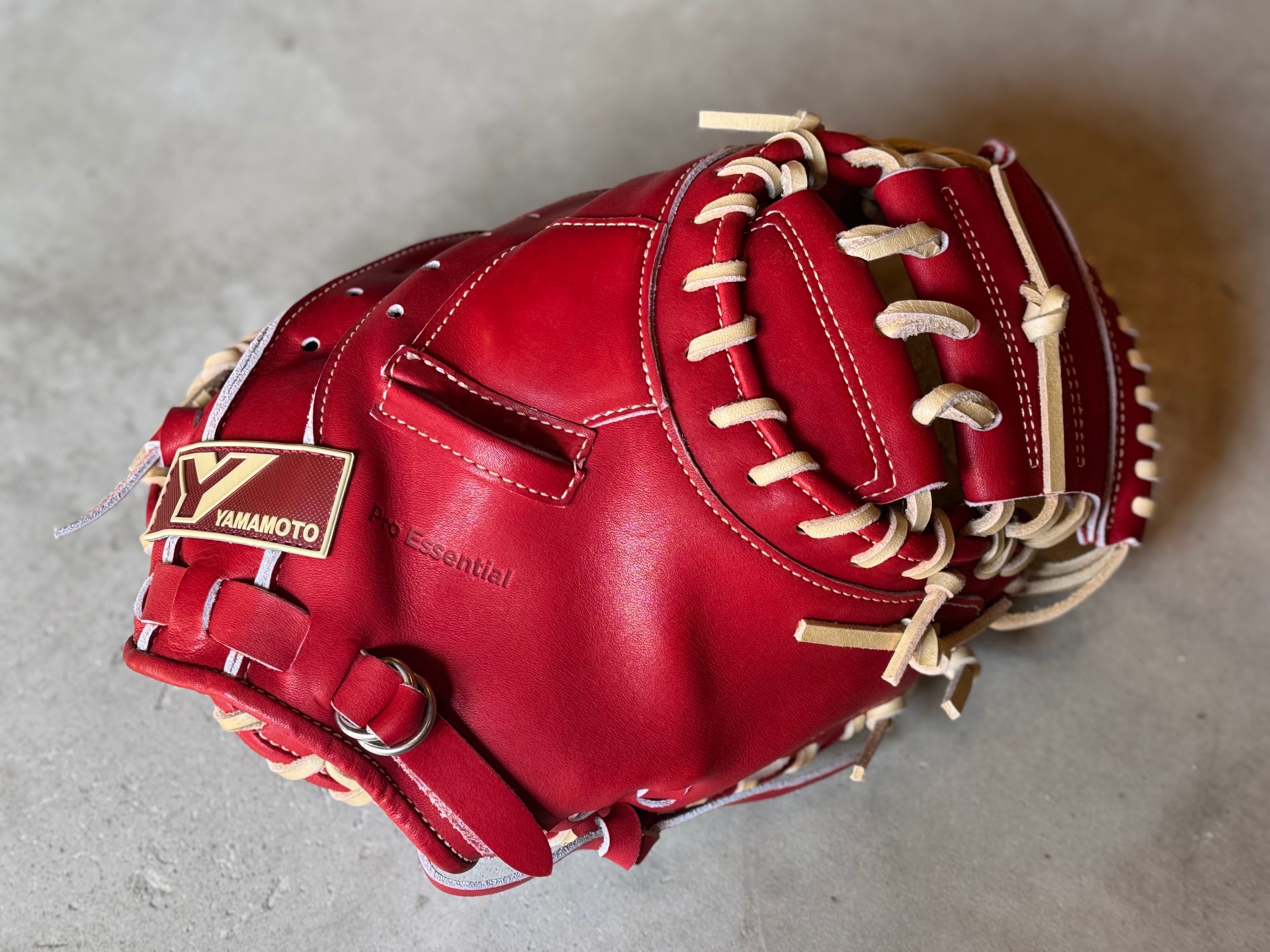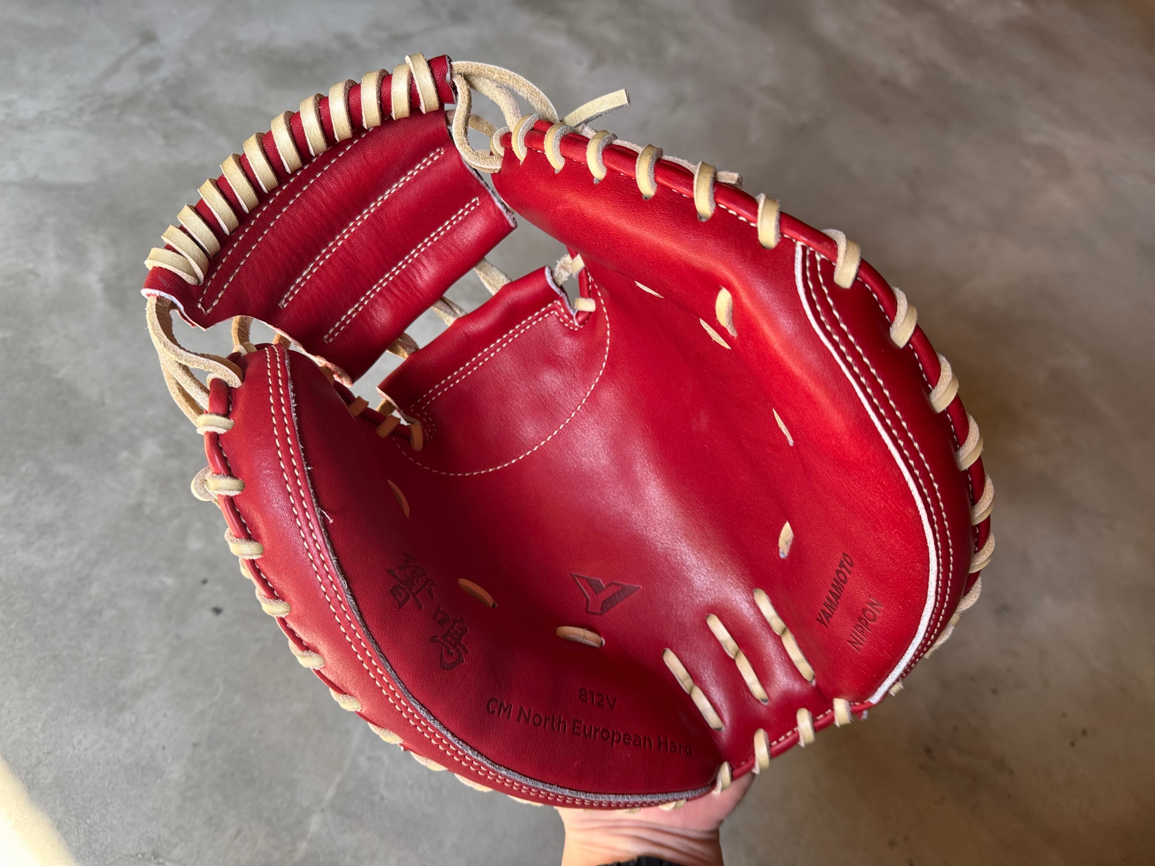 ※硬めで型付け済商品 型番:812V 912Vよりワンサイズ小さいモデル。 コンパクトなサイズ感の割に深いポケットしっかり捕球したい選手にオススメ。 キャッチャーミットのど真ん中にポケットを作っていくと良い音がなります。 ミットを捻らず動かさないで捕球したい選手にオススメです。 小さめで操作性の良いミットです。 ポジション:捕手 本体カラー:ボルドー 紐カラー:クリーム ステッチカラー:クリーム ラベル:YAMAMOTO STYLEラベル ボルドー×クリーム 専用グラブ袋:有 高校野球使用:可 ボーイズリーグ使用可 キャッチャーミット専用皮革CM North European Leather Hardを使用。 甲高い捕球音を鳴り響かせる事を意識して、 レザーの表面(銀面)を引き締める"タイトスキン"加工を採用。 原皮力の高い北欧産原皮をより一層引き締めております。 "タイトスキン"の名の通り、グラブレザーよりもかなり伸びに強い仕上げになっております。 捕球をすればするほどキャッチポイントにテンションが掛かっていきハリ感、固まり感が出てきます。 ハリ感、固まり感が出てきたミットは甲高い捕球音のミットに育っていきます。 今回の商品から前回の"タイトスキン"に加えてさらに硬さを引き出しております。 甲高い捕球音が遠くまで"鳴り響く"キャッチャーミット。 その捕球音でチームを"共鳴"させて、ゲームを支配しリードするキャッチャーをイメージしました。 "鳴り響く"ミットと"共鳴"をリンクさせて【響鳴】という造語をシリーズネームにさせて頂きました 〜メーカーHPより抜粋〜 ※送料無料 ※型付け有の場合、加工期間に1週間程度かかる可能性がございます。予めご了承下さい。 追加で確認する事項がありましたらメールにてご連絡する事がございます。 ※柔らかさの目安(個人差はございます) 「硬め」・・・形を整える程度。お客様ご自身で柔らかくしていくイメージ。 「普通」・・・キャッチボールが出来る程度。多少の開閉ができるイメージ。 「柔らかめ」・・・ノックなど受けれる程度。しっかり開閉できるイメージ。