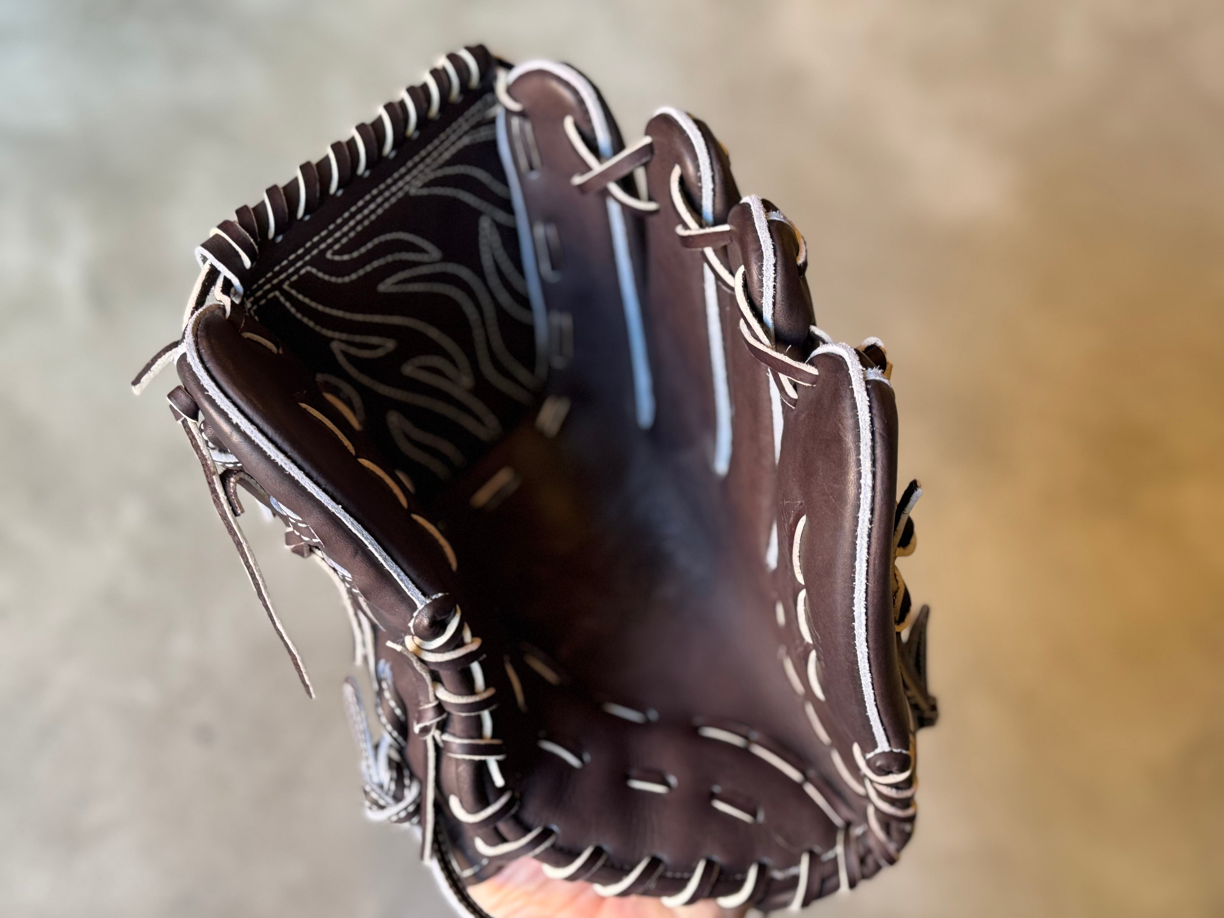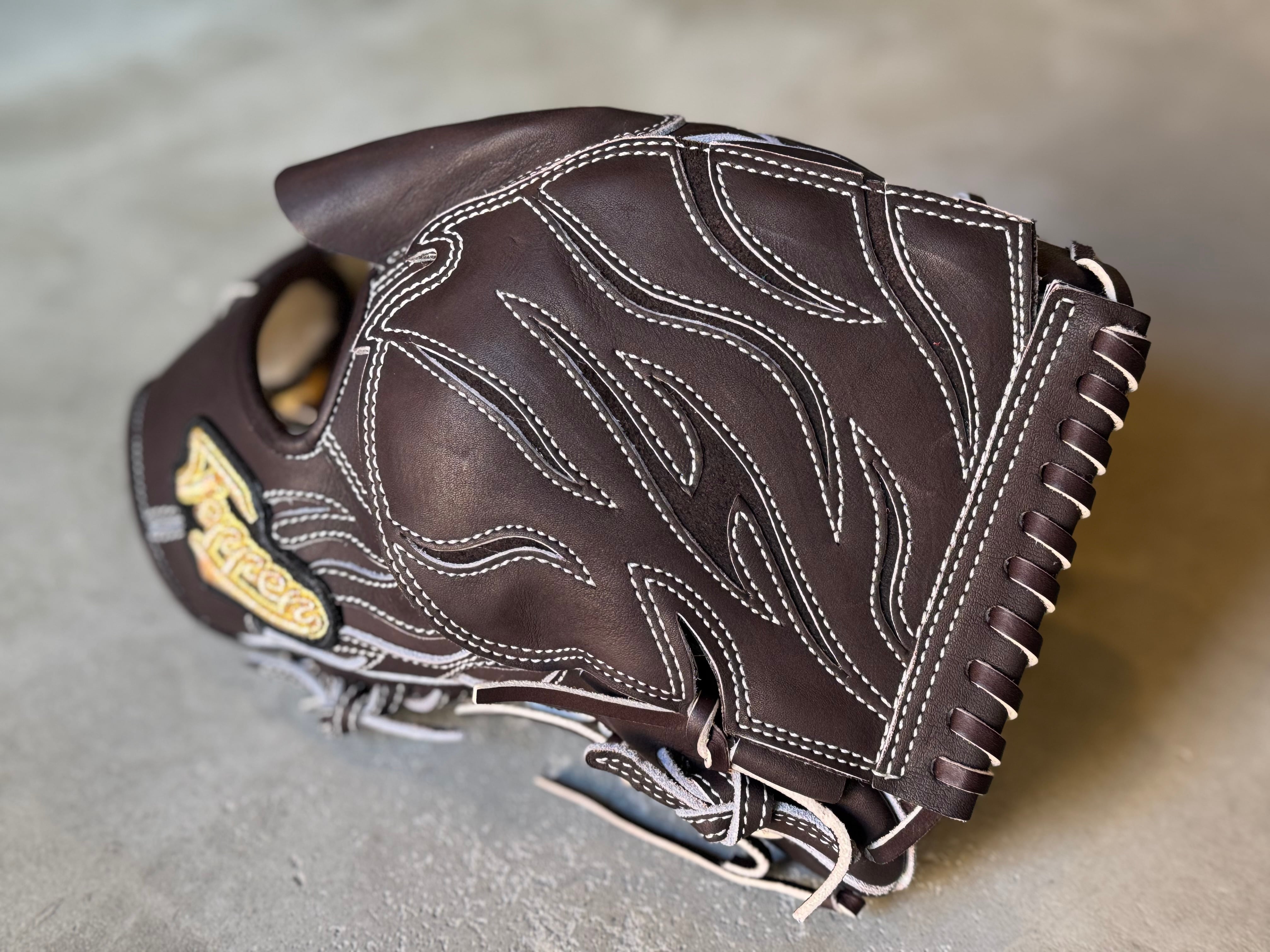NEWウェブ燃え盛る闘志の炎をイメージした[T6]を採用。 型番:SW1 ウェブ曲げないスタイルでもおなじみ。 TEPPENが誇る人気の投手用[SW1] ポジション:投手 本体カラー:Bブラウン ヒラウラカラー:ブロンド ヒモカラー:ブラウン中白 ステッチカラー:ホワイト ラベル:限定ラベル 専用グラブ袋:有 ボーイズ・ヤング・高校野球使用:可 TEPPENはじめ氏『至極仕上げ』 TEPPENのグラブは、はじめ氏が魂を込めて形を整えて店舗に入荷してくる。 質感、手馴染みの良さも健在のTEPPENレザーも相まって良いグラブに仕上がってます。 ⭐︎自分だけのTEPPENグローブを作ろう! こちらのECサイトでは、TEPPENグローブのオーダーも受付可能です。 納期は2ヶ月半〜3ヶ月ほど。 お気軽にご相談下さい。 ※送料無料 ※型付け有の場合、加工期間に1週間程度かかる可能性がございます。予めご了承下さい。 追加で確認する事項がありましたらメールにてご連絡する事がございます。 ※柔らかさの目安(個人差はございます) 「硬め」・・・形を整える程度。お客様ご自身で柔らかくしていくイメージ。 「普通」・・・キャッチボールが出来る程度。多少の開閉ができるイメージ。 「柔らかめ」・・・ノックなど受けれる程度。しっかり開閉できるイメージ。 ※グラブ刺繍は、平裏土手部のみ可能。ご利用の際はグラブ刺繍ページをご確認下さい。 (メニューバー→カテゴリ→グラブ刺繍)