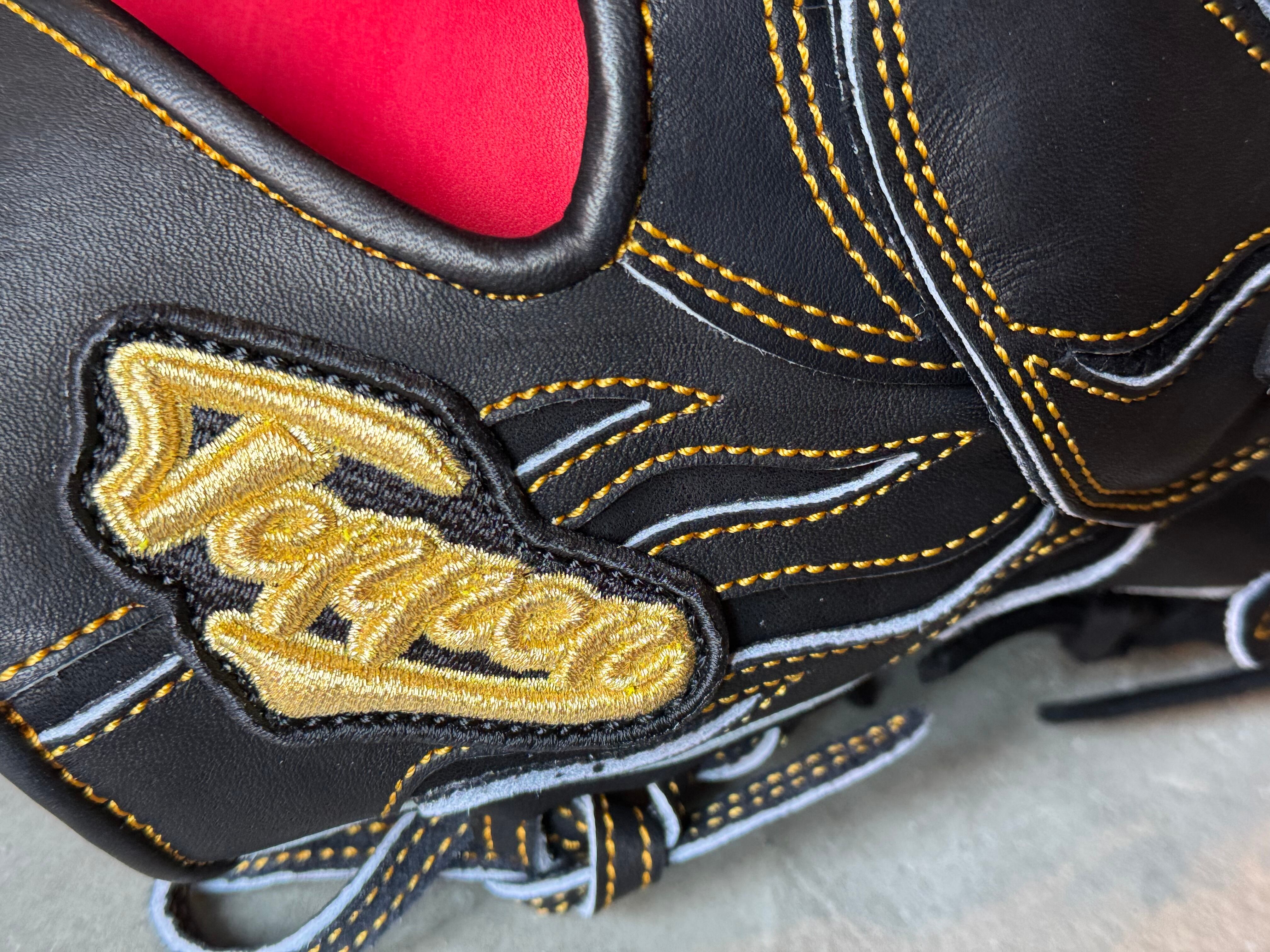 NEWウェブ燃え盛る闘志の炎をイメージした[T6]を採用。 型番:SW1 ウェブ曲げないスタイルでもおなじみ。 TEPPENが誇る人気の投手用[SW1] ポジション:投手 本体カラー:ブラック ヒラウラカラー:ワインブラウン ヒモカラー:ブラック ステッチカラー:オレンジ ラベル:ゴールド×ゴールド×ブラック 専用グラブ袋:有 ボーイズ・ヤング・高校野球使用:可 TEPPENはじめ氏『至極仕上げ』 TEPPENのグラブは、はじめ氏が魂を込めて形を整えて店舗に入荷してくる。 質感、手馴染みの良さも健在のTEPPENレザーも相まって良いグラブに仕上がってます。 ⭐︎自分だけのTEPPENグローブを作ろう! こちらのECサイトでは、TEPPENグローブのオーダーも受付可能です。 納期は2ヶ月半〜3ヶ月ほど。 お気軽にご相談下さい。 ※送料無料 ※型付け有の場合、加工期間に1週間程度かかる可能性がございます。予めご了承下さい。 追加で確認する事項がありましたらメールにてご連絡する事がございます。 ※柔らかさの目安(個人差はございます) 「硬め」・・・形を整える程度。お客様ご自身で柔らかくしていくイメージ。 「普通」・・・キャッチボールが出来る程度。多少の開閉ができるイメージ。 「柔らかめ」・・・ノックなど受けれる程度。しっかり開閉できるイメージ。 ※グラブ刺繍は、平裏土手部のみ可能。ご利用の際はグラブ刺繍ページをご確認下さい。 (メニューバー→カテゴリ→グラブ刺繍)