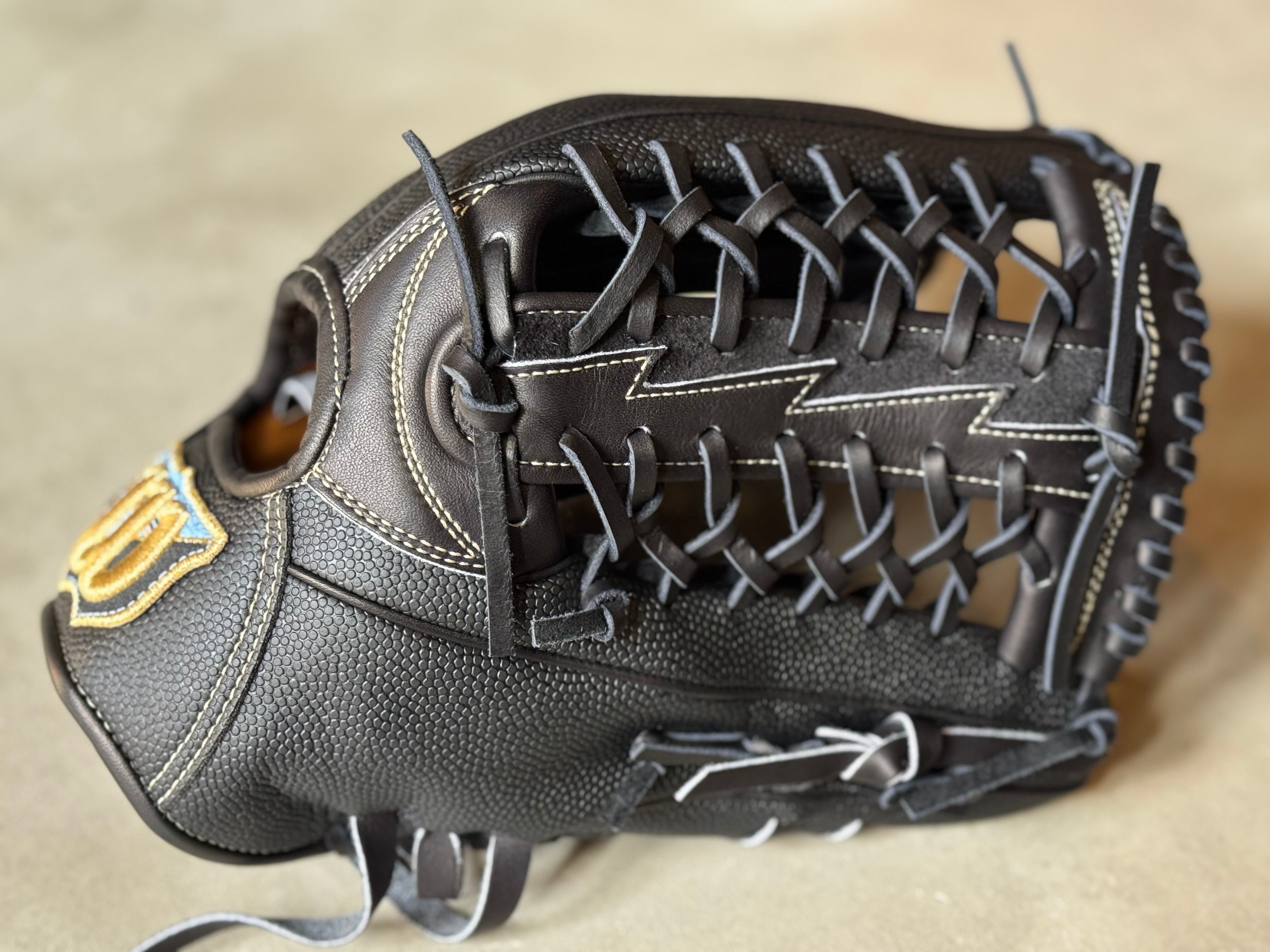※写真7〜8枚目は型付けイメージです。 型番:D8型 レッドソックス吉田正尚選手愛用。 Wilsonの人気の外野手用。(12.5インチ) 大きく開き、深いポケットで打球を確実に捕るグラブ。ウェブも流行りのダブルシャープを使用し、ガッチリ掴むことをサポート。 〜デュアル・テクノロジー〜 丸みを帯びた独特な形状により、ポケット以外の部分にボールが当たっても自然とポケットに収まり、捕球から正確なスローイングが可能。 深めでしっかりとキャッチできるモデルとなっております。 ポジション:外野手 本体カラー:ブラックSS ステッチカラー:ブロンド 紐カラー:ブラック ラベル :サックスMC×ブラック 高校野球使用:可 『守備率10割に近づくグラブ』 ◎適材適所設計 〜ポジションによりプレー内容はことなる。よってグラブの役割も異なる〜 「適材(最もふさわしい革と芯材)」を「適所」に採用し、細部に拘って日本の職人が手仕事により作り上げた、技術力向上最重視グラブ。 ○外野手用〜飛球、ゴロを確実に捕球するためのグラブ〜 ・球際の強さを発揮する大きく開くポケット設計。指先まで力が伝わり操作性抜群。 ※送料無料 ※型付け有の場合、加工期間に1週間程度かかる可能性がございます。予めご了承下さい。 追加で確認する事項がありましたらメールにてご連絡する事がございます。 ※柔らかさの目安(個人差はございます) 「硬め」・・・形を整える程度。お客様ご自身で柔らかくしていくイメージ。 「普通」・・・キャッチボールが出来る程度。多少の開閉ができるイメージ。 「柔らかめ」・・・ノックなど受けれる程度。しっかり開閉できるイメージ。