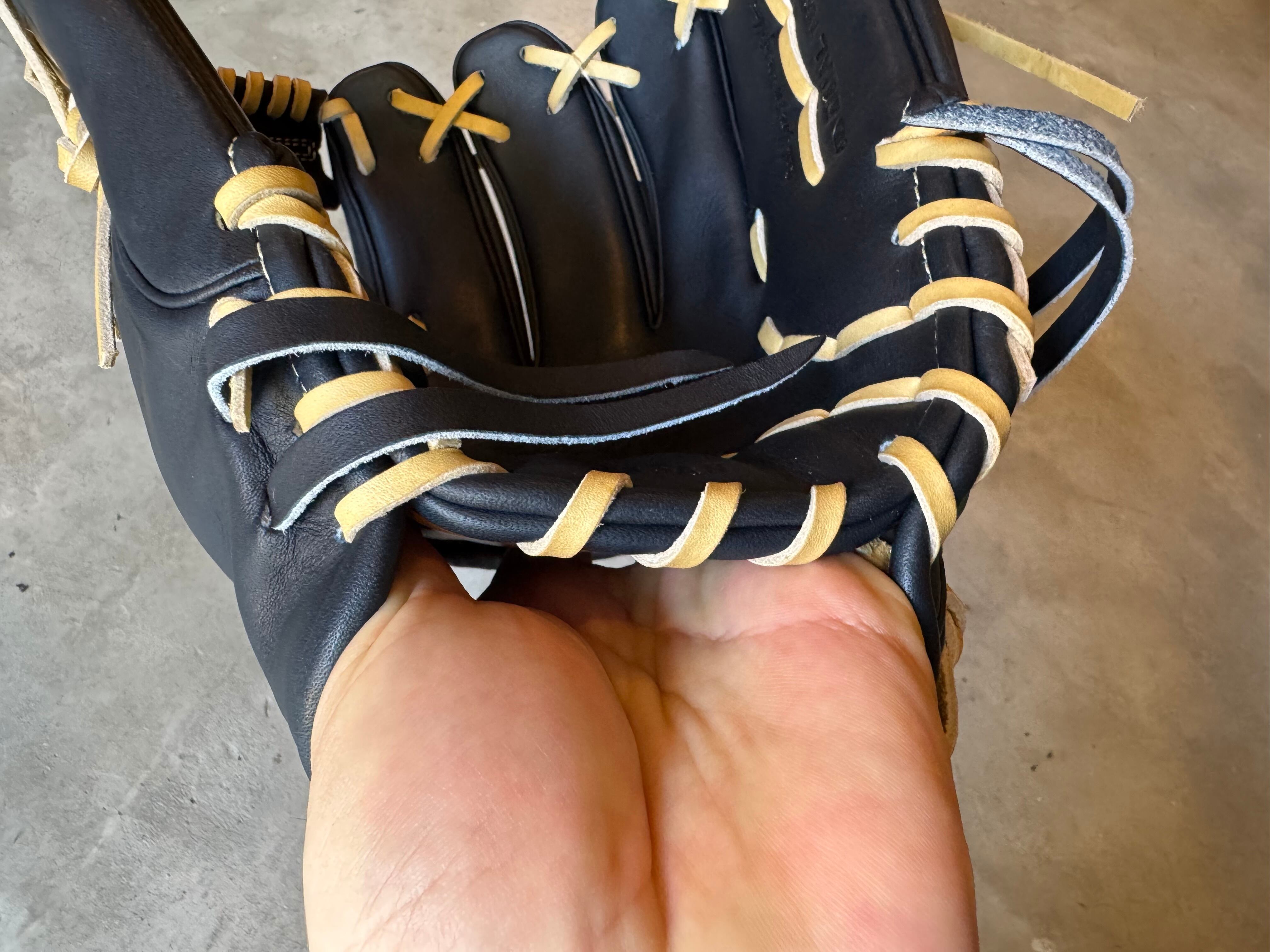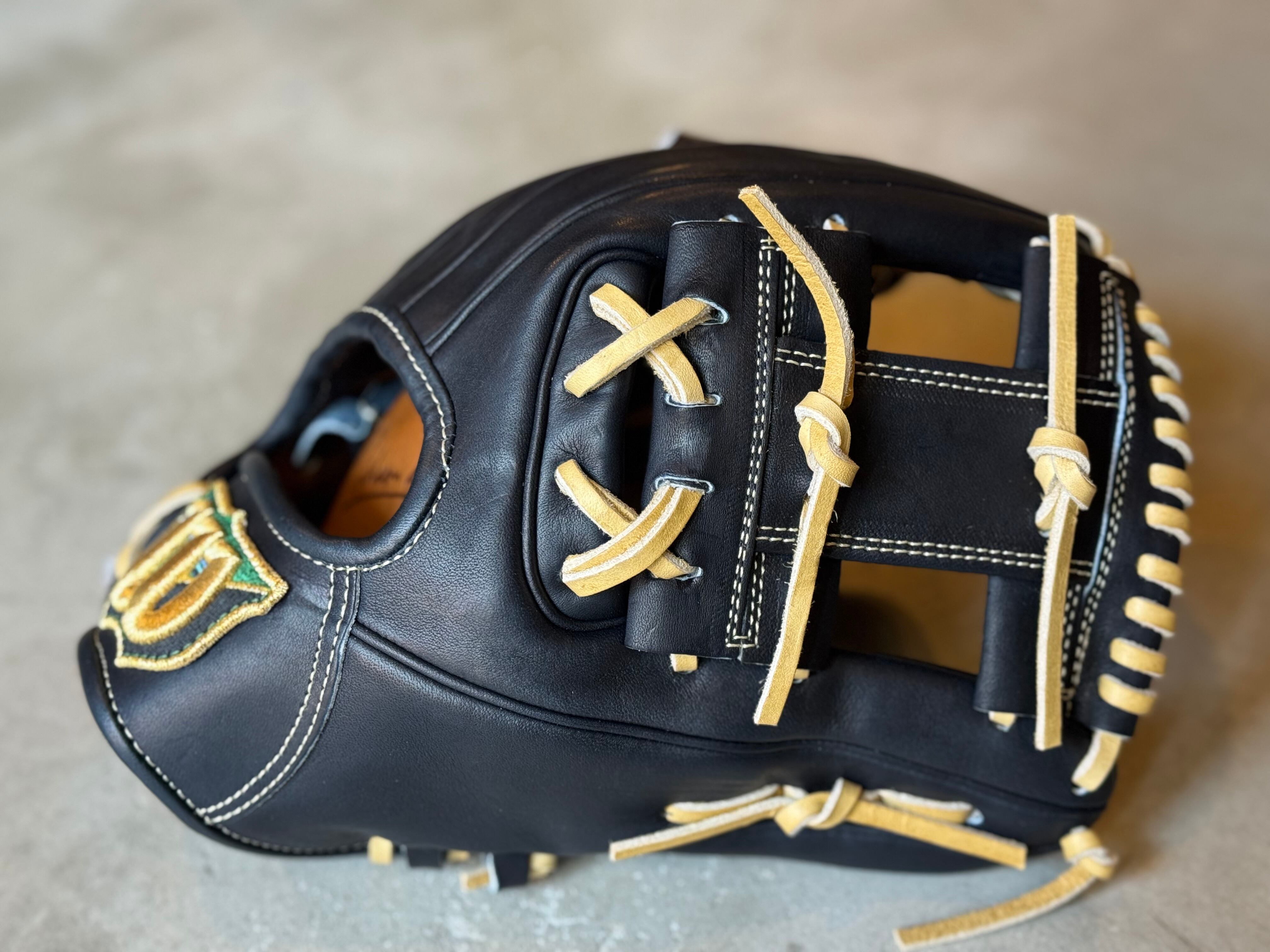 ※写真8〜9枚目は型付けイメージです。 型番:86PF型コユニ推奨 (11.5インチ) MLBで人気の内野手用、ポケットをタテに使うグラブ。手の小さな方でもフィットする機能を搭載。 全体的に指の位置を下げて、手の小さな方でもコユニで使いやすくしている。 〜デュアル・テクノロジー〜 丸みを帯びた独特な形状により、ポケット以外の部分にボールが当たっても自然とポケットに収まり、捕球から正確なスローイングが可能。 深めでしっかりとキャッチできるモデルとなっております。 ポジション:内野手 本体カラー:Wブラック ステッチカラー:ブロンド 紐カラー:ブロンド ラベル :グリーンMC×ブラック 専用グラブ袋有り 高校野球使用:可 深めでしっかりとキャッチできるモデルとなっております。 縦にポケットを使う事で握り替えも早く素早い送球が出来ます。 『守備率10割に近づくグラブ』 ◎適材適所設計 〜ポジションによりプレー内容はことなる。よってグラブの役割も異なる〜 「適材(最もふさわしい革と芯材)」を「適所」に採用し、細部に拘って日本の職人が手仕事により作り上げた、技術力向上最重視グラブ。 ○内野手用〜正確に打球をさばくためのグラブ〜 ・手のように自由に動く柔軟性と、軽快な守備を可能にする軽さ、高い耐久性の最強コンビネーション。 ※送料無料 ※型付け有の場合、加工期間に1週間程度かかる可能性がございます。予めご了承下さい。 追加で確認する事項がありましたらメールにてご連絡する事がございます。 ※柔らかさの目安(個人差はございます) 「硬め」・・・形を整える程度。お客様ご自身で柔らかくしていくイメージ。 「普通」・・・キャッチボールが出来る程度。多少の開閉ができるイメージ。 「柔らかめ」・・・ノックなど受けれる程度。しっかり開閉できるイメージ。 ※グラブ刺繍は、平裏土手部のみ可能。ご利用の際はグラブ刺繍ページをご確認下さい。 (メニューバー→カテゴリ→グラブ刺繍)
