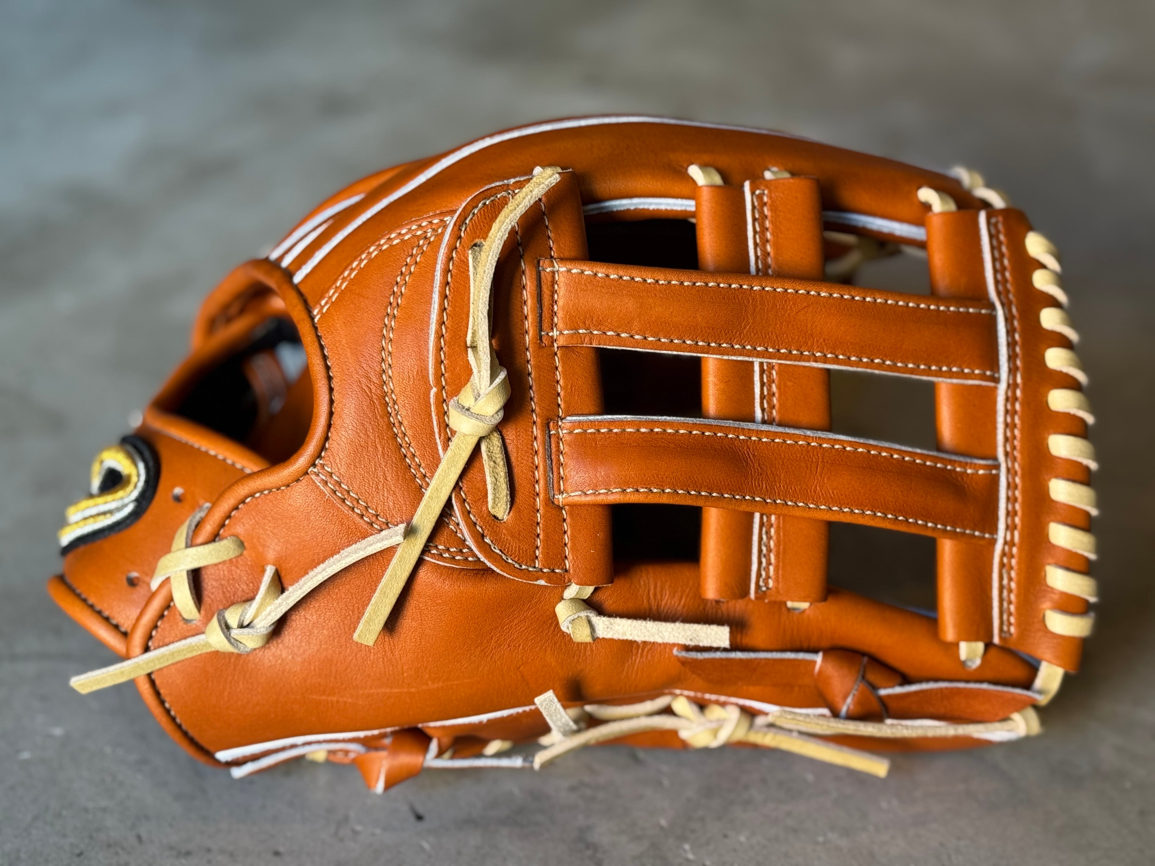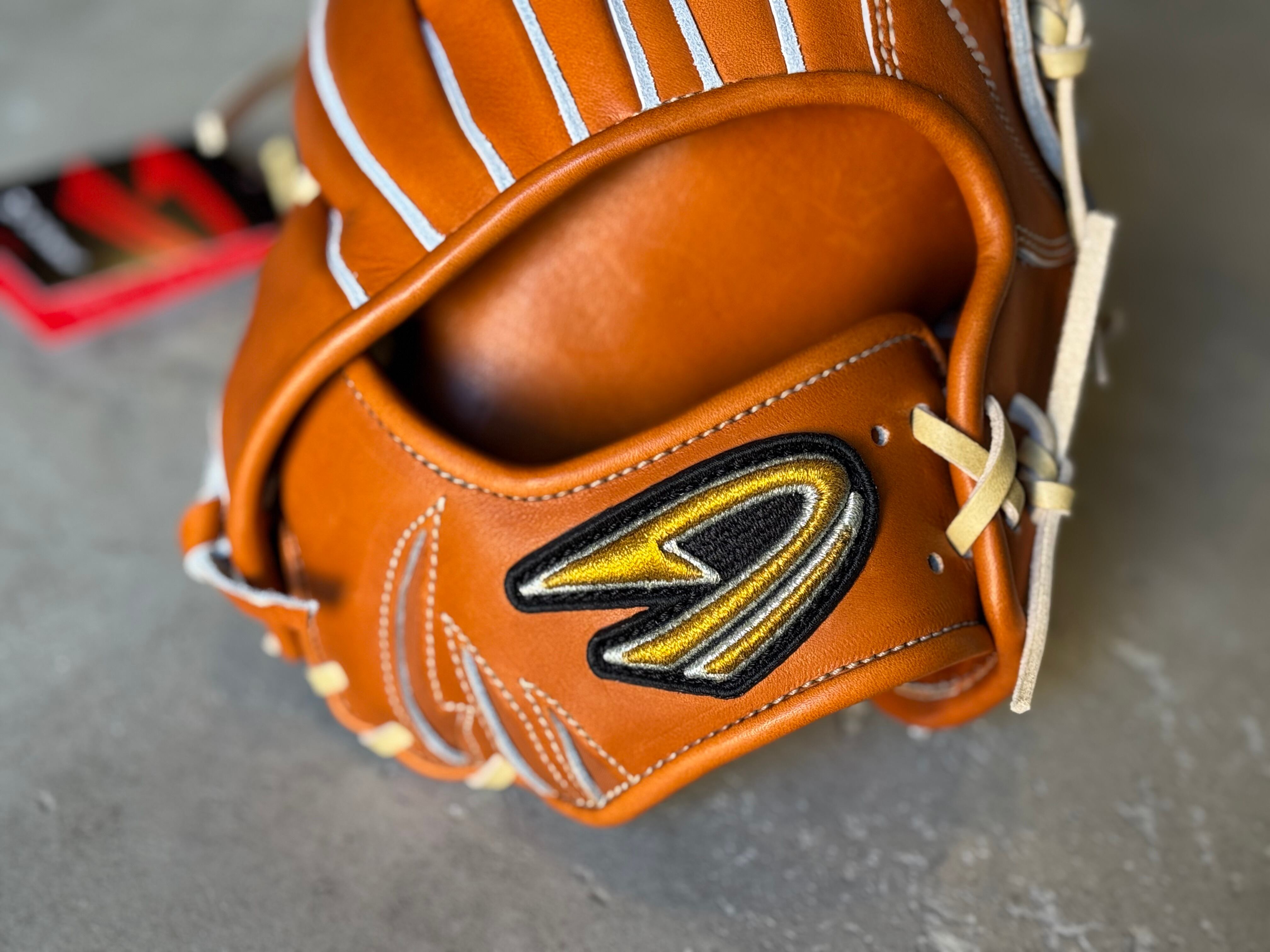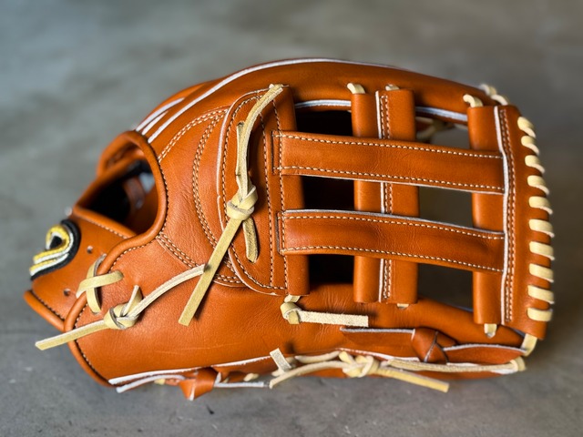 〜STEP UP LEADe〜 新型D-Frex Band採用のフィット感、屈曲性、握りやすさを高めたモデル。 従来のJT Leatherより高いグリップ力のある“ノンスリップ”タイプの皮革を採用。 型番:DFH-181 ※サイズ約32.5cm ポジション:外野手 ポケットが広く深い、設計。操作性と指のバランスが良い外野手用モデル。フライにも捕球面がスムーズに向きやすい設計。 本体カラー:Tブラウン 紐カラー:Cブラウン ステッチカラー:キャメル ラベル:ゴールド×プラチナ×ブラック 専用グラブ袋:有 中学・高校野球使用:可 〜NEWシリーズ「STEP UP LEADe」〜 ○大人気シリーズSTEP UP NEXGのネクストモデル。 身体の成長してきた高校生や大学生以上の選手にも存分に使ってもらえる[D-Frex Band]シリーズの最上級モデル。 さらに従来のD-Frex Bandに改良。フィット感、屈曲性、捕球面の浮き軽減や握りやすさに加え、プレーヤーの技術向上に伴うグラブの開閉の自由度も実現。 ○JT Nonslip Leather採用 従来のJT Leatherより高いグリップ力のある“ノンスリップ”タイプの皮革を採用。 使えば使うほど手に馴染み、共に成長していくこのグラブで、ファクトリーブランド D-questのものづくりに対する思いの強さをご体感ください。 D-Questは世界で活躍する一流選手のグラブをつくる工房。 その職人が編んだグラブで、軽快な捕球と成長をサポートします。 ※送料無料 ※型付け有の場合、加工期間に1週間程度かかる可能性がございます。予めご了承下さい。 追加で確認する事項がありましたらメールにてご連絡する事がございます。 ※柔らかさの目安(個人差はございます) 「硬め」・・・形を整える程度。お客様ご自身で柔らかくしていくイメージ。 「普通」・・・キャッチボールが出来る程度。多少の開閉ができるイメージ。 「柔らかめ」・・・ノックなど受けれる程度。しっかり開閉できるイメージ。 ※グラブ刺繍は、平裏土手部のみ可能。ご利用の際はグラブ刺繍ページをご確認下さい。 (メニューバー→カテゴリ→グラブ刺繍)
