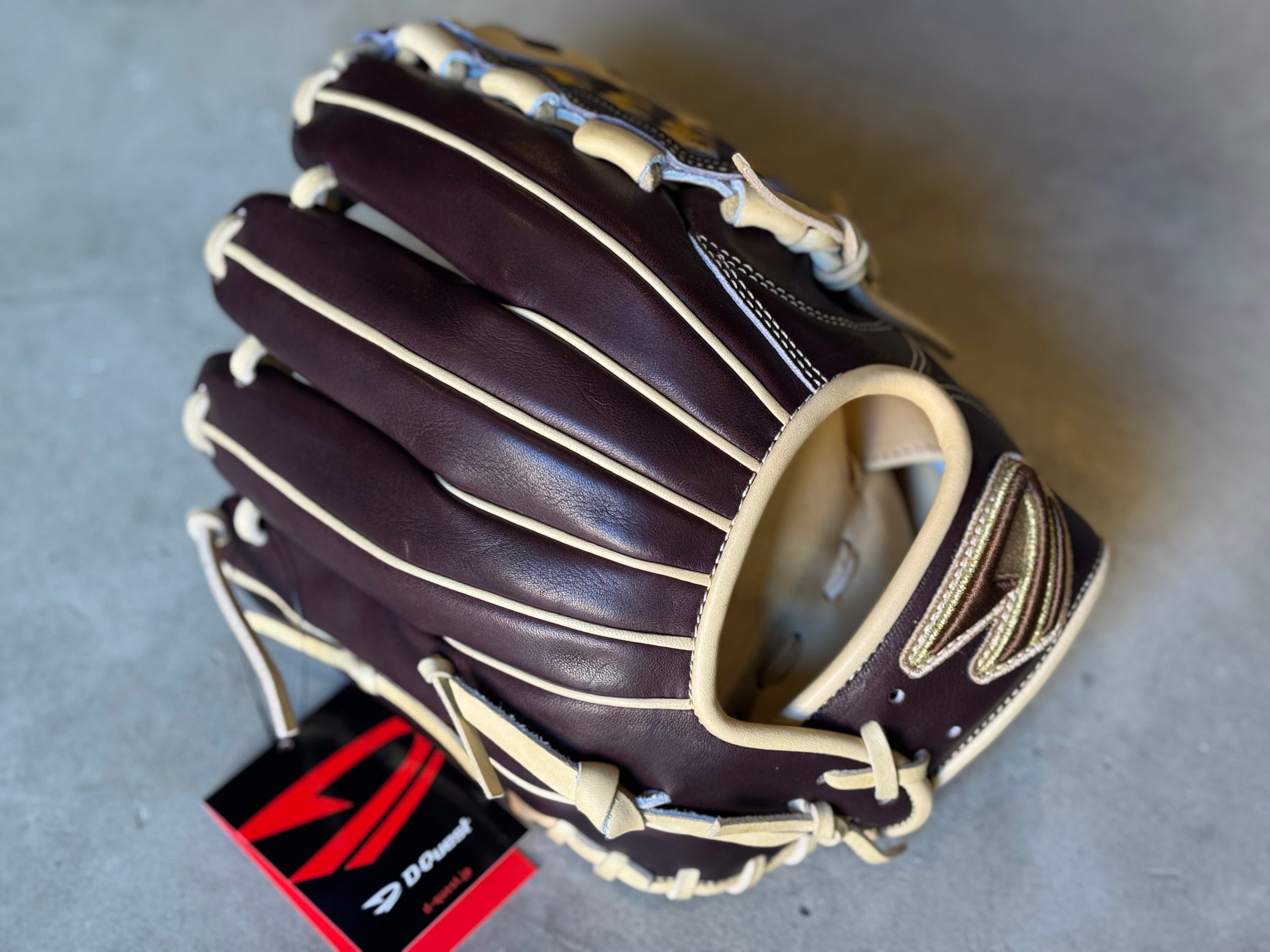[D-quest Craftmans Design GLOVE] 今まで数多のグラブを作ってきた[D-questグラブ職人たち]がデザインした世界で一つだけのオーダーグラブシリーズ。 型番:161型 サイズ約29.0cm ボールをしっかり包み込むことができる設計。 自然な手の動きで捕球することが可能で、スムーズなスローイングへと移行しやすいモデル。 ポジション:内野手 本体カラー:バーガンディ(JT Nonslip Leather使用) ヒラウラカラー:Cブラウン(JT Nonslip Leather使用) 紐カラー:Cブラウン ヘリ革:Cブラウン ハミダシ:タマハミCブラウン ステッチカラー:リッチゴールド ラベル:ブラウン×ゴールド×キャメル バンド部裏:ノーマル 専用グラブ袋:有 大学野球以上使用可 ※「メタックス」とは、ファイテン社最高レベルの水溶化メタル技術であり、各種金属をナノレベルで水中に分散した物です。この技術を用いた商品を身につけることで、カラダをリラックス状態へとサポートします。 硬式用の素材を使用したハイグレードモデル 道具にこだわる草野球プレーヤーにも大変オススメ! 使えば使うほど手に馴染み、共に成長していくこのグラブで、ファクトリーブランド D-questのものづくりに対する思いの強さをご体感ください。 D-Questは世界で活躍する一流選手のグラブをつくる工房。 その職人が編んだグラブで、軽快な捕球と成長をサポートします。 ※送料無料 ※型付け有の場合、加工期間に1週間程度かかる可能性がございます。予めご了承下さい。 追加で確認する事項がありましたらメールにてご連絡する事がございます。 ※柔らかさの目安(個人差はございます) 「硬め」・・・形を整える程度。お客様ご自身で柔らかくしていくイメージ。 「普通」・・・キャッチボールが出来る程度。多少の開閉ができるイメージ。 「柔らかめ」・・・ノックなど受けれる程度。しっかり開閉できるイメージ。 ※グラブ刺繍は、平裏土手部のみ可能。ご利用の際はグラブ刺繍ページをご確認下さい。 (メニューバー→カテゴリ→グラブ刺繍)