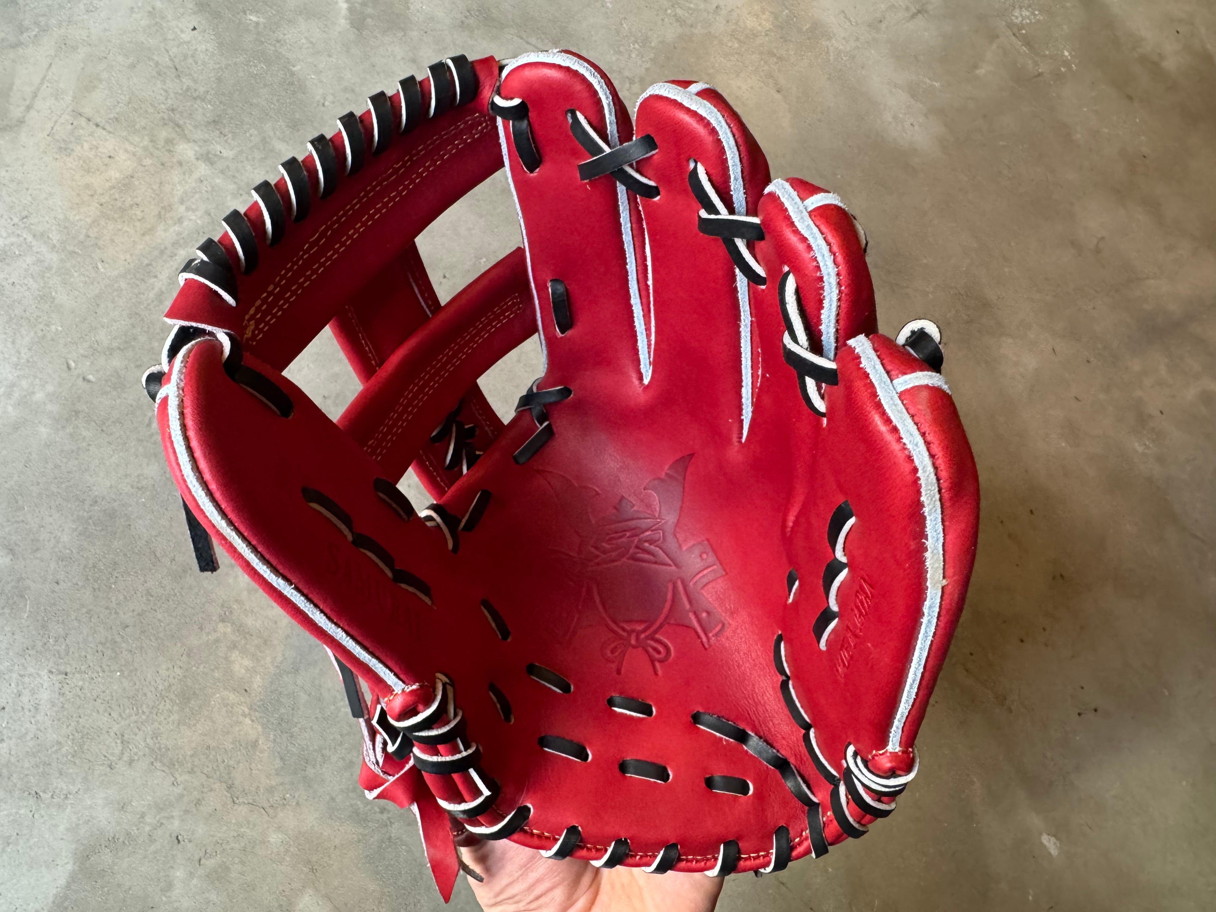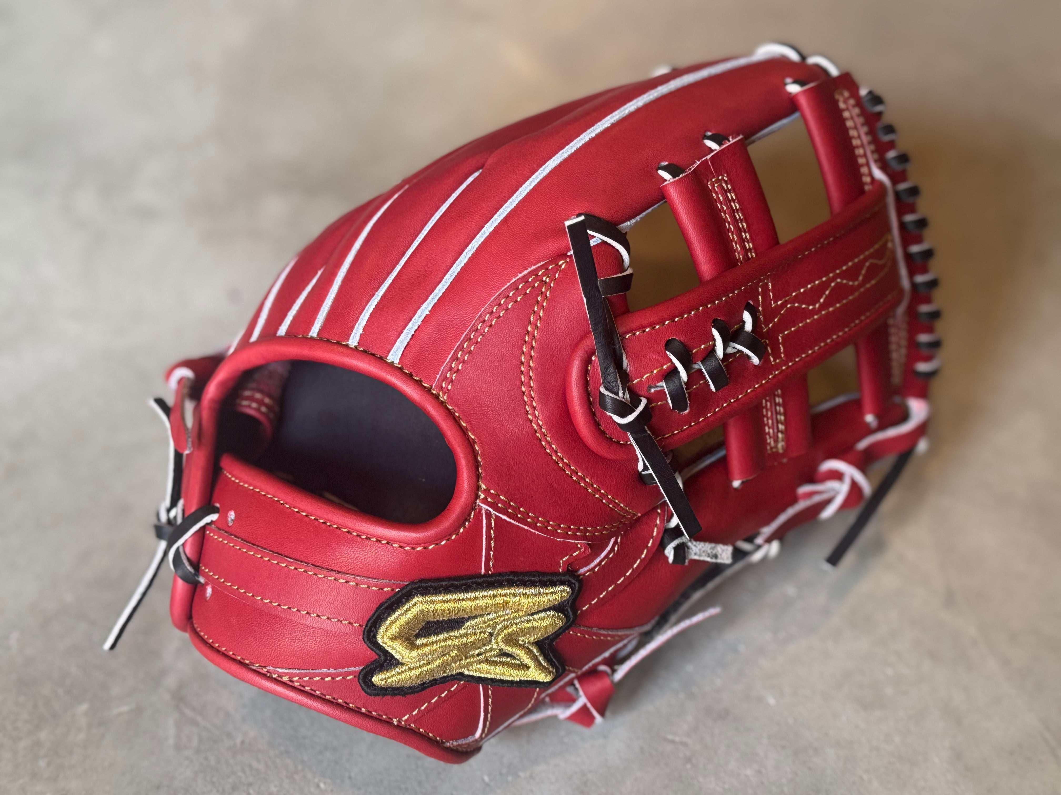 ボーイズ・ヤングリーグ加盟 ※約29.5cm。収まりが良く、ガッチリ掴める大きめの内野手用モデル。 特注の芯材を使用し親指部を硬めることにより、捕球能力の向上と耐久性の維持を図っている。 漢字の「水」をモチーフに作られた“火消し”をイメージして採用された「ウォーターバックスタイル」 その特徴的なバックスタイルにより、抜群のフィット感と革の伸びを軽減。 重厚感があり耐久性や型の持続性にも優れている“ST”Leatherを使用。捕球面にゴリラの刻印入り、ラベルのロゴも通常より厚みがあり豪華になっている。 ポジション:内野手 本体カラー:ボルドー×ブラウン ヒラウラカラー:ブラック ステッチカラー:ゴールド ラベル:ゴールド×プラチナゴールド×ブラック 専用グラブ袋:有 高校野球使用:可 【GS】グローブ(メーカーホームページより抜粋) 〜最高の相棒(グローブ)と最高の瞬間(プレー)を共に〜 私ゴリスポは野球YouTuberとして現在の2023年まで約8年間活動して来ました。その活動の中で、さまざまなメーカーのグローブの良し悪しを自分自身の目で見て来ました。 その中で “これいいな” “こんなのあったら面白いな” と思った事を詰め込んだのが GorillaSports のグローブです。最高の相棒=グローブをぜひ私たちと共に作り上げましょう。 GorillaSports 代表 春名 愛仁 GorilaSportsでは、基本的に全てのグローブに対して型付け加工を施しています。 あなたのもとに届いた瞬間から、どのようにグラブが育っていくかイメージできるようになっています。 グローブが成長していくと共に、あなたの守備は間違いなく成長していきます。 ※送料無料 ※型付け有の場合、加工期間に1週間程度かかる可能性がございます。予めご了承下さい。 追加で確認する事項がありましたらメールにてご連絡する事がございます。 ※柔らかさの目安(個人差はございます) 「硬め」・・・形を整える程度。お客様ご自身で柔らかくしていくイメージ。 「普通」・・・キャッチボールが出来る程度。多少の開閉ができるイメージ。 「柔らかめ」・・・ノックなど受けれる程度。しっかり開閉できるイメージ。 ※グラブ刺繍は、平裏土手部のみ可能。ご利用の際はグラブ刺繍ページをご確認下さい。 (メニューバー→カテゴリ→グラブ刺繍)