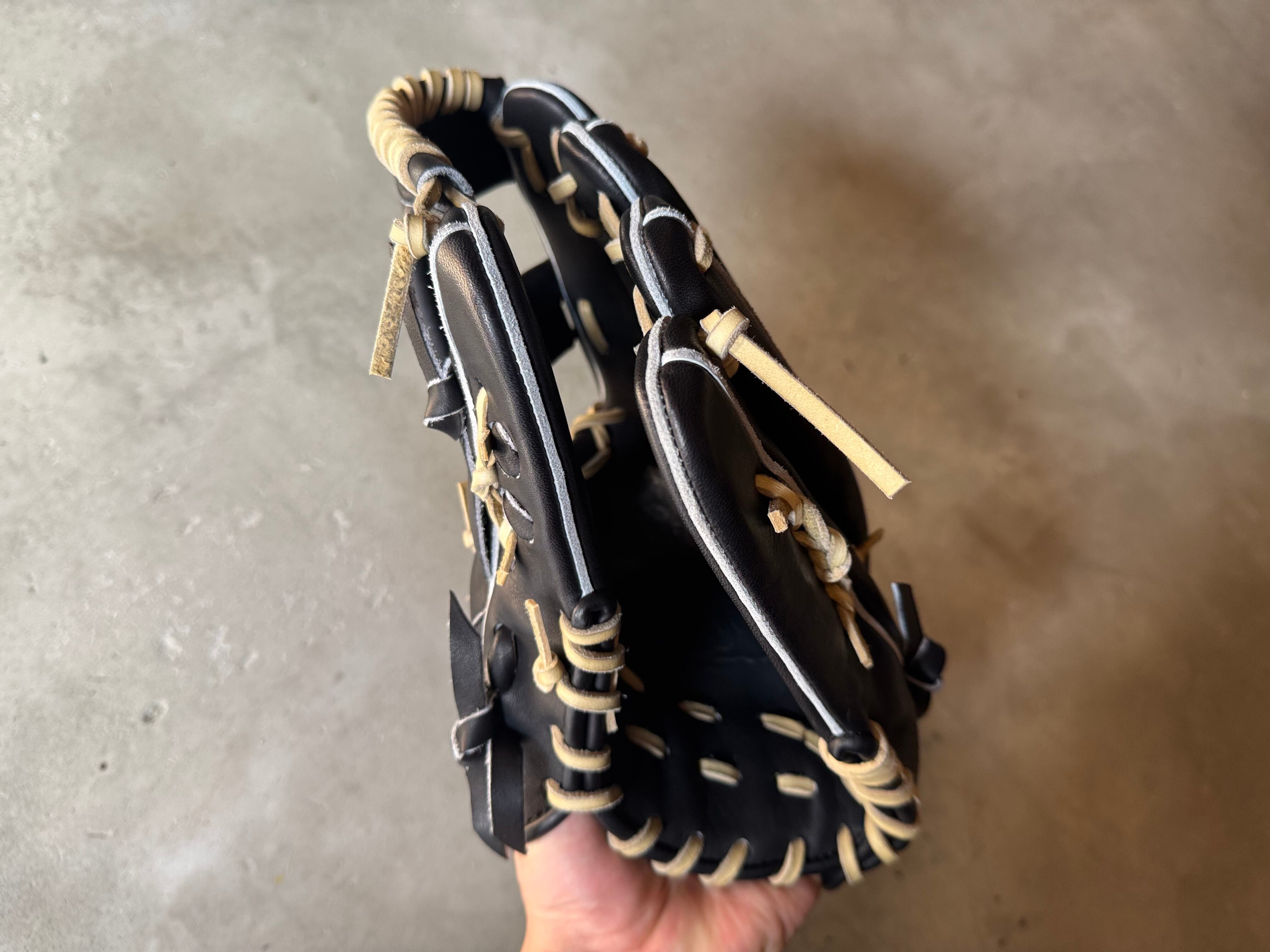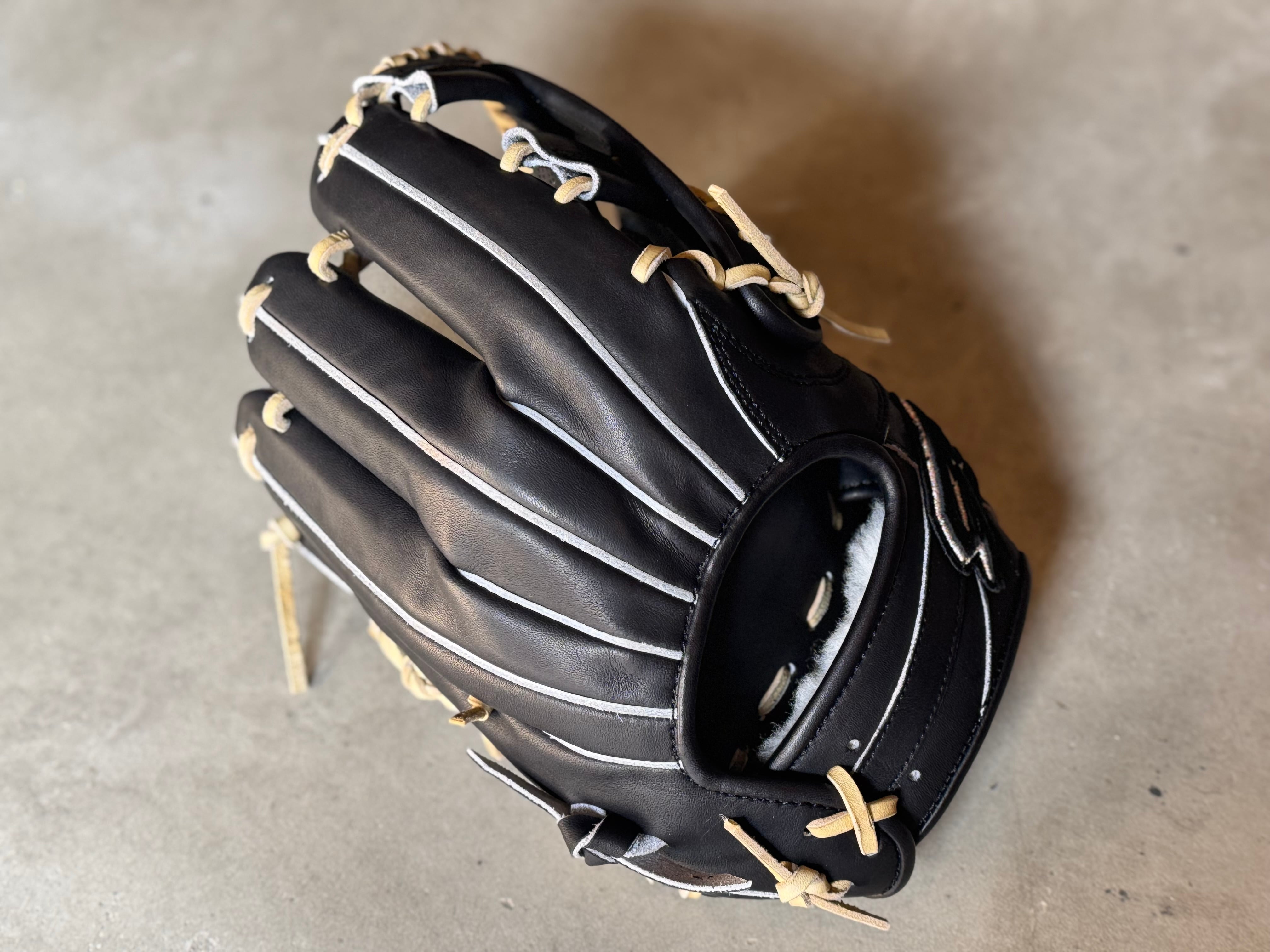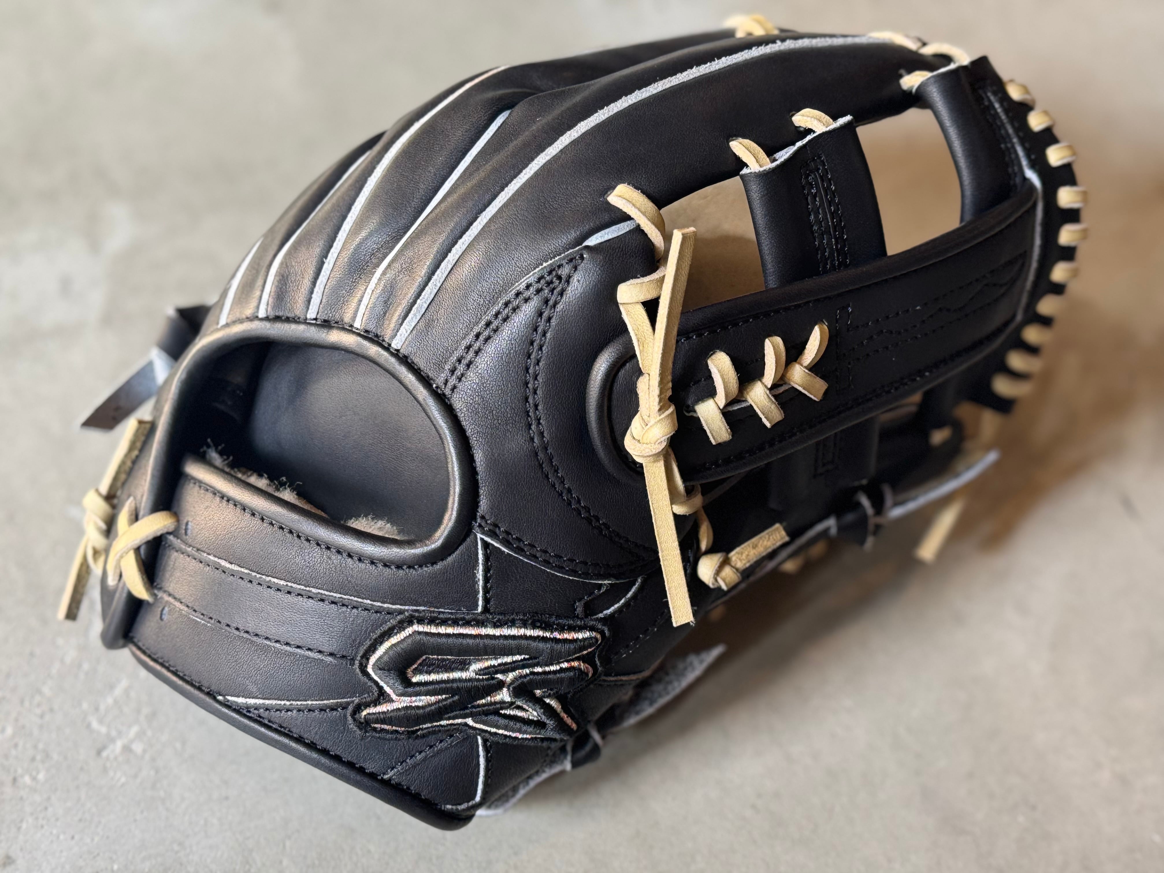 ボーイズ・ヤングリーグ加盟 ※約29.5cm。収まりが良く、ガッチリ掴める大きめの内野手用モデル。 特注の芯材を使用し親指部を硬めることにより、捕球能力の向上と耐久性の維持を図っている。 漢字の「水」をモチーフに作られた“火消し”をイメージして採用された「ウォーターバックスタイル」 その特徴的なバックスタイルにより、抜群のフィット感と革の伸びを軽減。 重厚感があり耐久性や型の持続性にも優れている“ST”Leatherを使用。捕球面にゴリラの刻印入り、ラベルのロゴも通常より厚みがあり豪華になっている。 ポジション:内野手 本体カラー:ゴリラブラック×キャラメル ヒラウラカラー:ゴリラブラック ステッチカラー:ブラック ラベル:5周年記念限定ラベル 専用グラブ袋:有 高校野球使用:可 【GS】グローブ(メーカーホームページより抜粋) 〜最高の相棒(グローブ)と最高の瞬間(プレー)を共に〜 私ゴリスポは野球YouTuberとして現在の2023年まで約8年間活動して来ました。その活動の中で、さまざまなメーカーのグローブの良し悪しを自分自身の目で見て来ました。 その中で “これいいな” “こんなのあったら面白いな” と思った事を詰め込んだのが GorillaSports のグローブです。最高の相棒=グローブをぜひ私たちと共に作り上げましょう。 GorillaSports 代表 春名 愛仁 GorilaSportsでは、基本的に全てのグローブに対して型付け加工を施しています。 あなたのもとに届いた瞬間から、どのようにグラブが育っていくかイメージできるようになっています。 グローブが成長していくと共に、あなたの守備は間違いなく成長していきます。 ※送料無料 ※型付け有の場合、加工期間に1週間程度かかる可能性がございます。予めご了承下さい。 追加で確認する事項がありましたらメールにてご連絡する事がございます。 ※柔らかさの目安(個人差はございます) 「硬め」・・・形を整える程度。お客様ご自身で柔らかくしていくイメージ。 「普通」・・・キャッチボールが出来る程度。多少の開閉ができるイメージ。 「柔らかめ」・・・ノックなど受けれる程度。しっかり開閉できるイメージ。 ※グラブ刺繍は、平裏土手部のみ可能。ご利用の際はグラブ刺繍ページをご確認下さい。 (メニューバー→カテゴリ→グラブ刺繍)