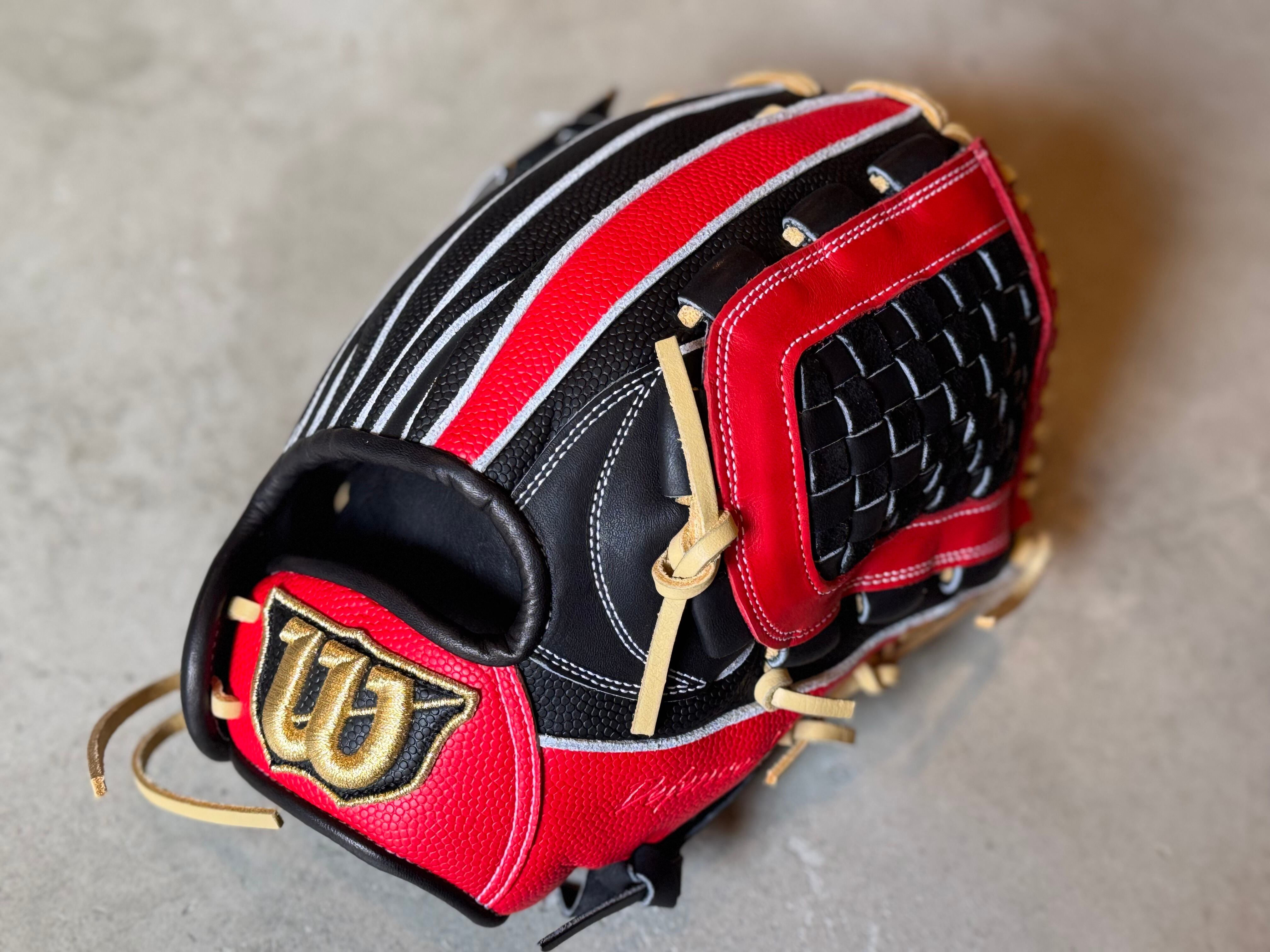 ※写真7〜8枚目は型付けイメージ。 小学4〜6年生にオススメ! 品番:WBW103898 型番:RDXDJM ポジション:内野手用(約28.0cm) 本体カラー:ブラックSS×スカーレットSS ステッチカラー:ホワイト 紐カラー:ブロンド ラベル :ブラックSS 専用グラブ袋:無 USAでも人気の小指二本入れ「最強のジュニアグラブ」 ⭐︎ジュニア用DUAL 『D-MAX』 守備力向上を目指すジュニア向けの小指2本入れ対応モデル 〜デュアル・テクノロジー〜 丸みを帯びた独特な形状により、ポケット以外の部分にボールが当たっても自然とポケットに収まり、捕球から正確なスローイングが可能。 深めでしっかりとキャッチできるモデルとなっております。 深めでしっかりとキャッチできるモデルとなっております。 縦にポケットを使う事で握り替えも早く素早い送球が出来ます。 ※送料無料 ※型付け有の場合、加工期間に1週間程度かかる可能性がございます。予めご了承下さい。 追加で確認する事項がありましたらメールにてご連絡する事がございます。 ※柔らかさの目安(個人差はございます) 「硬め」・・・形を整える程度。お客様ご自身で柔らかくしていくイメージ。 「普通」・・・キャッチボールが出来る程度。多少の開閉ができるイメージ。 「柔らかめ」・・・ノックなど受けれる程度。しっかり開閉できるイメージ。 ※グラブ刺繍は、平裏土手部のみ可能。ご利用の際はグラブ刺繍ページをご確認下さい。 (メニューバー→カテゴリ→グラブ刺繍)