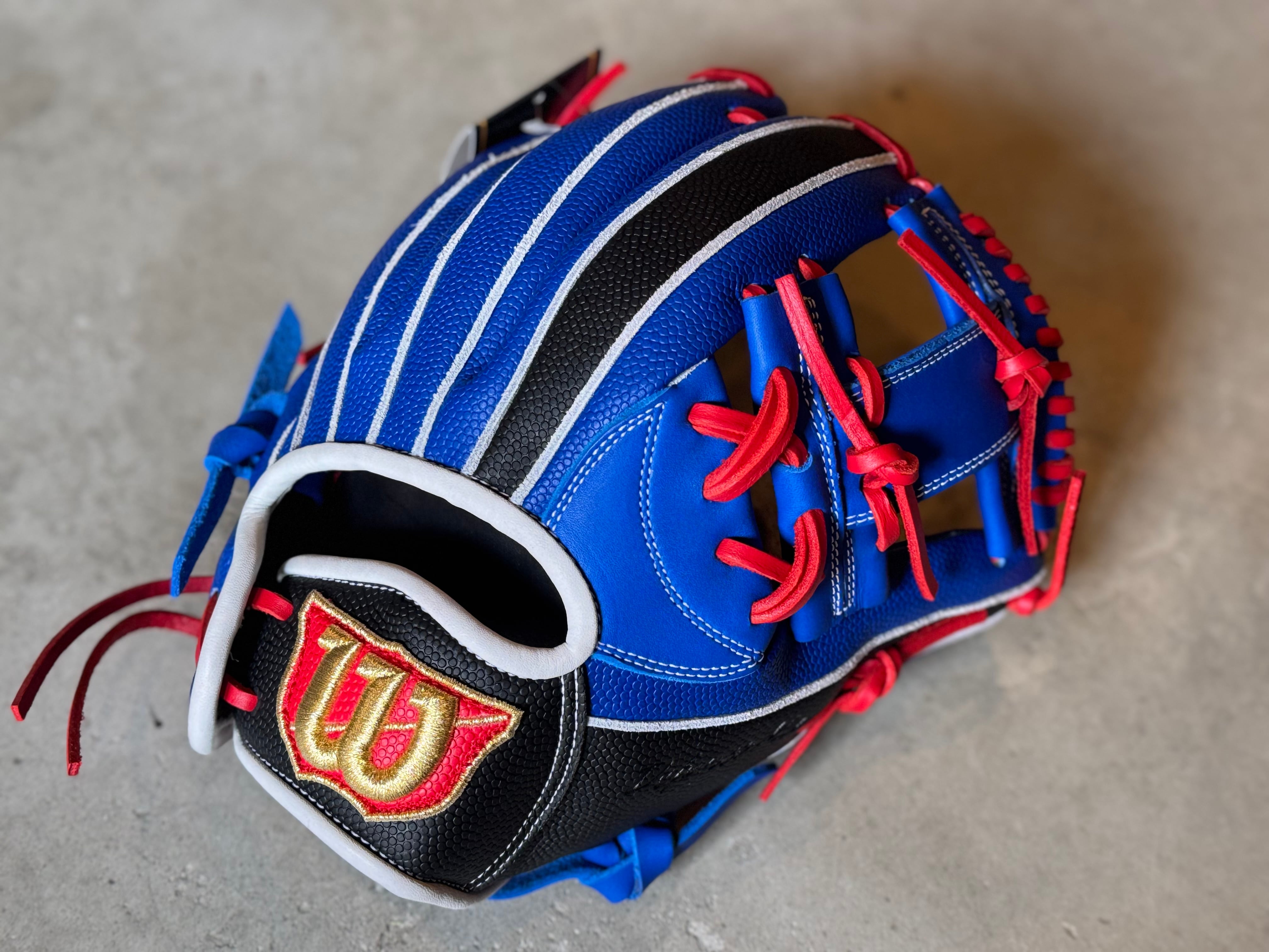 ※写真7〜8枚目は型付けイメージ。 小学4〜6年生にオススメ! 品番:WBW103894 型番:RDX7JH ポジション:内野手用(約28.0cm) 本体カラー:ロイヤルSS×ブラックSS ステッチカラー:ホワイト 紐カラー:レッド ラベル :スカーレットSS 専用グラブ袋:無 USAでも人気の小指二本入れ「最強のジュニアグラブ」 ⭐︎ジュニア用DUAL 『D-MAX』 守備力向上を目指すジュニア向けの小指2本入れ対応モデル 〜デュアル・テクノロジー〜 丸みを帯びた独特な形状により、ポケット以外の部分にボールが当たっても自然とポケットに収まり、捕球から正確なスローイングが可能。 深めでしっかりとキャッチできるモデルとなっております。 深めでしっかりとキャッチできるモデルとなっております。 縦にポケットを使う事で握り替えも早く素早い送球が出来ます。 ※送料無料 ※型付け有の場合、加工期間に1週間程度かかる可能性がございます。予めご了承下さい。 追加で確認する事項がありましたらメールにてご連絡する事がございます。 ※柔らかさの目安(個人差はございます) 「硬め」・・・形を整える程度。お客様ご自身で柔らかくしていくイメージ。 「普通」・・・キャッチボールが出来る程度。多少の開閉ができるイメージ。 「柔らかめ」・・・ノックなど受けれる程度。しっかり開閉できるイメージ。 ※グラブ刺繍は、平裏土手部のみ可能。ご利用の際はグラブ刺繍ページをご確認下さい。 (メニューバー→カテゴリ→グラブ刺繍)