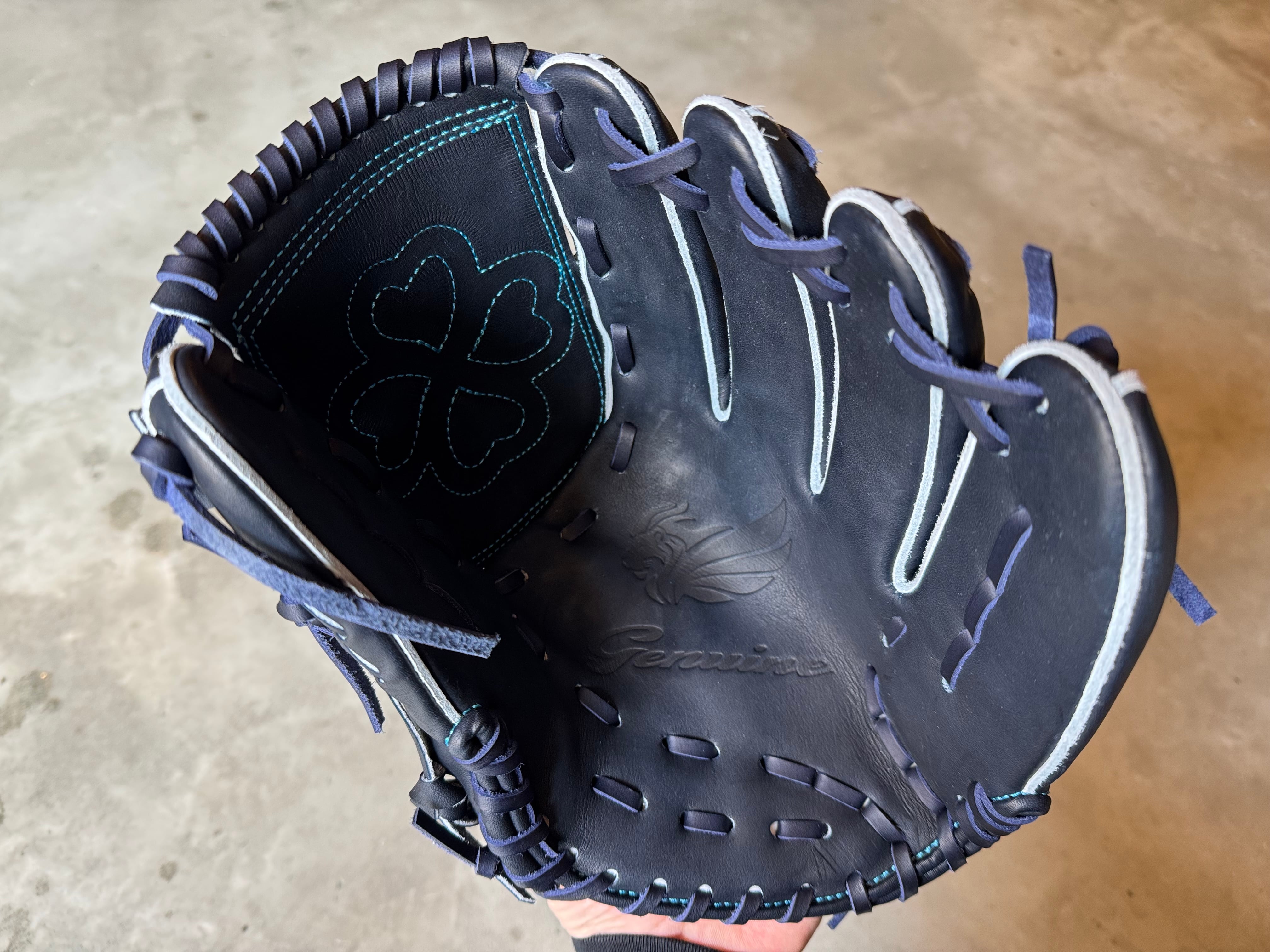 〜野球界の最高級ブランドへ〜 数多くの実業団選手の方々の意見を取り入れ、作り上げた野球ブランド 型番:MIU-T1 大きめで指先が長く、縦にも横にも使えるモデル。芯材硬く革のハリもあるしっかり握り込める。特徴的なウェブ「クローバー」搭載。力投型投手にピッタリ!! 王冠スタイル採用で握り込みやすさ抜群! ※サイズ約30.0cm ポジション:投手 本体カラー:インペリアルブラック 紐カラー:キャメル ステッチカラー:サックス ラベル:ゴールド×ブラック 専用グラブ袋有り ボーイズ・ヤングリーグ使用可 高校野球使用:可 [Genuine]ジェニュイン 数多くの実業団選手からの意見を取り入れて、一から金型を作りあげ、2年もの歳月を経て追求し完成。 2023年10月1日からスタートした野球メーカー。 プロ選手が使用している品質をアマチュアの選手にも届けたい想いでスタート‼︎ 革のハリ・ツヤ感が良く、尚且つ軽い。ストレス無く打球に反応しやすい印象。 親指と小指の芯材を硬くし、しっかり感も残しつつ開閉しやすいグローブとなっている。 ※送料無料 ※型付け有の場合、加工期間に1週間程度かかる可能性がございます。予めご了承下さい。 追加で確認する事項がありましたらメールにてご連絡する事がございます。 ※柔らかさの目安(個人差はございます) 「硬め」・・・形を整える程度。お客様ご自身で柔らかくしていくイメージ。 「普通」・・・キャッチボールが出来る程度。多少の開閉ができるイメージ。 「柔らかめ」・・・ノックなど受けれる程度。しっかり開閉できるイメージ。 ※グラブ刺繍は、平裏土手部のみ可能。ご利用の際はグラブ刺繍ページをご確認下さい。 (メニューバー→カテゴリ→グラブ刺繍)