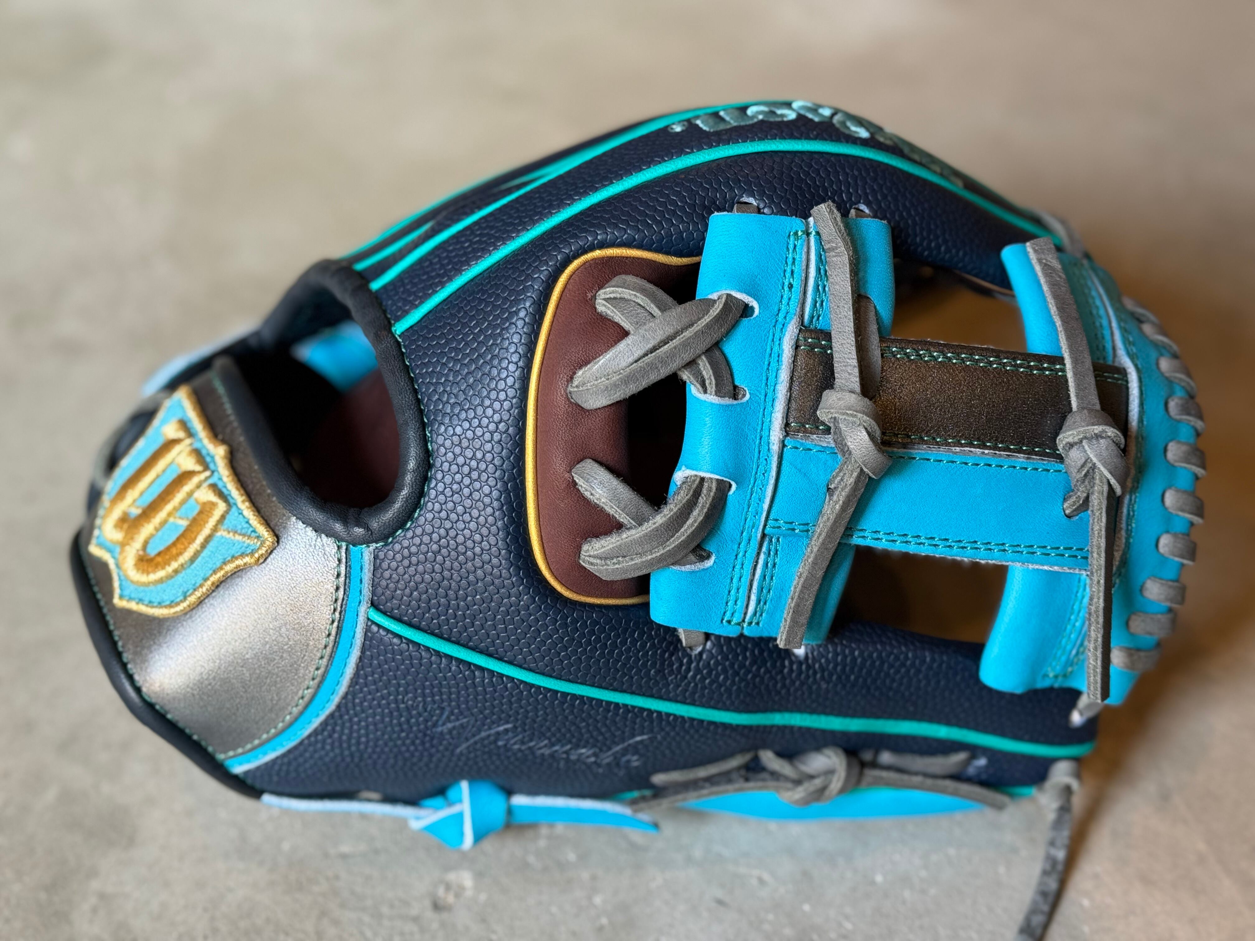 ※写真6〜7枚目は型付けイメージ。 軟式DUALハイグレードモデル 品番:WBW104378 型番:86型コユニ推奨 (11.5インチ) MLBで人気の内野手用、ポケットをタテに使うグラブ。 〜デュアル・テクノロジー〜 丸みを帯びた独特な形状により、ポケット以外の部分にボールが当たっても自然とポケットに収まり、捕球から正確なスローイングが可能。 深めでしっかりとキャッチできるモデルとなっております。 ポジション:内野手 本体カラー:Dブラウン×ネイビーSS 表革:ベーシックレザーRO+スーパースキン 裏革:共革 ステッチカラー:シーフォーム 紐カラー:グレー ラベル :限定サックス 専用グラブ袋:無 高校野球使用:不可 深めでしっかりとキャッチできるモデルとなっております。 縦にポケットを使う事で握り替えも早く素早い送球が出来ます。 『守備率10割に近づくグラブ』 ◎適材適所設計 〜ポジションによりプレー内容はことなる。よってグラブの役割も異なる〜 「適材(最もふさわしい革と芯材)」を「適所」に採用し、細部に拘って日本の職人が手仕事により作り上げた、技術力向上最重視グラブ。 ○内野手用〜正確に打球をさばくためのグラブ〜 ・手のように自由に動く柔軟性と、軽快な守備を可能にする軽さ、高い耐久性の最強コンビネーション。 ※送料無料 ※型付け有の場合、加工期間に1週間程度かかる可能性がございます。予めご了承下さい。 追加で確認する事項がありましたらメールにてご連絡する事がございます。 ※柔らかさの目安(個人差はございます) 「硬め」・・・形を整える程度。お客様ご自身で柔らかくしていくイメージ。 「普通」・・・キャッチボールが出来る程度。多少の開閉ができるイメージ。 「柔らかめ」・・・ノックなど受けれる程度。しっかり開閉できるイメージ。