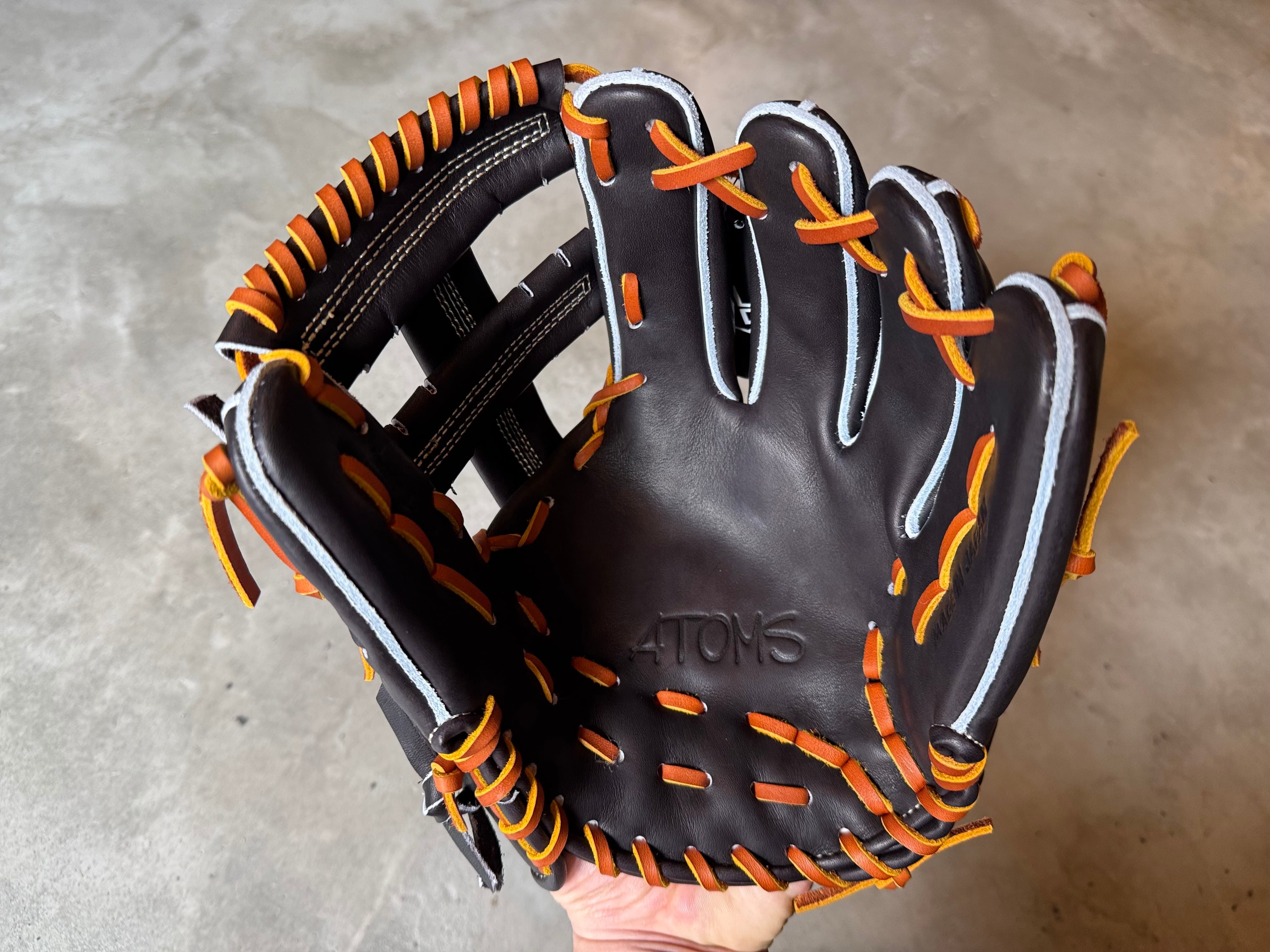 ※写真7〜8枚目は型付けイメージです。 型番:APL-NE021「021型」 縦約28.7cm。型付けにより深くも浅くもなる万能型モデル。捕球面が広すぎず狭すぎず、多彩なプレースタイルや打球に対応しやすい。 安心感あるサイズ感も魅力! 新型[ERM-Wrist]採用で操作性もバツグン&革の伸び防止 アトムズ人気主力型番のひとつ。 ポジション:内野手 本体カラー:Dブラウン×タン ステッチカラー:Cブラウン ラベル:ゴールド(シリコン)×ブラック 専用グラブ袋:有 ボーイズ・ヤングリーグ使用可 高校野球使用:可 グラブ工場の聖地奈良県でグラブを作り続ける。 プロ選手はもちろん、SNS界隈も賑わせている新進気鋭のグラブメーカー[ATOMS] 新型[ERM-Wrist]イーアールエムリスト ※革を強化する設計にし、バンド部の革伸び・緩みを防止。長く良いフィット感&しっかり感がプラス。 E…Easy R…Range M…Motion グラブとは守備職人のための「道具」。グラブ職人としてどんなお役に立てるのか。「道具」を創っている我々がそれを進化させるためには。シンプルな問題かつ難問。 「守備職人」とは・・・掘り下げていった結果、「手首の可動域を広く・動きがよくなる」そんな工夫があればよいのではないかという答えに辿り着きました。 ※送料無料 ※型付け有の場合、加工期間に1週間程度かかる可能性がございます。予めご了承下さい。 追加で確認する事項がありましたらメールにてご連絡する事がございます。 ※柔らかさの目安(個人差はございます) 「硬め」・・・形を整える程度。お客様ご自身で柔らかくしていくイメージ。 「普通」・・・キャッチボールが出来る程度。多少の開閉ができるイメージ。 「柔らかめ」・・・ノックなど受けれる程度。しっかり開閉できるイメージ。 ※グラブ刺繍は、平裏土手部のみ可能。ご利用の際はグラブ刺繍ページをご確認下さい。 (メニューバー→カテゴリ→グラブ刺繍)