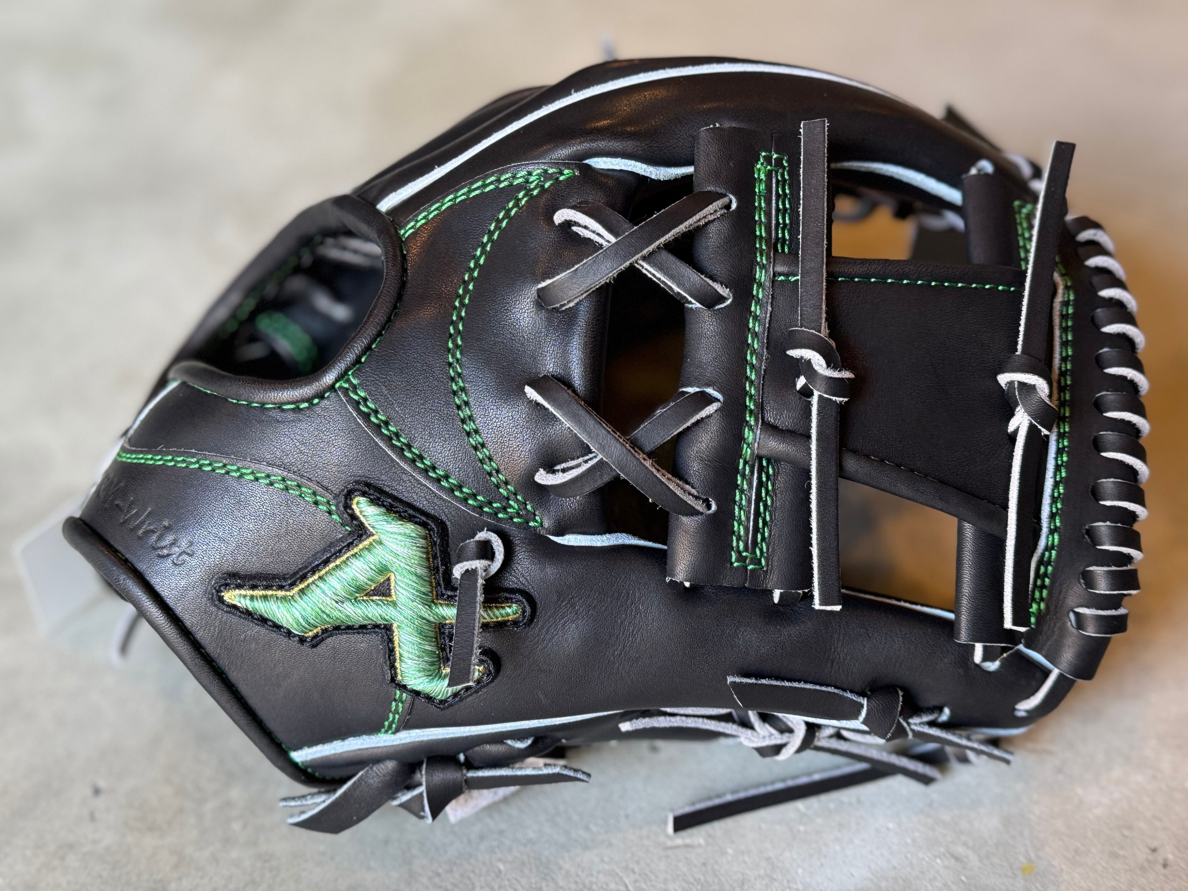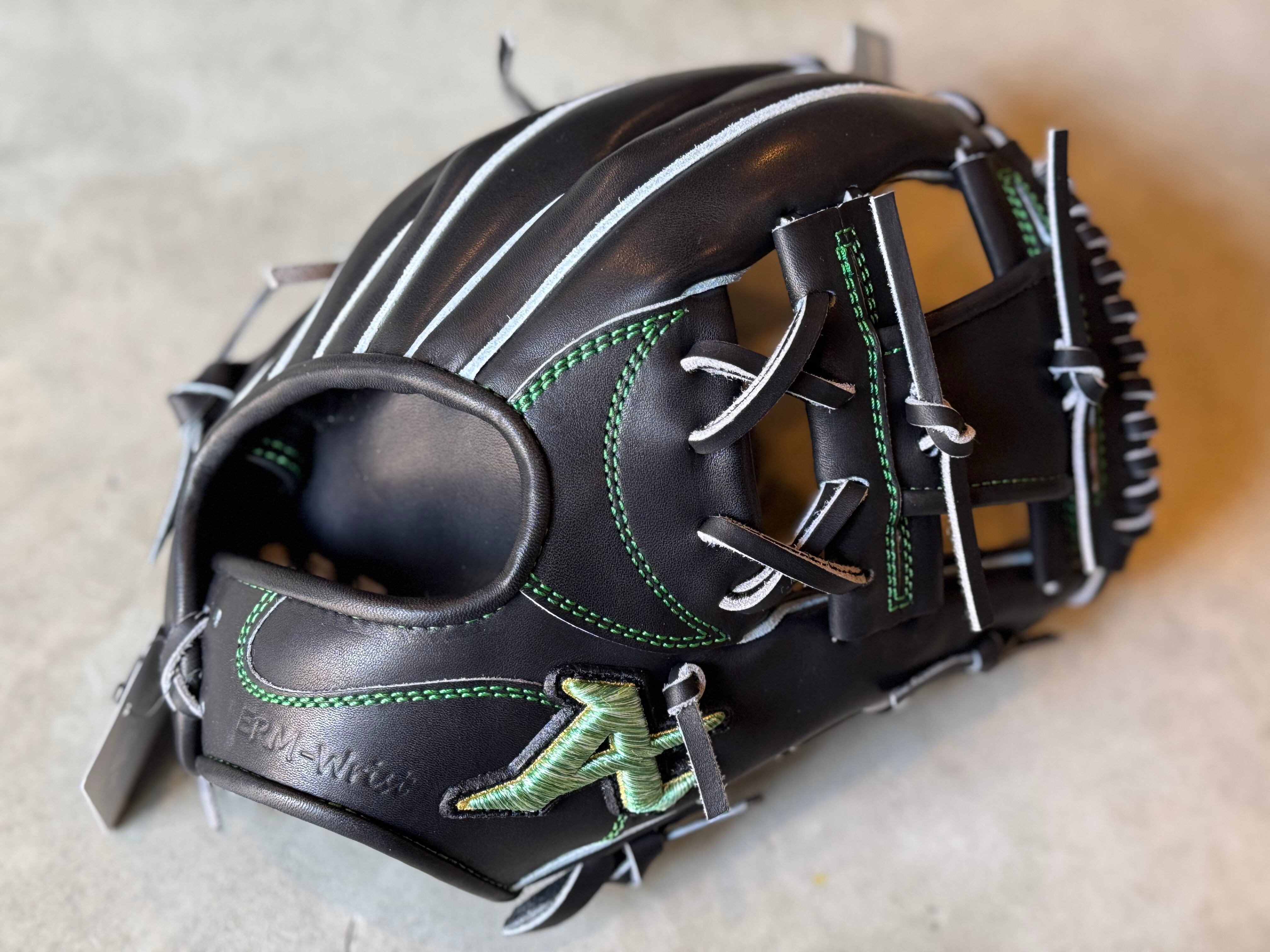 ※写真6〜7枚目は型付けイメージです。 型番:AKG-NE026B「026型」 縦約28.3cm。ウェブ下で捕るプレイヤー向け。 少し小ぶりの土手狭めの掴みやすいモデル。小指2本入れもしやすい。 新型[ERM-Wrist]採用で操作性もバツグン&革の伸び防止 アトムズ人気主力型番のひとつ。 ポジション:内野手 本体カラー:ブラック ステッチカラー:グリーン ラベル:限定ラベル 専用グラブ袋有り 中学・高校野球使用:可 グラブ工場の聖地奈良県でグラブを作り続ける。 プロ選手はもちろん、SNS界隈も賑わせている新進気鋭のグラブメーカー[ATOMS] 新型[ERM-Wrist]イーアールエムリスト ※革を強化する設計にし、バンド部の革伸び・緩みを防止。長く良いフィット感&しっかり感がプラス。 E…Easy R…Range M…Motion グラブとは守備職人のための「道具」。グラブ職人としてどんなお役に立てるのか。「道具」を創っている我々がそれを進化させるためには。シンプルな問題かつ難問。 「守備職人」とは・・・掘り下げていった結果、「手首の可動域を広く・動きがよくなる」そんな工夫があればよいのではないかという答えに辿り着きました。 ※送料無料 ※型付け有の場合、加工期間に1週間程度かかる可能性がございます。予めご了承下さい。 追加で確認する事項がありましたらメールにてご連絡する事がございます。 ※柔らかさの目安(個人差はございます) 「硬め」・・・形を整える程度。お客様ご自身で柔らかくしていくイメージ。 「普通」・・・キャッチボールが出来る程度。多少の開閉ができるイメージ。 「柔らかめ」・・・ノックなど受けれる程度。しっかり開閉できるイメージ。 ※グラブ刺繍は、平裏土手部のみ可能。ご利用の際はグラブ刺繍ページをご確認下さい。 (メニューバー→カテゴリ→グラブ刺繍)