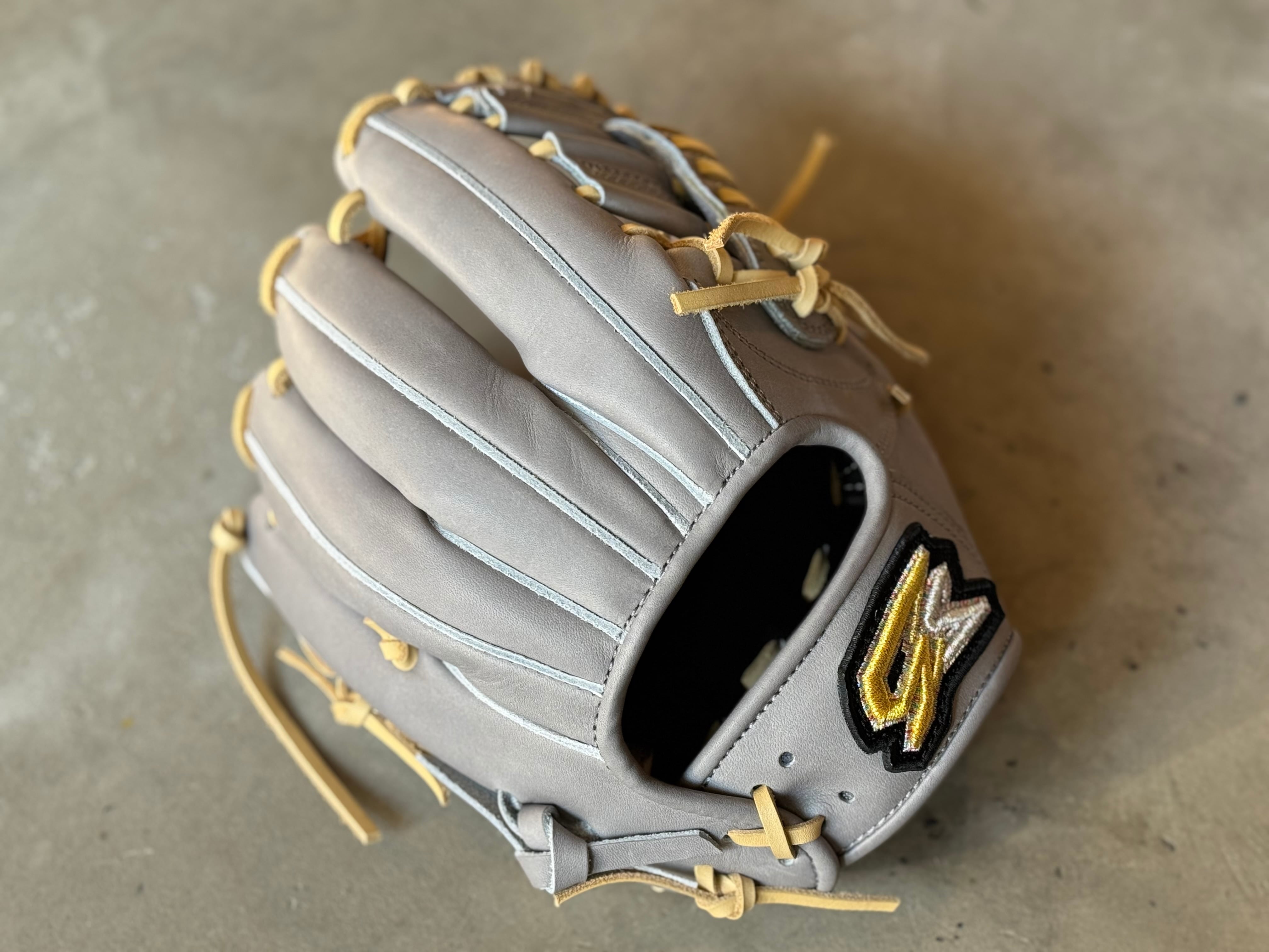 全国30個限定モデル ※写真6〜7枚目は型付けイメージです。 型番:oni-56 鬼サード型(サード・ショート用) 元祖人気の内野手用モデル。土手が狭く、グラブを縦に使う選手にオススメ。 ※約28.7cm ポジション:内野手 本体カラー:グレー 紐カラー:キャメル ヒラウラカラー:ゴリラブラック ステッチカラー:グレー ラベル:限定ラベル 専用グラブ袋あり 【GS】グローブ(メーカーホームページより抜粋) 〜最高の相棒(グローブ)と最高の瞬間(プレー)を共に〜 私ゴリスポは野球YouTuberとして現在の2023年まで約8年間活動して来ました。その活動の中で、さまざまなメーカーのグローブの良し悪しを自分自身の目で見て来ました。 その中で “これいいな” “こんなのあったら面白いな” と思った事を詰め込んだのが GorillaSports のグローブです。最高の相棒=グローブをぜひ私たちと共に作り上げましょう。 GorillaSports 代表 春名 愛仁 GorilaSportsでは、基本的に全てのグローブに対して型付け加工を施しています。 あなたのもとに届いた瞬間から、どのようにグラブが育っていくかイメージできるようになっています。 グローブが成長していくと共に、あなたの守備は間違いなく成長していきます。 使用レザー”GSモイストレザー“ GSグローブには厳選を重ねに重ねた 油分が多いレザーさらに数多の捕球を耐え抜くために、強靭なレザーを使用しております。 ※送料無料 ※型付け有の場合、加工期間に1週間程度かかる可能性がございます。予めご了承下さい。 追加で確認する事項がありましたらメールにてご連絡する事がございます。 ※柔らかさの目安(個人差はございます) 「硬め」・・・形を整える程度。お客様ご自身で柔らかくしていくイメージ。 「普通」・・・キャッチボールが出来る程度。多少の開閉ができるイメージ。 「柔らかめ」・・・ノックなど受けれる程度。しっかり開閉できるイメージ。