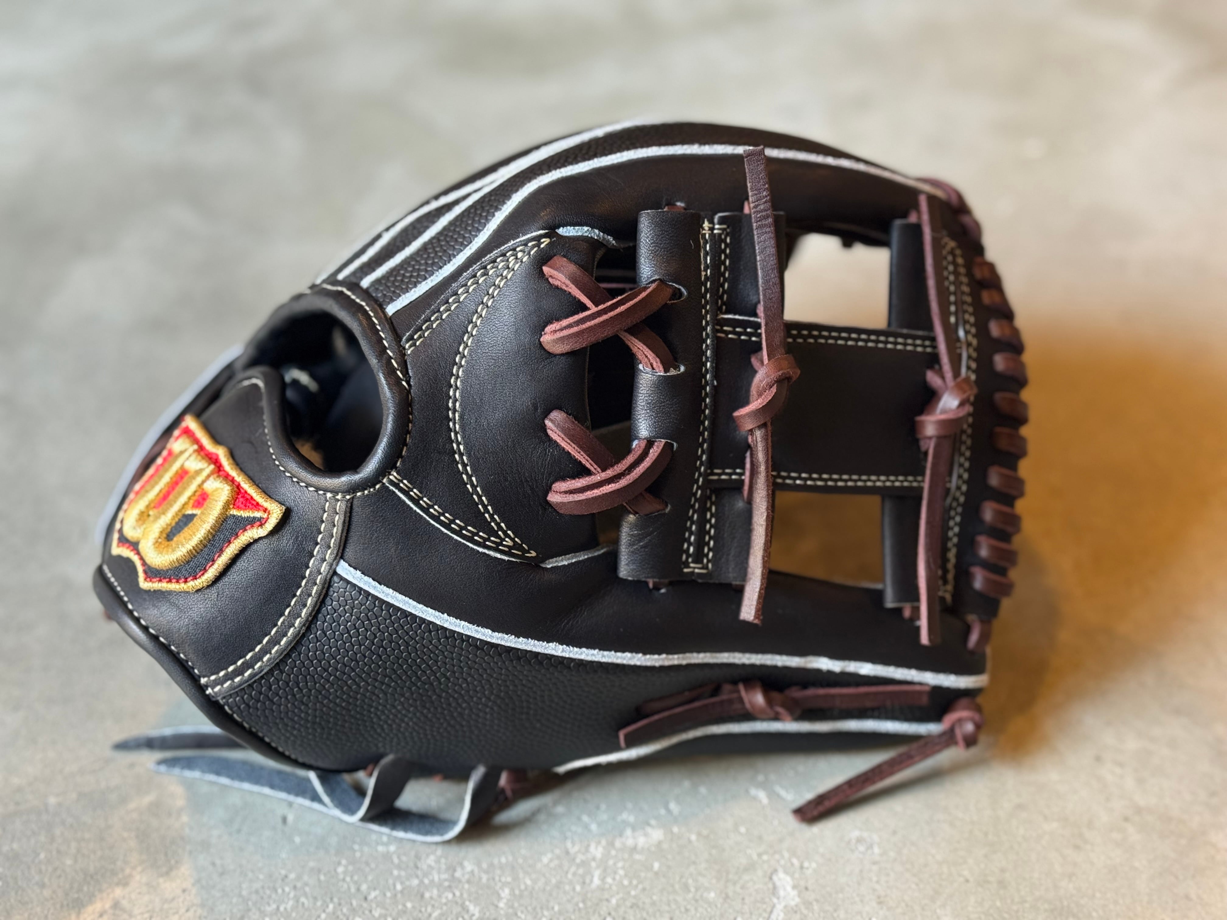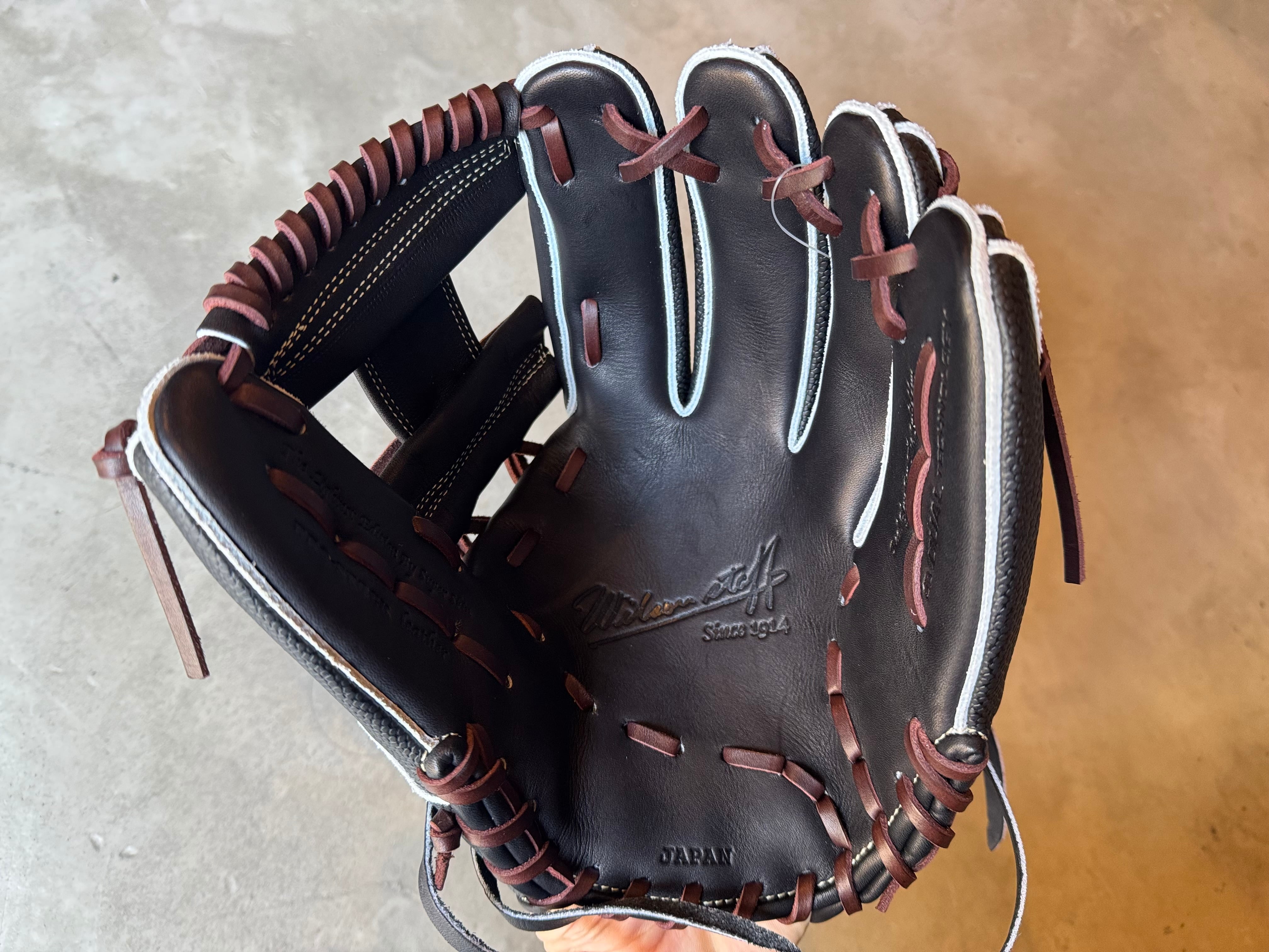 ※写真6〜7枚目は型付けイメージです。 型番:1723型コユニ推奨 (11.75インチ) US NEWモデル。ポケットをタテに使うグラブ。 87型より親指が6mm程短く、小指も少し短くし、はめると87型より小さく感じるモデル。 [注目の新機能] ⚪︎アーチフィッター…手首の動きを妨げることなく、手の甲をしっかりと押さえつけることで、手との一体感を向上。 ⚪︎フラットバインディング…人差し指を出す部分のヘリ革を特殊縫製することで人差し指の痛さを軽減。 〜デュアル・テクノロジー〜 丸みを帯びた独特な形状により、ポケット以外の部分にボールが当たっても自然とポケットに収まり、捕球から正確なスローイングが可能。 深めでしっかりとキャッチできるモデルとなっております。 ポジション:内野手 本体カラー:ブラックSS ステッチカラー:ゴールド 紐カラー:ブラウン ラベル :レッド×ブラック 専用グラブ袋:有 高校野球使用:可 深めでしっかりとキャッチできるモデルとなっております。 縦にポケットを使う事で握り替えも早く素早い送球が出来ます。 『守備率10割に近づくグラブ』 ◎適材適所設計 〜ポジションによりプレー内容はことなる。よってグラブの役割も異なる〜 「適材(最もふさわしい革と芯材)」を「適所」に採用し、細部に拘って日本の職人が手仕事により作り上げた、技術力向上最重視グラブ。 ○内野手用〜正確に打球をさばくためのグラブ〜 ・手のように自由に動く柔軟性と、軽快な守備を可能にする軽さ、高い耐久性の最強コンビネーション。 ※送料無料 ※型付け有の場合、加工期間に1週間程度かかる可能性がございます。予めご了承下さい。 追加で確認する事項がありましたらメールにてご連絡する事がございます。 ※柔らかさの目安(個人差はございます) 「硬め」・・・形を整える程度。お客様ご自身で柔らかくしていくイメージ。 「普通」・・・キャッチボールが出来る程度。多少の開閉ができるイメージ。 「柔らかめ」・・・ノックなど受けれる程度。しっかり開閉できるイメージ。 ※グラブ刺繍は、平裏土手部のみ可能。ご利用の際はグラブ刺繍ページをご確認下さい。 (メニューバー→カテゴリ→グラブ刺繍)