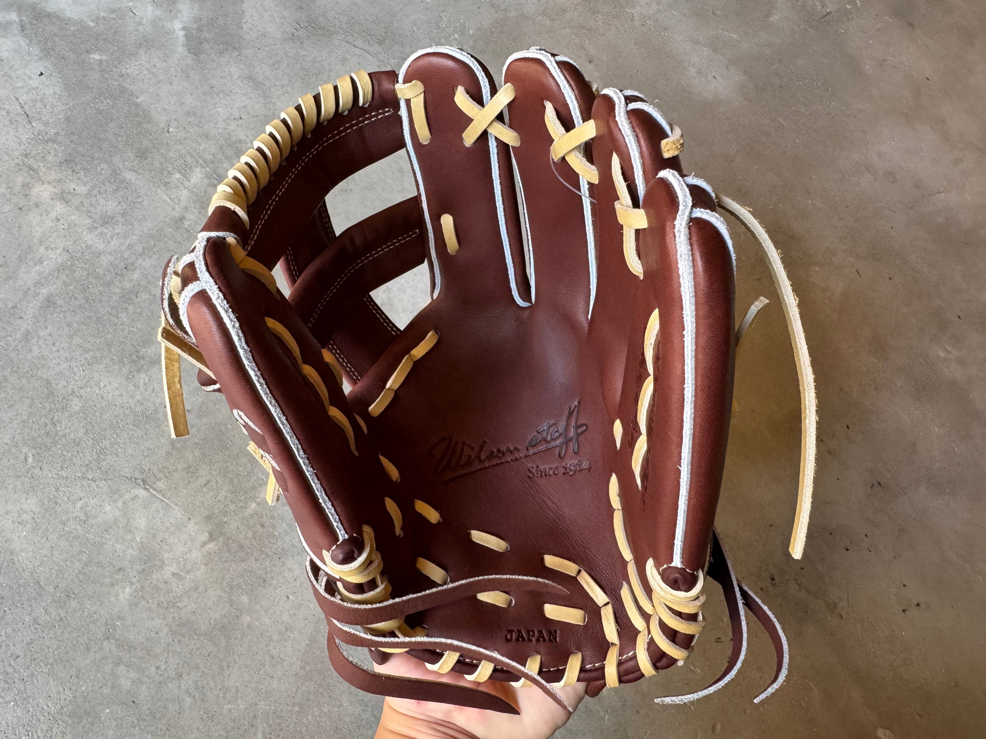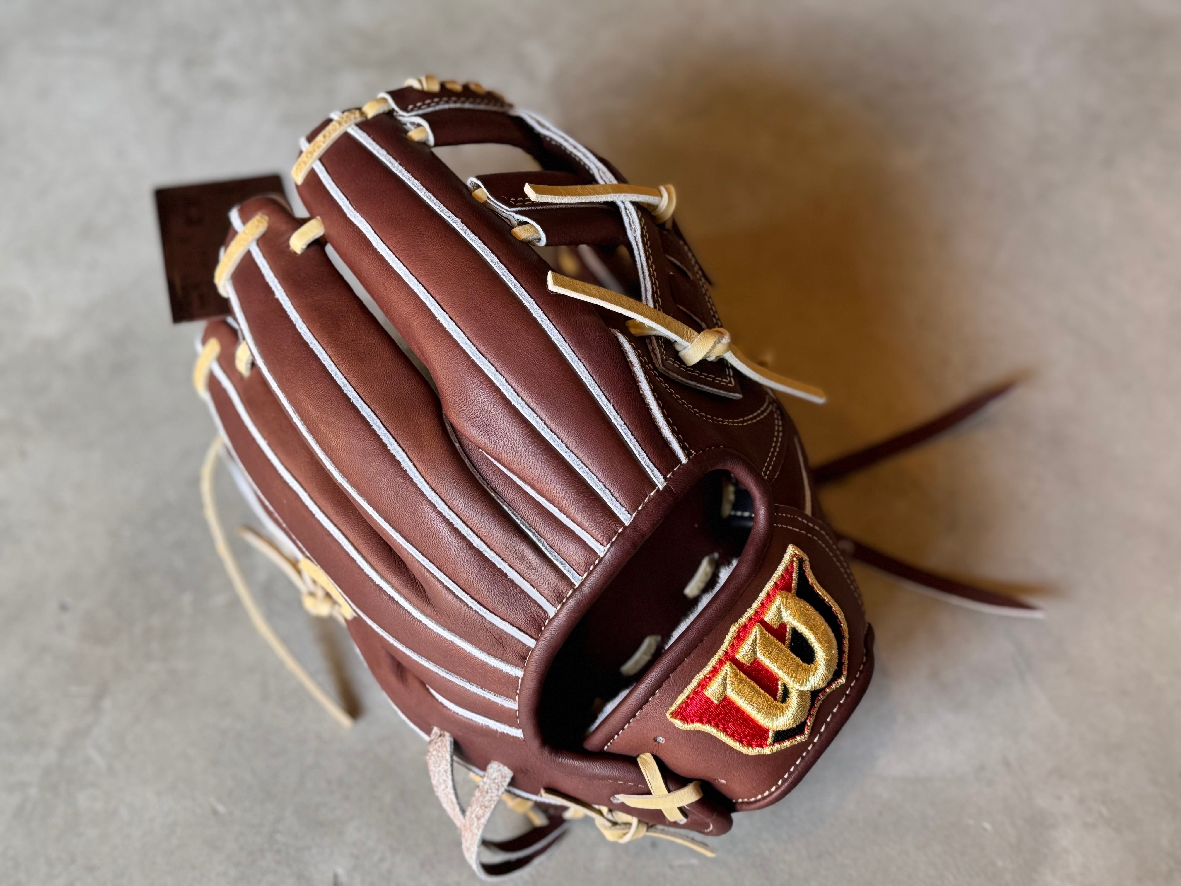 ※写真6〜7枚目は型付けイメージです。 実は日本人選手に向けて作ったD5型と並ぶ日本の野球にも適応したコユニグラブ 型番:D5型コユニ対応 (11.5インチ) MLBに逆輸入されたモデル。日本人仕様に設計されたしっかりつかむグラブ。コユニやWilsonグラブデビューにオススメ。 〜デュアル・テクノロジー〜 丸みを帯びた独特な形状により、ポケット以外の部分にボールが当たっても自然とポケットに収まり、捕球から正確なスローイングが可能。 深めでしっかりとキャッチできるモデルとなっております。 ポジション:内野手 本体カラー:Dブラウン ステッチカラー:ゴールド 紐カラー:ブロンド ラベル :レッド×ブラック 専用グラブ袋有り 中学野球使用:可 高校野球使用:可 深めでしっかりとキャッチできるモデルとなっております。 縦にポケットを使う事で握り替えも早く素早い送球が出来ます。 『守備率10割に近づくグラブ』 ◎適材適所設計 〜ポジションによりプレー内容はことなる。よってグラブの役割も異なる〜 「適材(最もふさわしい革と芯材)」を「適所」に採用し、細部に拘って日本の職人が手仕事により作り上げた、技術力向上最重視グラブ。 ○内野手用〜正確に打球をさばくためのグラブ〜 ・手のように自由に動く柔軟性と、軽快な守備を可能にする軽さ、高い耐久性の最強コンビネーション。 ※送料無料 ※型付け有の場合、加工期間に1週間程度かかる可能性がございます。予めご了承下さい。 追加で確認する事項がありましたらメールにてご連絡する事がございます。 ※柔らかさの目安(個人差はございます) 「硬め」・・・形を整える程度。お客様ご自身で柔らかくしていくイメージ。 「普通」・・・キャッチボールが出来る程度。多少の開閉ができるイメージ。 「柔らかめ」・・・ノックなど受けれる程度。しっかり開閉できるイメージ。 ※グラブ刺繍は、平裏土手部のみ可能。ご利用の際はグラブ刺繍ページをご確認下さい。 (メニューバー→カテゴリ→グラブ刺繍)