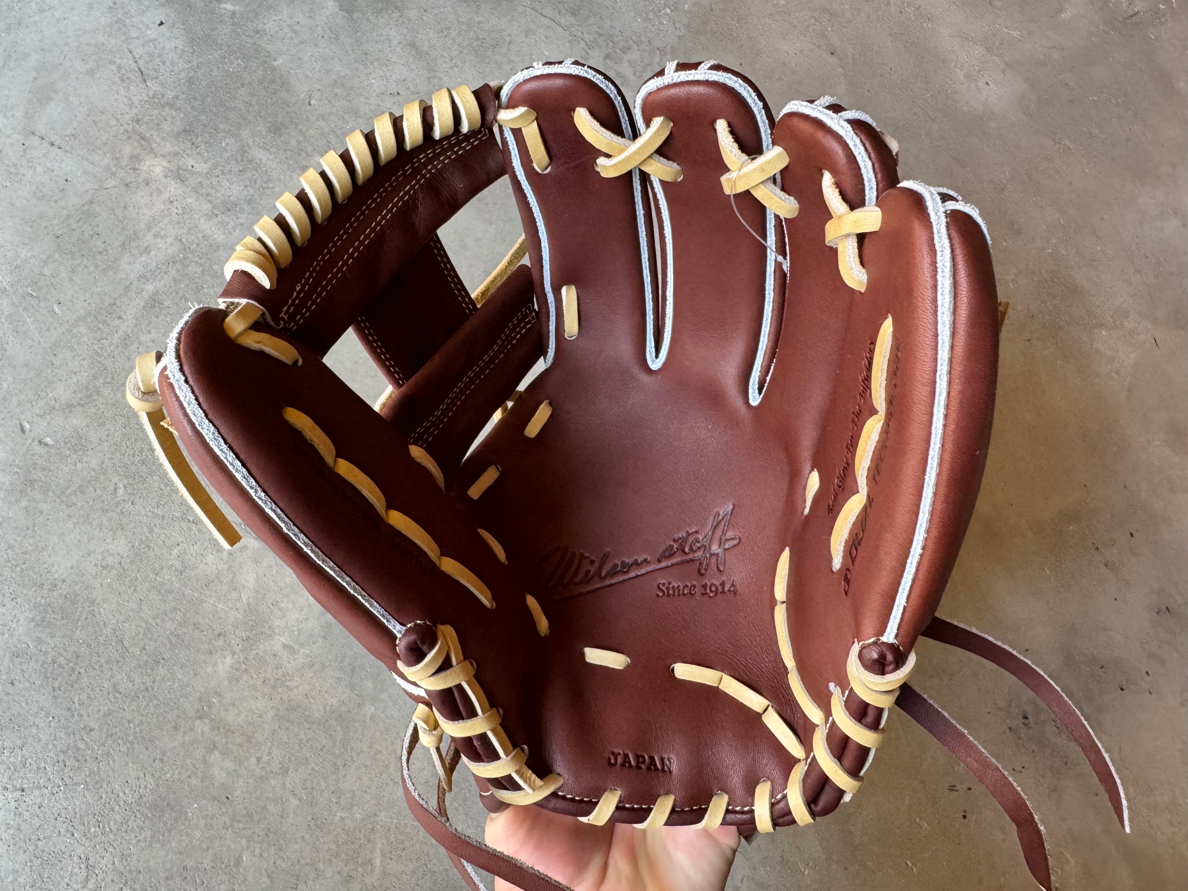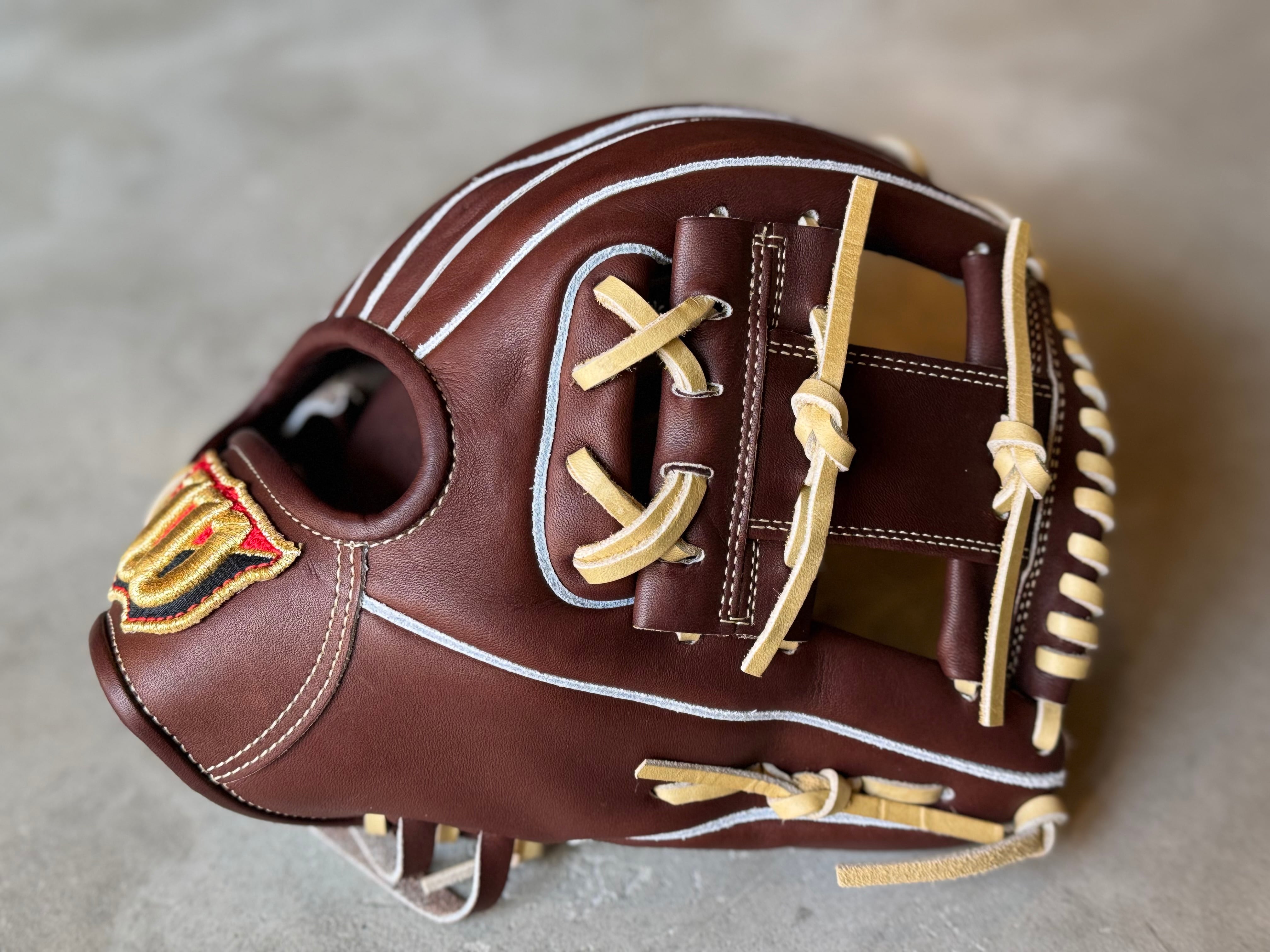※写真7〜8枚目は型付けイメージです。 型番:86PF型コユニ推奨 (11.5インチ) MLBで人気の内野手用、ポケットをタテに使うグラブ。手の小さな方でもフィットする機能を搭載。 全体的に指の位置を下げて、手の小さな方でもコユニで使いやすくしている。 〜デュアル・テクノロジー〜 丸みを帯びた独特な形状により、ポケット以外の部分にボールが当たっても自然とポケットに収まり、捕球から正確なスローイングが可能。 深めでしっかりとキャッチできるモデルとなっております。 ポジション:内野手 本体カラー:Dブラウン ステッチカラー:ゴールド 紐カラー:ブロンド ラベル :レッド×ブラック 専用グラブ袋有り 高校野球使用:可 深めでしっかりとキャッチできるモデルとなっております。 縦にポケットを使う事で握り替えも早く素早い送球が出来ます。 『守備率10割に近づくグラブ』 ◎適材適所設計 〜ポジションによりプレー内容はことなる。よってグラブの役割も異なる〜 「適材(最もふさわしい革と芯材)」を「適所」に採用し、細部に拘って日本の職人が手仕事により作り上げた、技術力向上最重視グラブ。 ○内野手用〜正確に打球をさばくためのグラブ〜 ・手のように自由に動く柔軟性と、軽快な守備を可能にする軽さ、高い耐久性の最強コンビネーション。 ※送料無料 ※型付け有の場合、加工期間に1週間程度かかる可能性がございます。予めご了承下さい。 追加で確認する事項がありましたらメールにてご連絡する事がございます。 ※柔らかさの目安(個人差はございます) 「硬め」・・・形を整える程度。お客様ご自身で柔らかくしていくイメージ。 「普通」・・・キャッチボールが出来る程度。多少の開閉ができるイメージ。 「柔らかめ」・・・ノックなど受けれる程度。しっかり開閉できるイメージ。 ※グラブ刺繍は、平裏土手部のみ可能。ご利用の際はグラブ刺繍ページをご確認下さい。 (メニューバー→カテゴリ→グラブ刺繍)