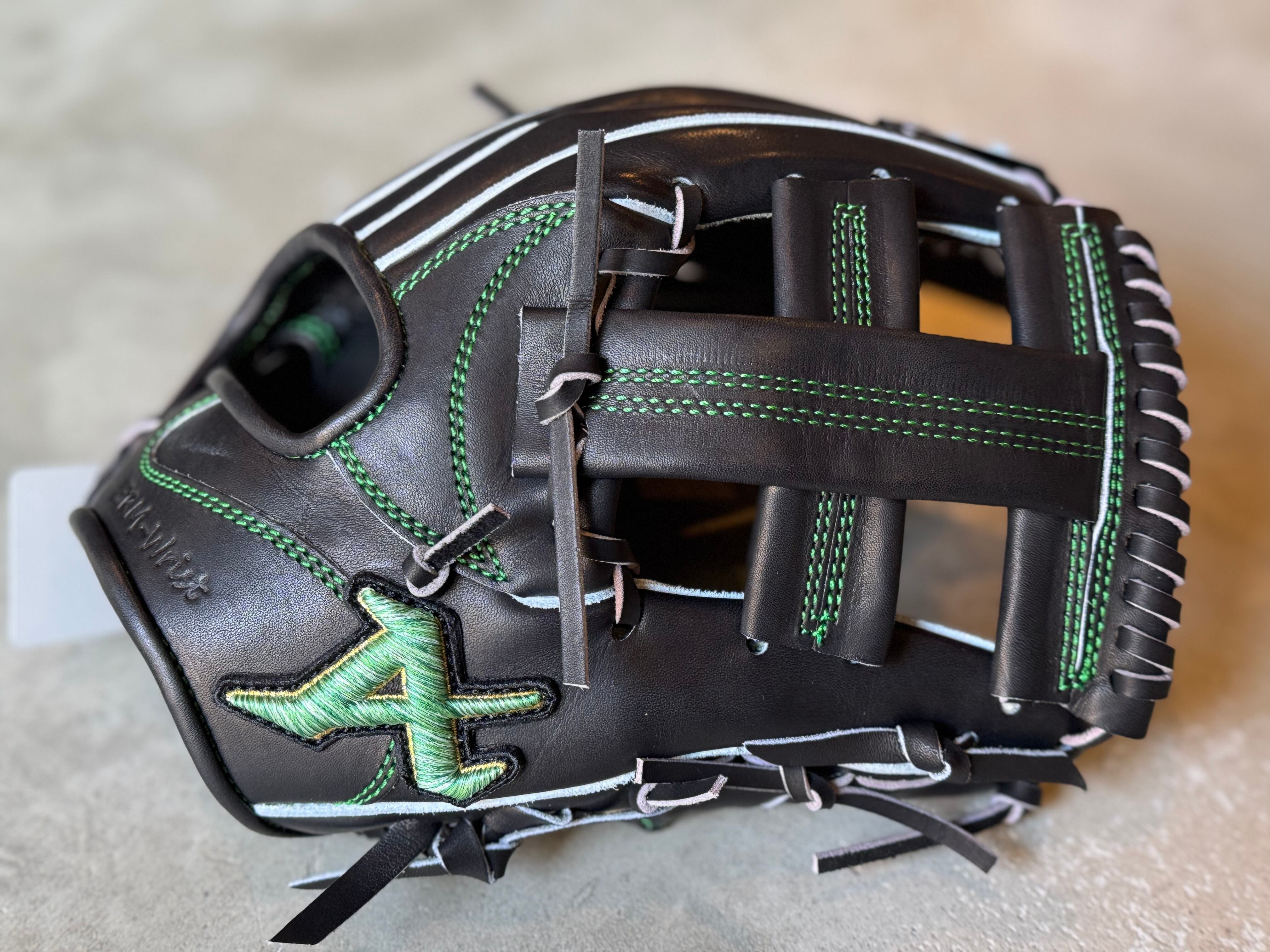 型番:APL-NE102T「102型」 縦約28.3cm。投手兼内野手用として使えるモデル。 内野手用に定評のあるアトムズ。内野も存分に活躍でき横広にポケットを作れる。 新型[ERM-Wrist]採用で操作性もバツグン&革の伸び防止 アトムズ人気主力型番のひとつ。 ポジション:内野手 本体カラー:ブラック ステッチカラー:グリーン ラベル:限定ラベル 専用グラブ袋:有 高校野球使用:可 グラブ工場の聖地奈良県でグラブを作り続ける。 プロ選手はもちろん、SNS界隈も賑わせている新進気鋭のグラブメーカー[ATOMS] 新型[ERM-Wrist]イーアールエムリスト ※革を強化する設計にし、バンド部の革伸び・緩みを防止。長く良いフィット感&しっかり感がプラス。 E…Easy R…Range M…Motion グラブとは守備職人のための「道具」。グラブ職人としてどんなお役に立てるのか。「道具」を創っている我々がそれを進化させるためには。シンプルな問題かつ難問。 「守備職人」とは・・・掘り下げていった結果、「手首の可動域を広く・動きがよくなる」そんな工夫があればよいのではないかという答えに辿り着きました。 ※送料無料 ※型付け有の場合、加工期間に1週間程度かかる可能性がございます。予めご了承下さい。 追加で確認する事項がありましたらメールにてご連絡する事がございます。 ※柔らかさの目安(個人差はございます) 「硬め」・・・形を整える程度。お客様ご自身で柔らかくしていくイメージ。 「普通」・・・キャッチボールが出来る程度。多少の開閉ができるイメージ。 「柔らかめ」・・・ノックなど受けれる程度。しっかり開閉できるイメージ。 ※グラブ刺繍は、平裏土手部のみ可能。ご利用の際はグラブ刺繍ページをご確認下さい。 (メニューバー→カテゴリ→グラブ刺繍)