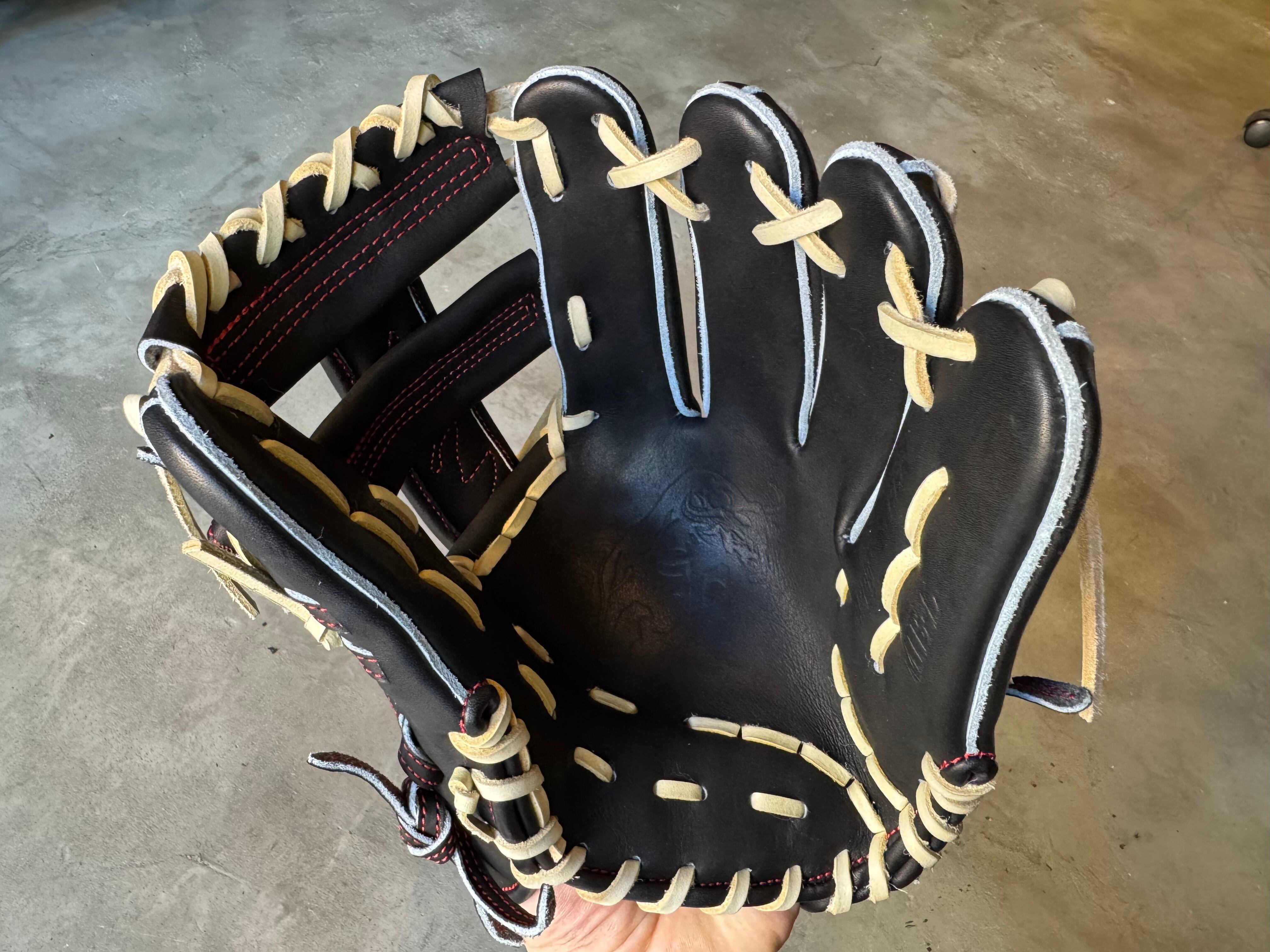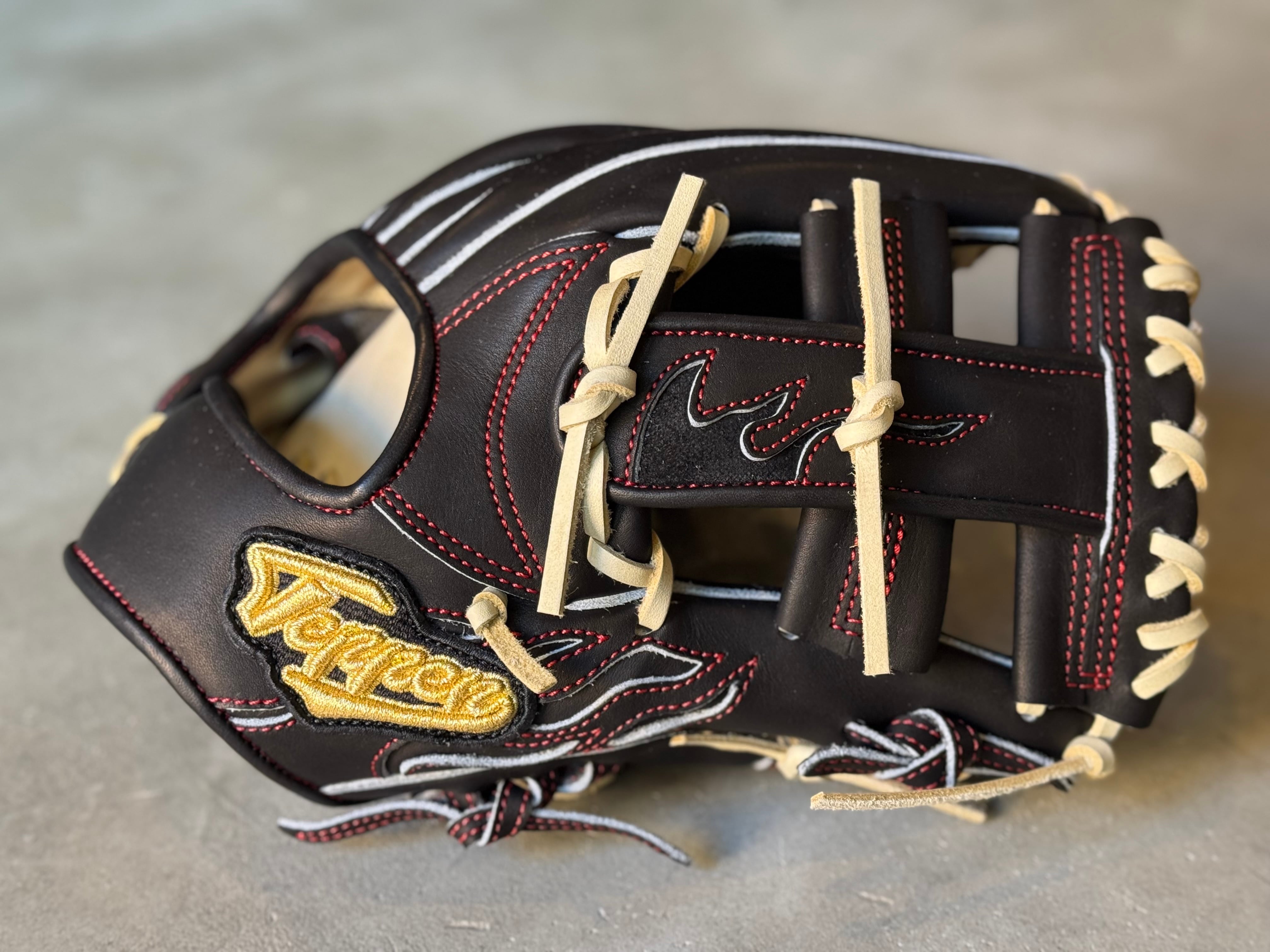 型番:MIE-L TEPPEN人気の内野手用[MIE-L]約28.0cm。 クロスウェブで逆シングルも◎ ポジション:内野手 本体カラー:ブラック ヒラウラカラー:ブロンド ヒモカラー:ブロンド ステッチカラー:レッド ラベル:ゴールド×ブラック 専用グラブ袋:有 ボーイズ・ヤング・高校野球使用:可 TEPPENはじめ氏『至極仕上げ』 TEPPENのグラブは、はじめ氏が魂を込めて形を整えて店舗に入荷してくる。 質感、手馴染みの良さも健在のTEPPENレザーも相まって良いグラブに仕上がってます。 ⭐︎自分だけのTEPPENグローブを作ろう! こちらのECサイトでは、TEPPENグローブのオーダーも受付可能です。 納期は2ヶ月半〜3ヶ月ほど。 お気軽にご相談下さい。 ※送料無料 ※型付け有の場合、加工期間に1週間程度かかる可能性がございます。予めご了承下さい。 追加で確認する事項がありましたらメールにてご連絡する事がございます。 ※柔らかさの目安(個人差はございます) 「硬め」・・・形を整える程度。お客様ご自身で柔らかくしていくイメージ。 「普通」・・・キャッチボールが出来る程度。多少の開閉ができるイメージ。 「柔らかめ」・・・ノックなど受けれる程度。しっかり開閉できるイメージ。 ※グラブ刺繍は、平裏土手部のみ可能。ご利用の際はグラブ刺繍ページをご確認下さい。 (メニューバー→カテゴリ→グラブ刺繍)