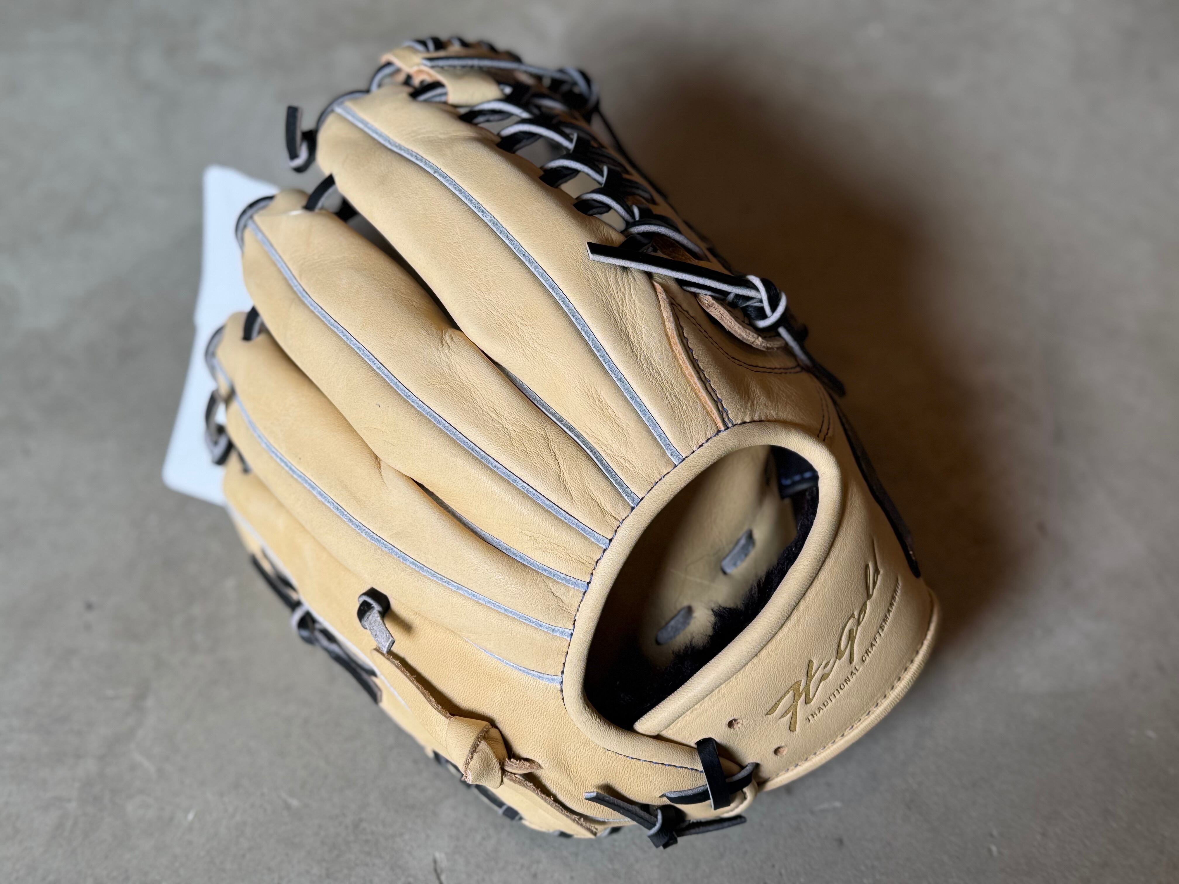 型番・サイズ:RKG-13LL L〜LL(対象5〜6年生) ポジション:オールポジション(28.0cm) 本体カラー:キャメル×ブラック中白 ステッチカラー:ロイヤルブルー ラベル:シルバー×ブラック 専用グラブ袋無し [Hi-GOLD]ROOKIES 少年軟式用グラブ 本物の質感にこだわり、軽さと扱いやすさを追求した人気の新ルーキーズシリーズ。 野球を始めるならまずはこちらのグローブから‼︎ 入門編にピッタリ。 小学生が握りやすいように、「革質」「芯材」にもこだわった扱いやすい設計。 当店の型付けも込みで、すぐにお使い頂けるグラブに仕上がります。 ※型付け有の場合、加工期間に1週間程度かかる可能性がございます。予めご了承下さい。 追加で確認する事項がありましたらメールにてご連絡する事がございます。 ※柔らかさの目安(個人差はございます) 「硬め」・・・形を整える程度。お客様ご自身で柔らかくしていくイメージ。 「普通」・・・キャッチボールが出来る程度。多少の開閉ができるイメージ。 「柔らかめ」・・・ノックなど受けれる程度。しっかり開閉できるイメージ。 ※グラブ刺繍は、平裏土手部のみ可能。ご利用の際はグラブ刺繍ページをご確認下さい。 (メニューバー→カテゴリ→グラブ刺繍)