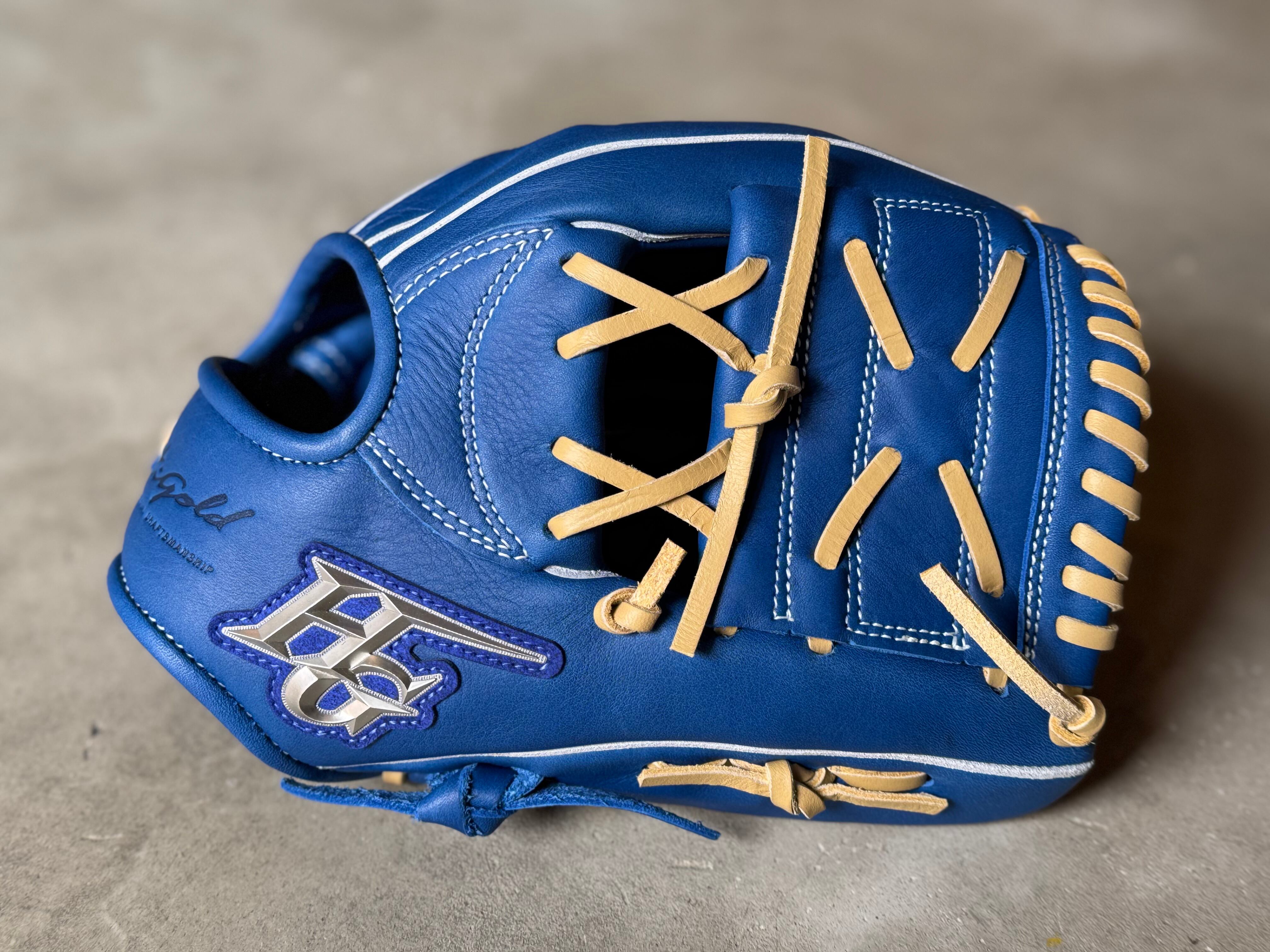 型番・サイズ:RKG-21SM S〜M(対象2〜4年生) ポジション:オールポジション(26.5cm) 本体カラー:ブルー×キャメル ステッチカラー:ホワイト ラベル:シルバー×ブラック 専用グラブ袋無し [Hi-GOLD]ROOKIES 少年軟式用グラブ 本物の質感にこだわり、軽さと扱いやすさを追求した人気の新ルーキーズシリーズ。 野球を始めるならまずはこちらのグローブから‼︎ 入門編にピッタリ。 小学生が握りやすいように、「革質」「芯材」にもこだわった扱いやすい設計。 当店の型付けも込みで、すぐにお使い頂けるグラブに仕上がります。 ※型付け有の場合、加工期間に1週間程度かかる可能性がございます。予めご了承下さい。 追加で確認する事項がありましたらメールにてご連絡する事がございます。 ※柔らかさの目安(個人差はございます) 「硬め」・・・形を整える程度。お客様ご自身で柔らかくしていくイメージ。 「普通」・・・キャッチボールが出来る程度。多少の開閉ができるイメージ。 「柔らかめ」・・・ノックなど受けれる程度。しっかり開閉できるイメージ。 ※グラブ刺繍は、平裏土手部のみ可能。ご利用の際はグラブ刺繍ページをご確認下さい。 (メニューバー→カテゴリ→グラブ刺繍)