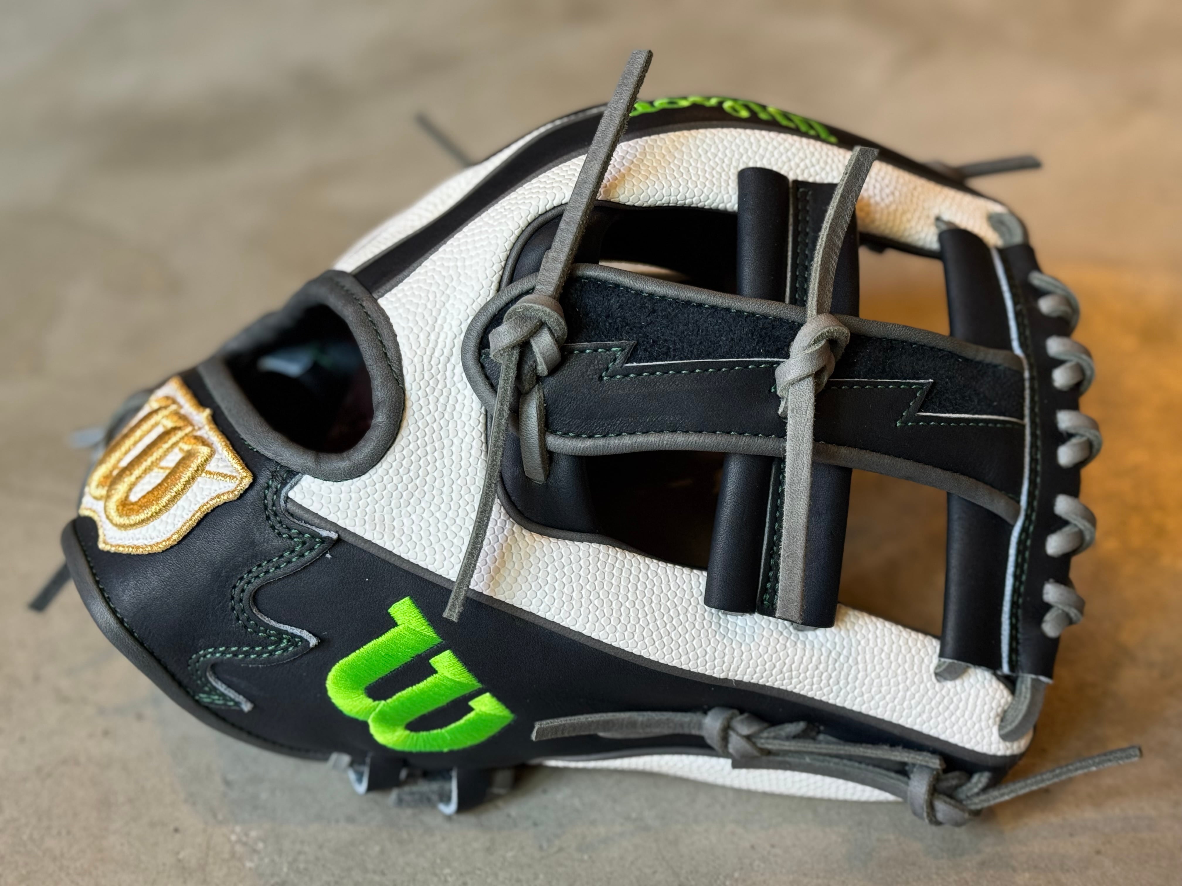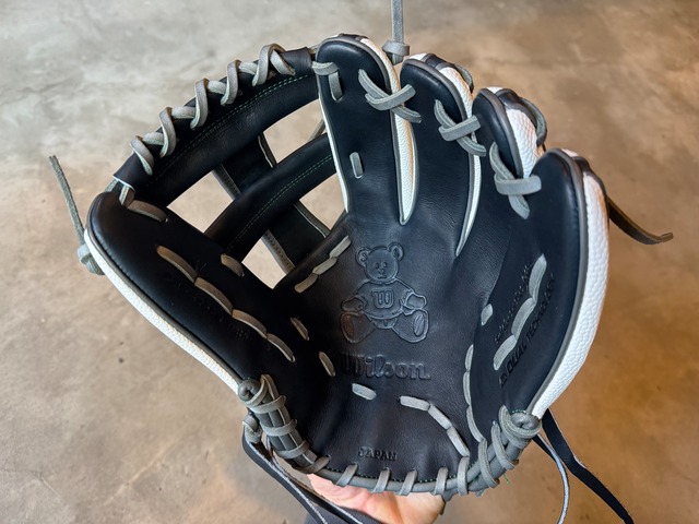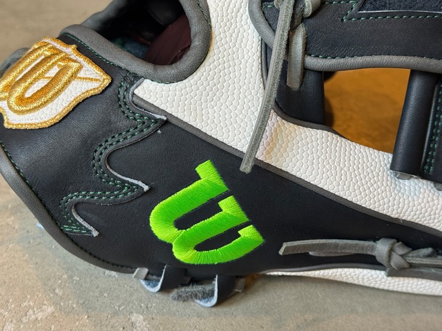 〜Wilsonの軟式オーダーを店舗別注でセレクトしたシリーズ〜 定番モデルでは不可能な良質かつデザイン性・刺繍もふんだんに使用した87スポーツ限定モデル 型番:1975型コユニ推奨 (11.75インチ) (M・ベッツモデル) MLBで人気の内野手用86型を大きくしたポケットをタテに使うグラブ。 ⚪︎フラットバインディング…人差し指を出す部分のヘリ革を特殊縫製することで人差し指の痛さを軽減。 〜デュアル・テクノロジー〜 丸みを帯びた独特な形状により、ポケット以外の部分にボールが当たっても自然とポケットに収まり、捕球から正確なスローイングが可能。 深めでしっかりとキャッチできるモデルとなっております。 ポジション:内野手 本体カラー:Wブラック×ホワイトSS ×Cグレー ステッチカラー:グリーン 紐カラー:Cグレー ラベル :ホワイトSS 専用グラブ袋:有 深めでしっかりとキャッチできるモデルとなっております。 縦にポケットを使う事で握り替えも早く素早い送球が出来ます。 『守備率10割に近づくグラブ』 ◎適材適所設計 〜ポジションによりプレー内容はことなる。よってグラブの役割も異なる〜 「適材(最もふさわしい革と芯材)」を「適所」に採用し、細部に拘って日本の職人が手仕事により作り上げた、技術力向上最重視グラブ。 ○内野手用〜正確に打球をさばくためのグラブ〜 ・手のように自由に動く柔軟性と、軽快な守備を可能にする軽さ、高い耐久性の最強コンビネーション。 ※送料無料 ※型付け有の場合、加工期間に1週間程度かかる可能性がございます。予めご了承下さい。 追加で確認する事項がありましたらメールにてご連絡する事がございます。 ※柔らかさの目安(個人差はございます) 「硬め」・・・形を整える程度。お客様ご自身で柔らかくしていくイメージ。 「普通」・・・キャッチボールが出来る程度。多少の開閉ができるイメージ。 「柔らかめ」・・・ノックなど受けれる程度。しっかり開閉できるイメージ。 ※グラブ刺繍は、平裏土手部のみ可能。ご利用の際はグラブ刺繍ページをご確認下さい。 (メニューバー→カテゴリ→グラブ刺繍)
