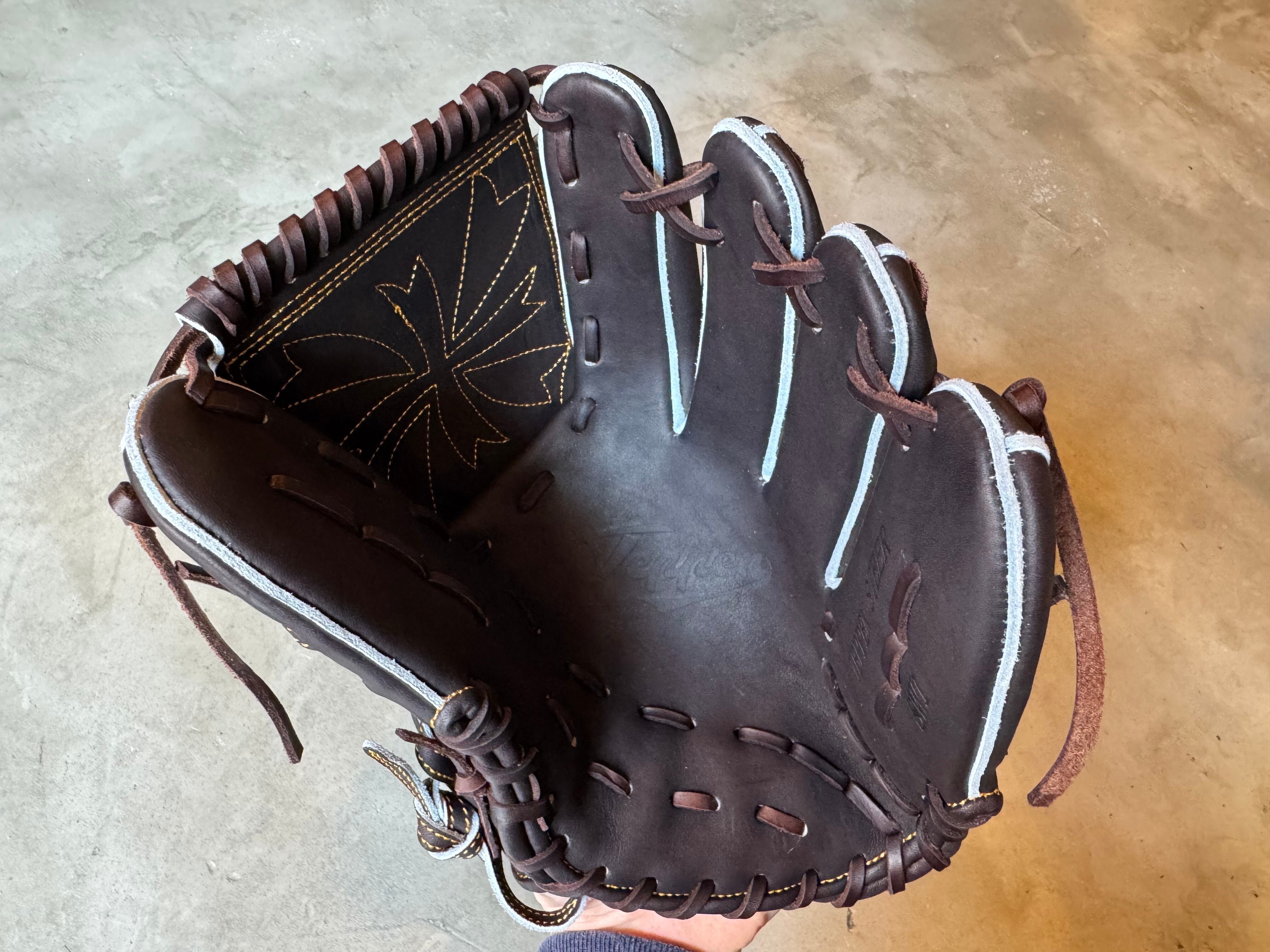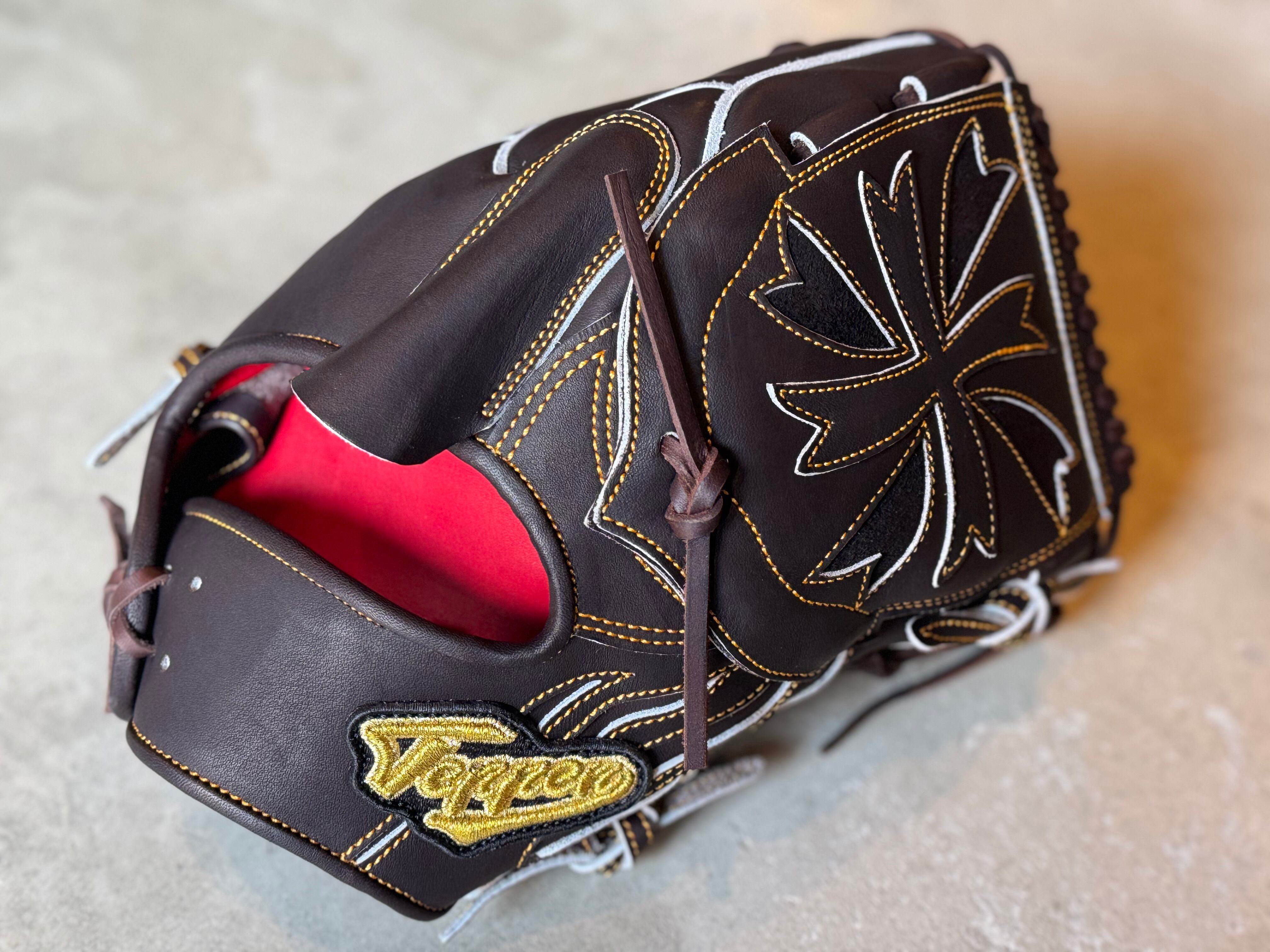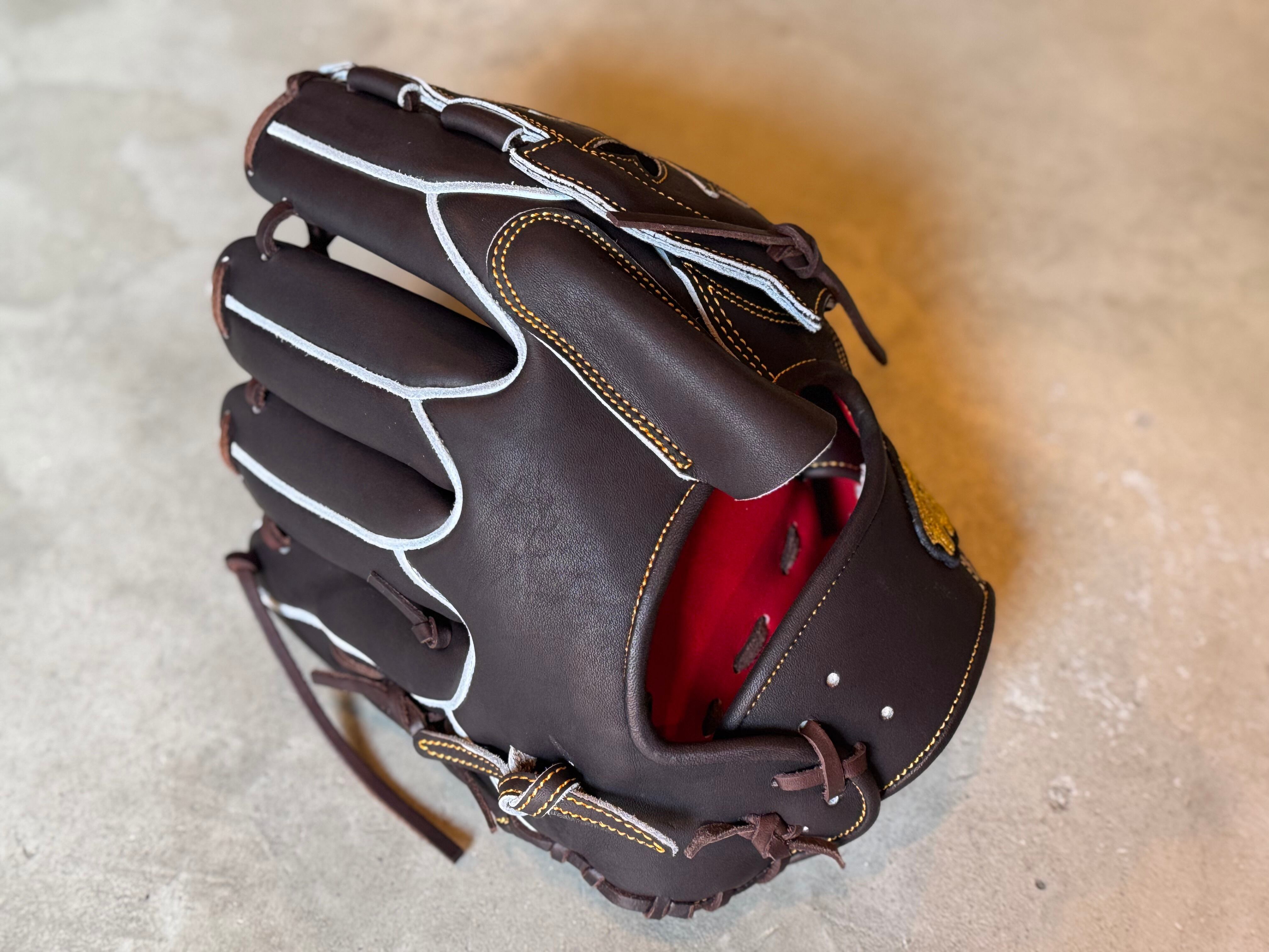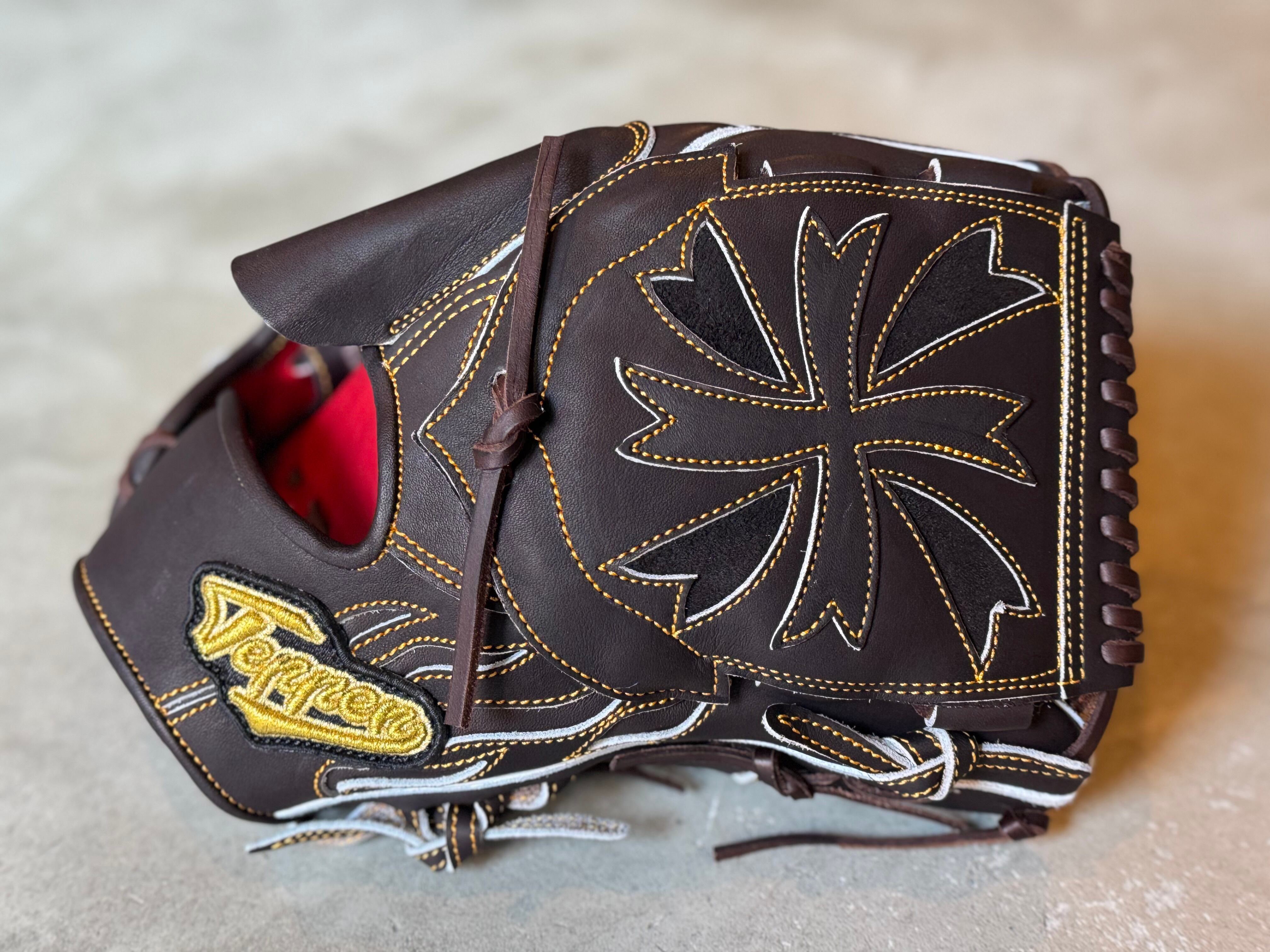 花びらが舞うデザインをイメージしたオシャレウェブ[T5]を採用。 型番:SW1 ウェブ曲げないスタイルでもおなじみ。 TEPPENが誇る人気の投手用[SW1] ポジション:投手 本体カラー:Bブラウン ヒラウラカラー:ワインブラウン ヒモカラー:ブラウン ステッチカラー:オレンジ ラベル:ゴールド×プラチナ×ブラック 専用グラブ袋:有 ボーイズ・ヤング・高校野球使用:可 TEPPENはじめ氏『至極仕上げ』 TEPPENのグラブは、はじめ氏が魂を込めて形を整えて店舗に入荷してくる。 質感、手馴染みの良さも健在のTEPPENレザーも相まって良いグラブに仕上がってます。 ⭐︎自分だけのTEPPENグローブを作ろう! こちらのECサイトでは、TEPPENグローブのオーダーも受付可能です。 納期は2ヶ月半〜3ヶ月ほど。 お気軽にご相談下さい。 ※送料無料 ※型付け有の場合、加工期間に1週間程度かかる可能性がございます。予めご了承下さい。 追加で確認する事項がありましたらメールにてご連絡する事がございます。 ※柔らかさの目安(個人差はございます) 「硬め」・・・形を整える程度。お客様ご自身で柔らかくしていくイメージ。 「普通」・・・キャッチボールが出来る程度。多少の開閉ができるイメージ。 「柔らかめ」・・・ノックなど受けれる程度。しっかり開閉できるイメージ。 ※グラブ刺繍は、平裏土手部のみ可能。ご利用の際はグラブ刺繍ページをご確認下さい。 (メニューバー→カテゴリ→グラブ刺繍)