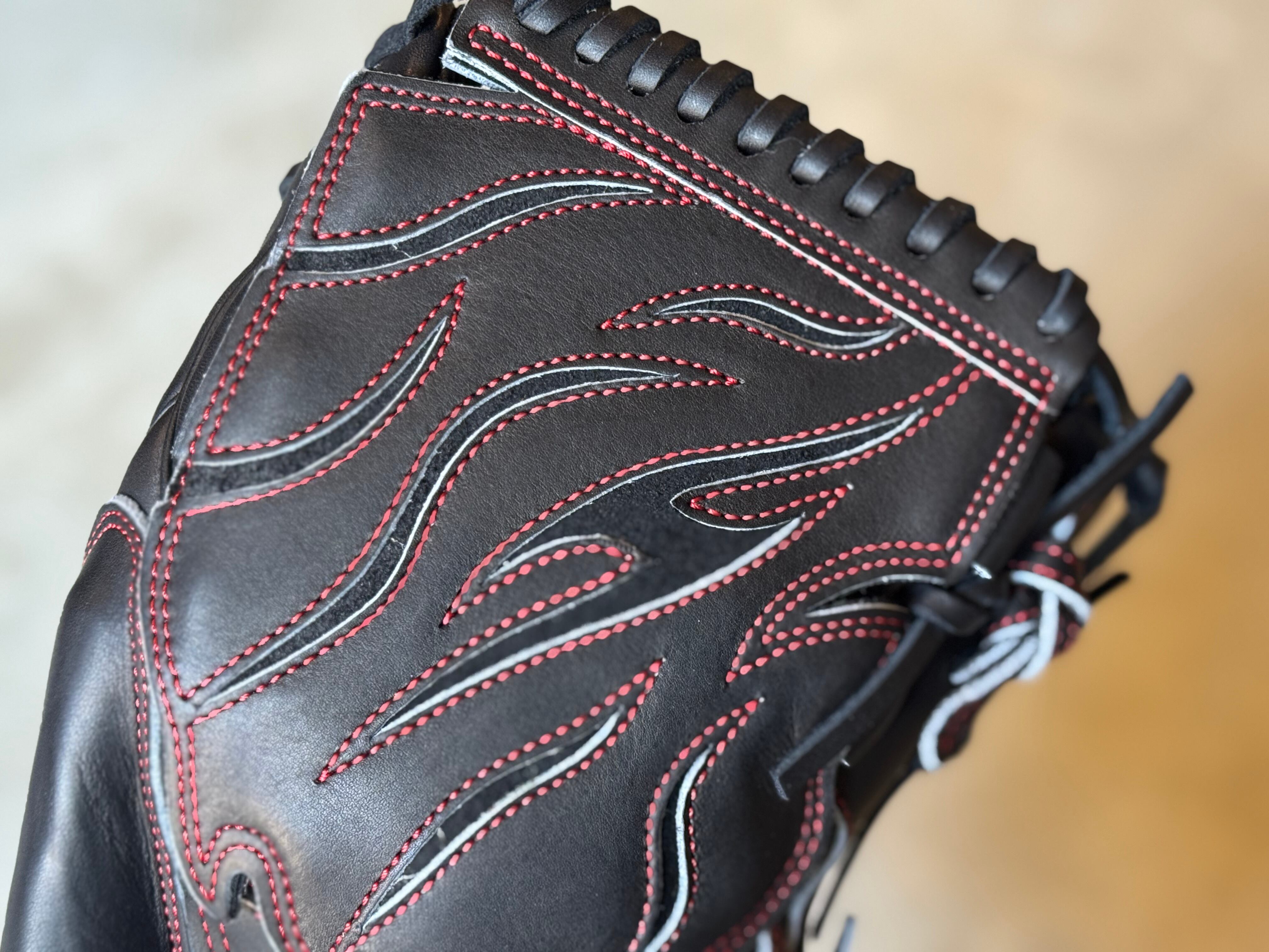 NEWウェブ燃え盛る闘志の炎をイメージした[T6]を採用。 型番:SW1 ウェブ曲げないスタイルでもおなじみ。TEPPENが誇る人気の投手用[SW1] 王冠スタイル採用で握り込む際のしっかり感も抜群! ポジション:投手 本体カラー:ブラック ヒラウラカラー:ブロンド ヒモカラー:ブラック ステッチカラー:レッド ラベル:ブラック×レッド×ブラック 専用グラブ袋:有 ボーイズ・ヤング・高校野球使用:可 TEPPENはじめ氏『至極仕上げ』 TEPPENのグラブは、はじめ氏が魂を込めて形を整えて店舗に入荷してくる。 質感、手馴染みの良さも健在のTEPPENレザーも相まって良いグラブに仕上がってます。 ⭐︎自分だけのTEPPENグローブを作ろう! こちらのECサイトでは、TEPPENグローブのオーダーも受付可能です。 納期は2ヶ月半〜3ヶ月ほど。 お気軽にご相談下さい。 ※送料無料 ※型付け有の場合、加工期間に1週間程度かかる可能性がございます。予めご了承下さい。 追加で確認する事項がありましたらメールにてご連絡する事がございます。 ※柔らかさの目安(個人差はございます) 「硬め」・・・形を整える程度。お客様ご自身で柔らかくしていくイメージ。 「普通」・・・キャッチボールが出来る程度。多少の開閉ができるイメージ。 「柔らかめ」・・・ノックなど受けれる程度。しっかり開閉できるイメージ。 ※グラブ刺繍は、平裏土手部のみ可能。ご利用の際はグラブ刺繍ページをご確認下さい。 (メニューバー→カテゴリ→グラブ刺繍)