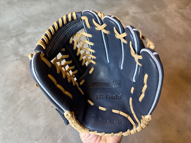 型番・サイズ:RKG-23LL L〜LL(対象5〜6年生) ポジション:オールポジション(28.0cm) 本体カラー:ネイビー×キャメル ステッチカラー:キャメル ラベル:ゴールド(シリコン)×ブラック 専用グラブ袋無し [Hi-GOLD]ROOKIES 少年軟式用グラブ 本物の質感にこだわり、軽さと扱いやすさを追求した人気の新ルーキーズシリーズ。 野球を始めるならまずはこちらのグローブから‼︎ 入門編にピッタリ。 小学生が握りやすいように、「革質」「芯材」にもこだわった扱いやすい設計。 当店の型付けも込みで、すぐにお使い頂けるグラブに仕上がります。 ※型付け有の場合、加工期間に1週間程度かかる可能性がございます。予めご了承下さい。 追加で確認する事項がありましたらメールにてご連絡する事がございます。 ※柔らかさの目安(個人差はございます) 「硬め」・・・形を整える程度。お客様ご自身で柔らかくしていくイメージ。 「普通」・・・キャッチボールが出来る程度。多少の開閉ができるイメージ。 「柔らかめ」・・・ノックなど受けれる程度。しっかり開閉できるイメージ。 ※グラブ刺繍は、平裏土手部のみ可能。ご利用の際はグラブ刺繍ページをご確認下さい。 (メニューバー→カテゴリ→グラブ刺繍)