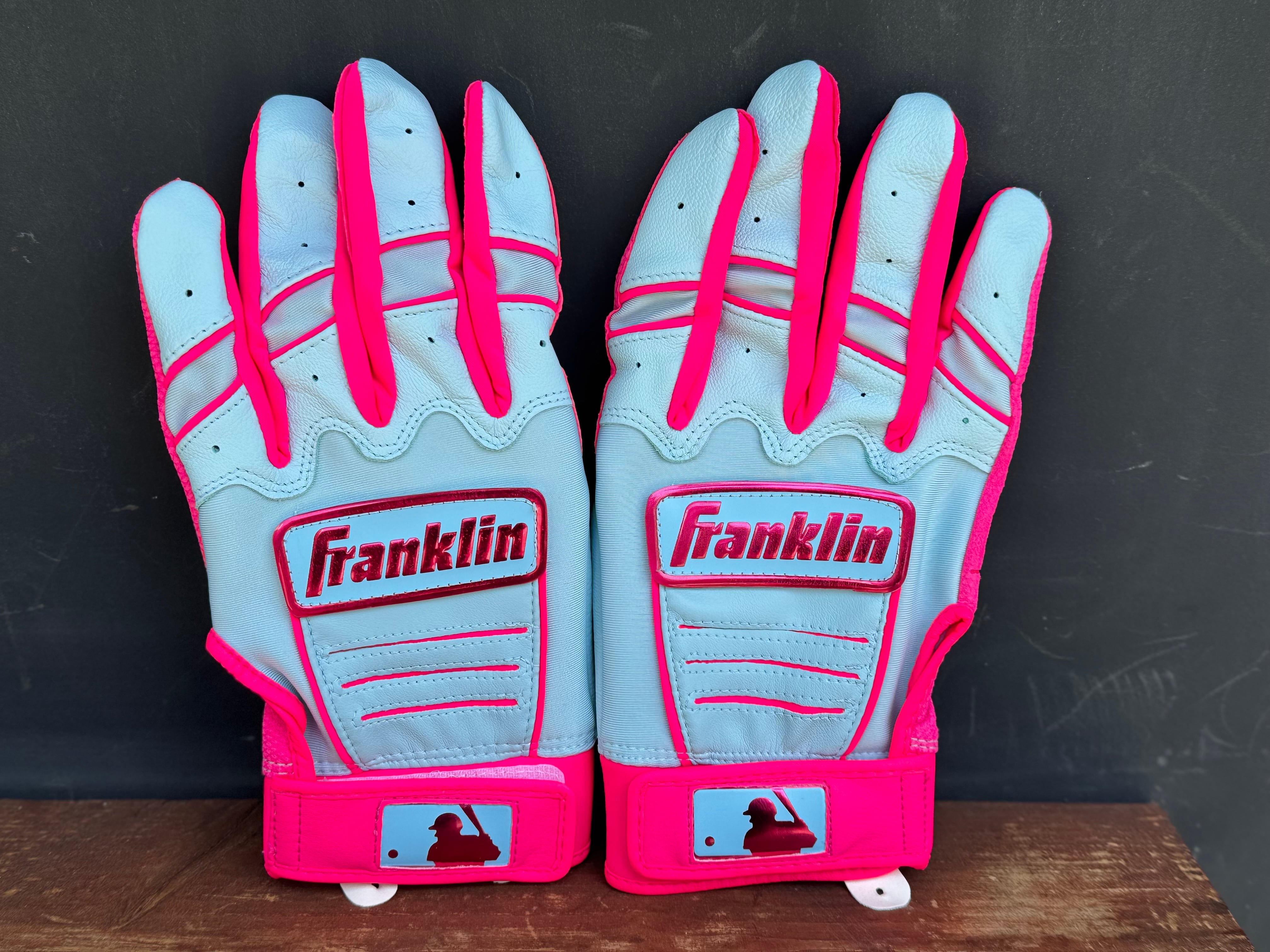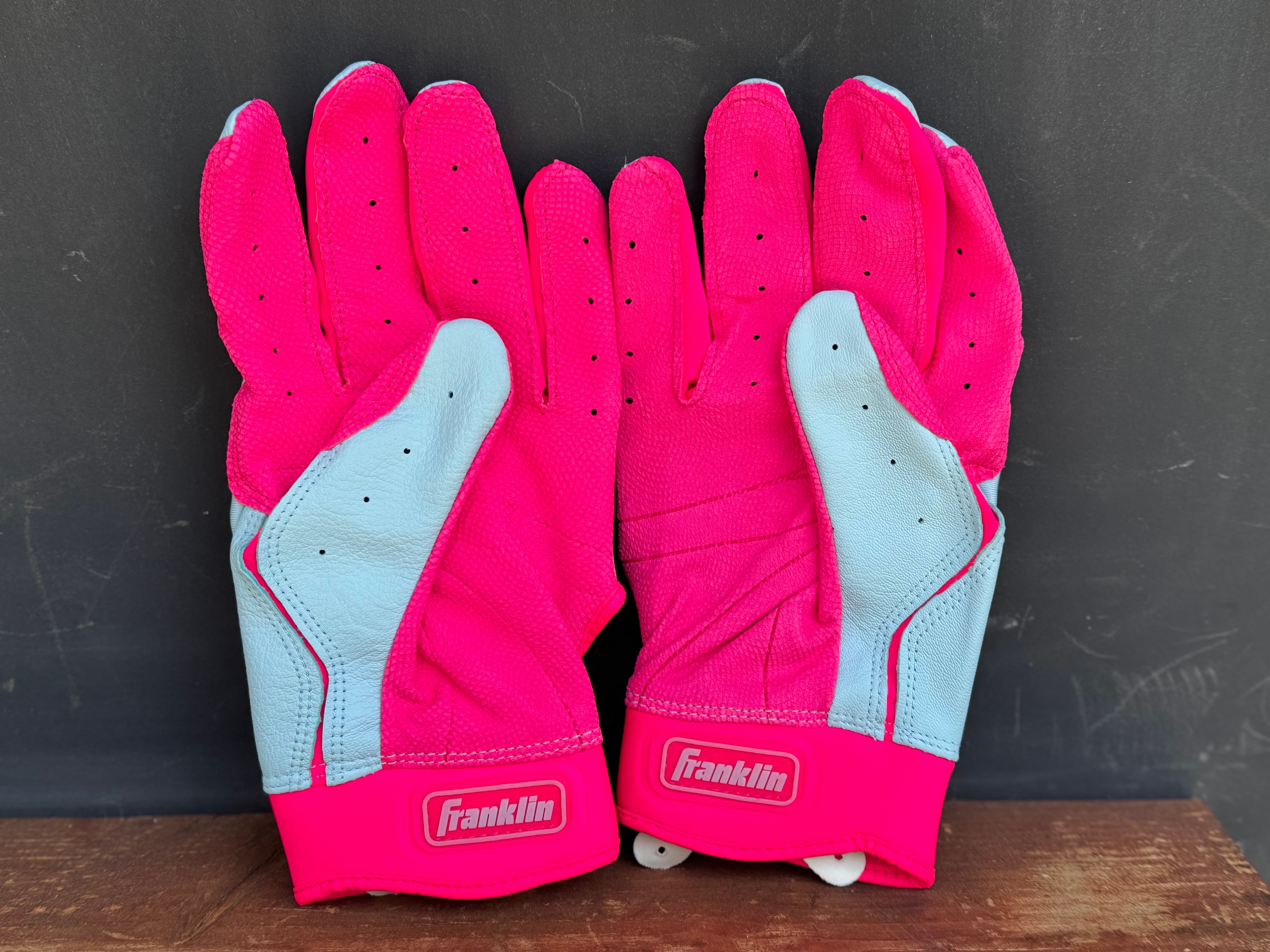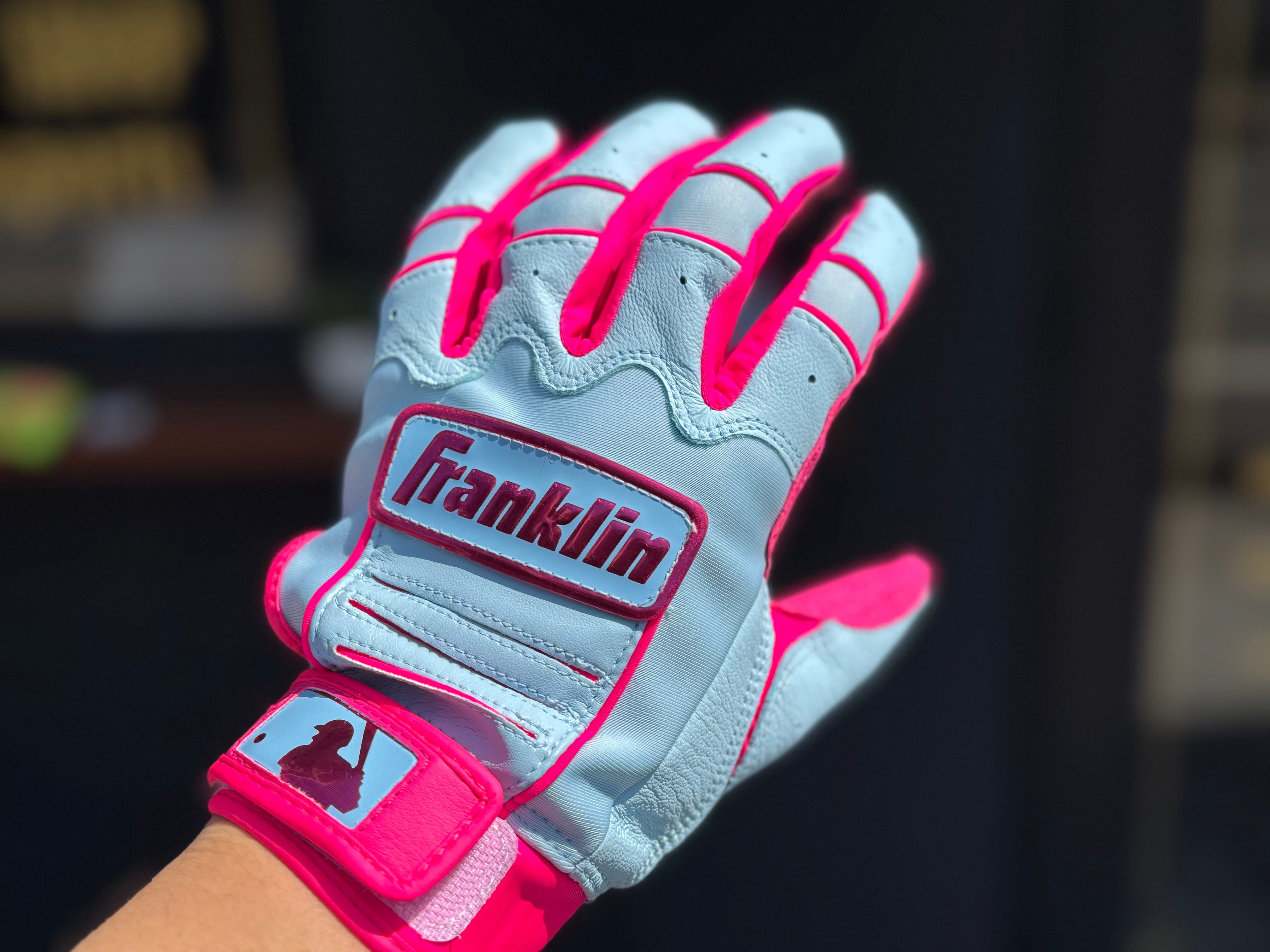 品番:20887 カラー:PNK×C BLUE 言わずと知れた[The American]なベースボール用品メーカー[Franklin] メジャーリーガーも愛用者の多い、耐久性、グリップ力にも優れたバッティンググローブ。 数量限定ですので、ぜひお早めに‼︎