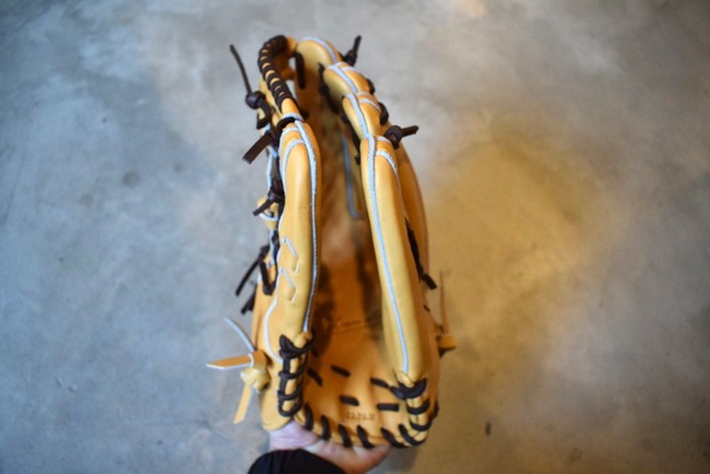 大きく開き、深いポケットで打球を確実に捕るグラブ。ウェブも流行りのダブルシャープを使用し、ガッチリ掴むことをサポート。