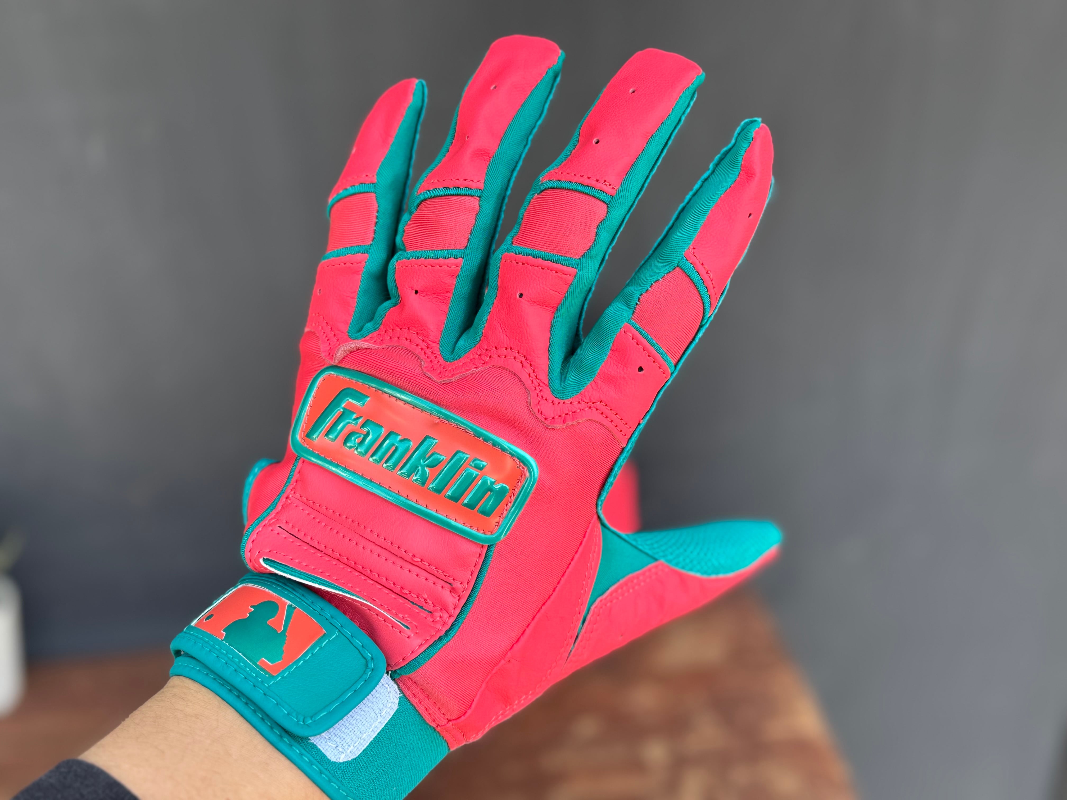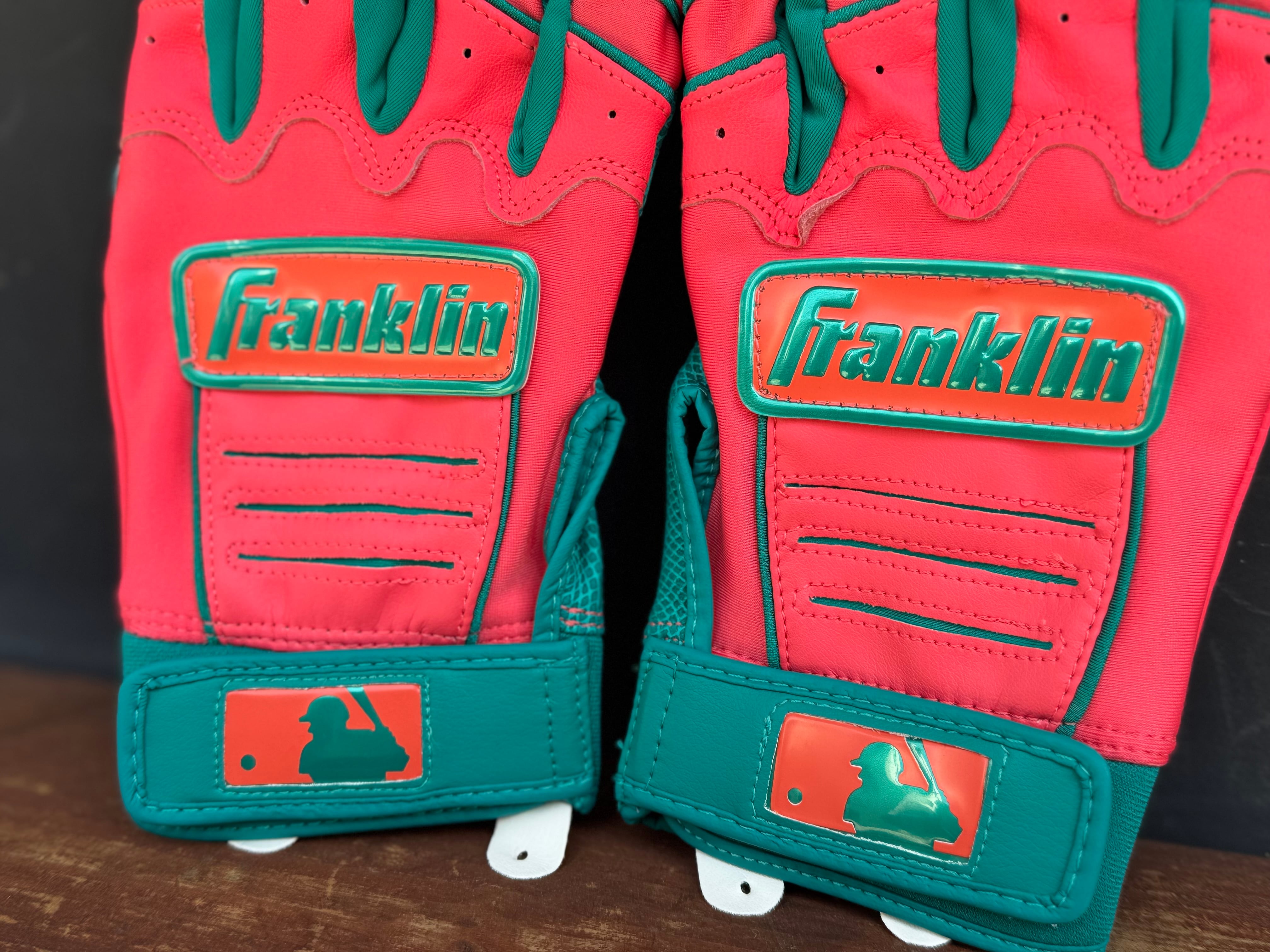 品番:20885 カラー:TEAL×CORL 言わずと知れた[The American]なベースボール用品メーカー[Franklin] メジャーリーガーも愛用者の多い、耐久性、グリップ力にも優れたバッティンググローブ。 数量限定ですので、ぜひお早めに‼︎