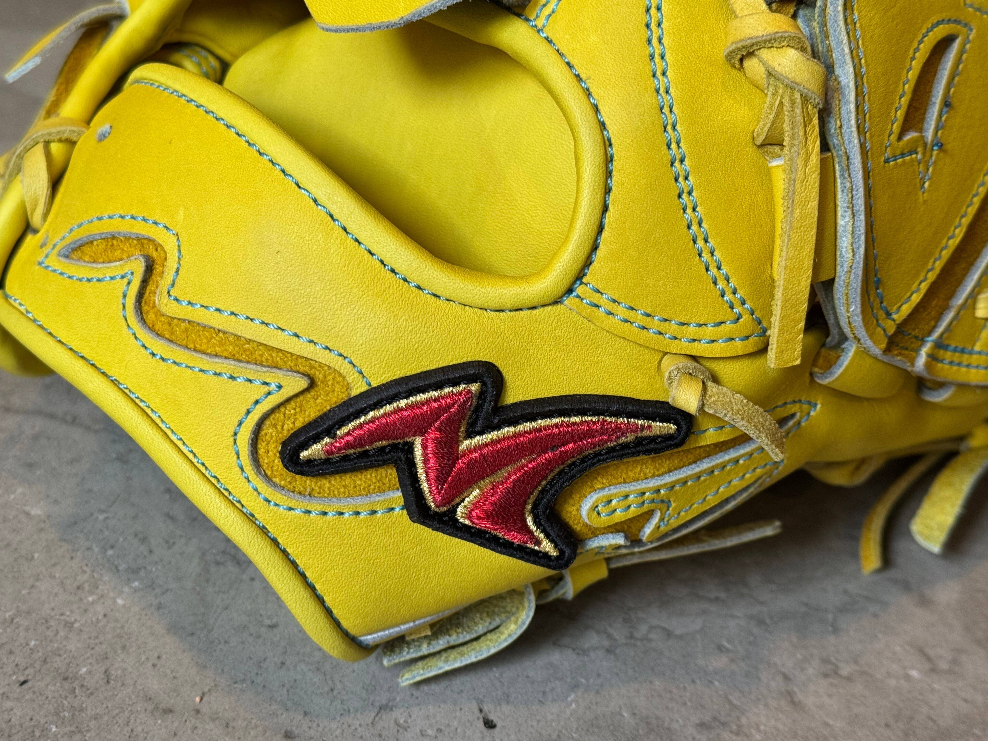 約30.0cmのオーソドックスなサイズ感の投手用モデル。王冠スタイルのノーマルバンド採用。若干横気味に握りやすい設計。
