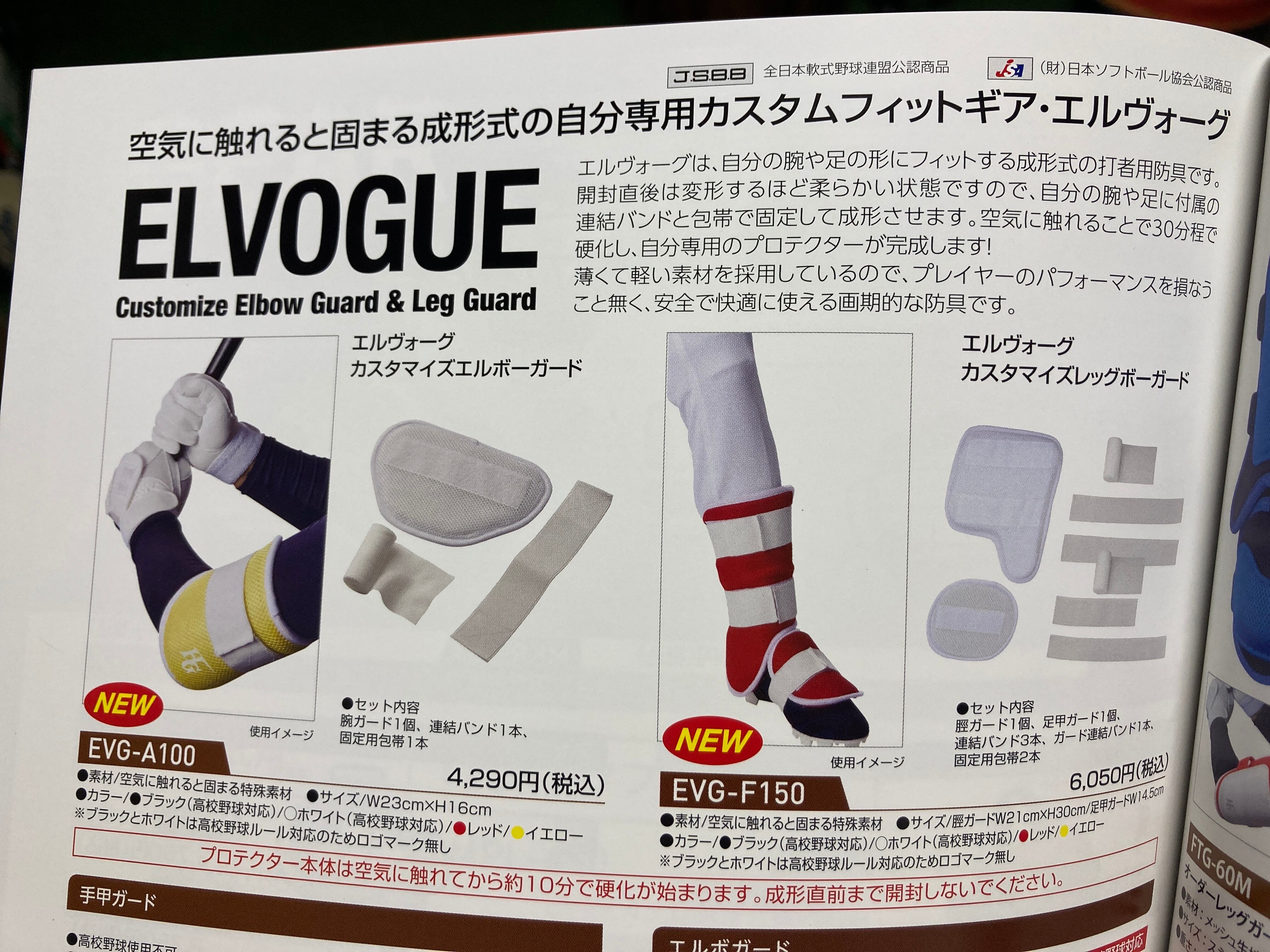 ・エルヴォーグは、自分の腕や足の形にフィットする成形式の打者用防具です。