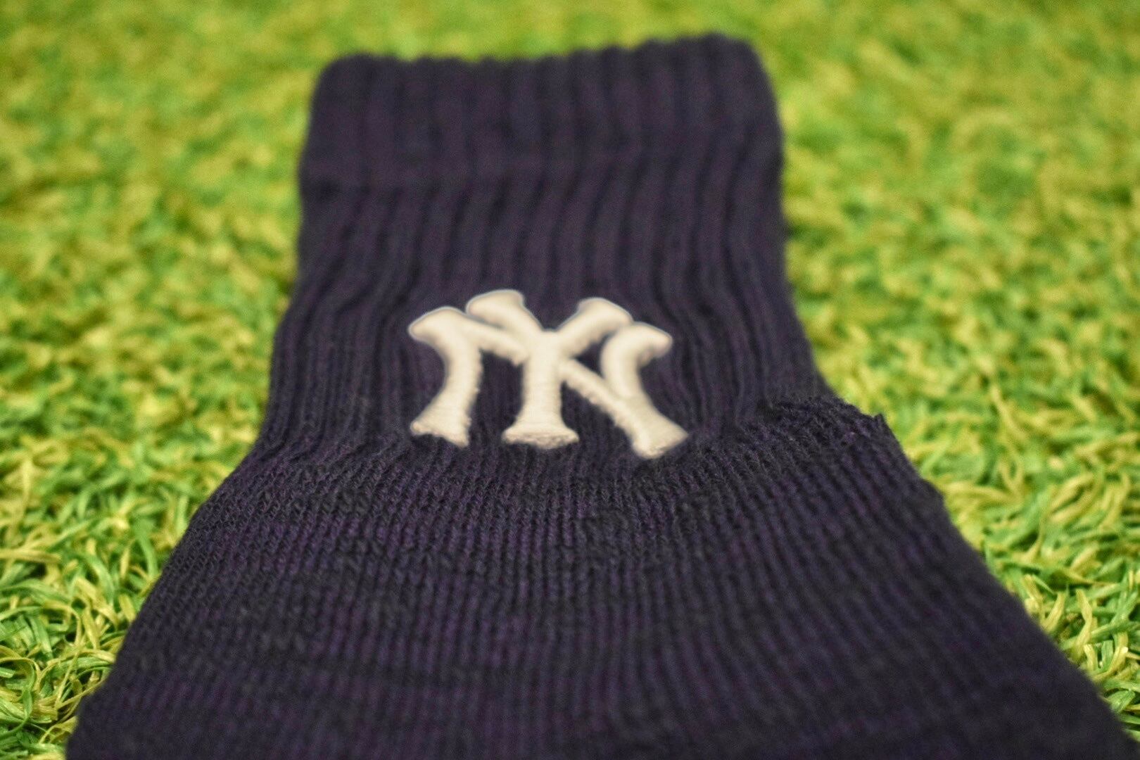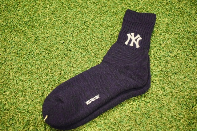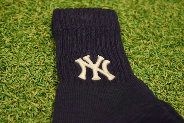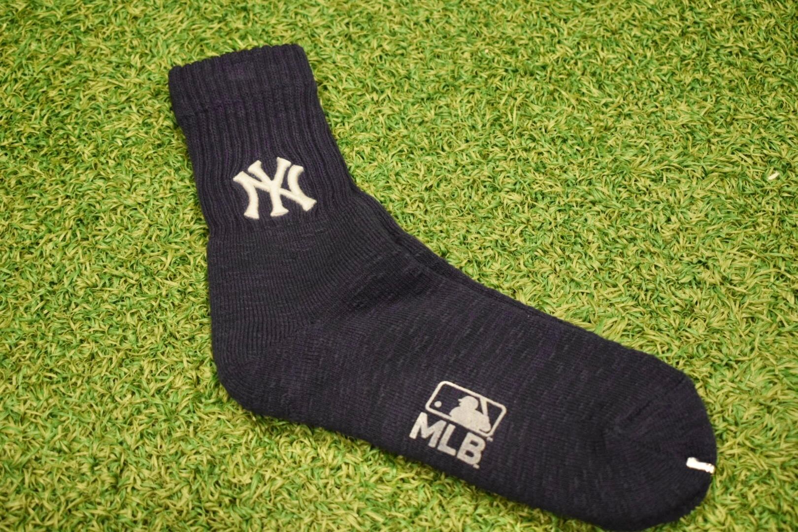 MLBやNYヤンキースのロゴが入った、しっかりとした厚みのある生地感のソックス。