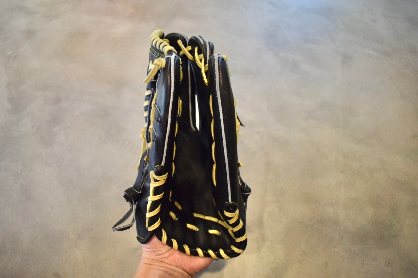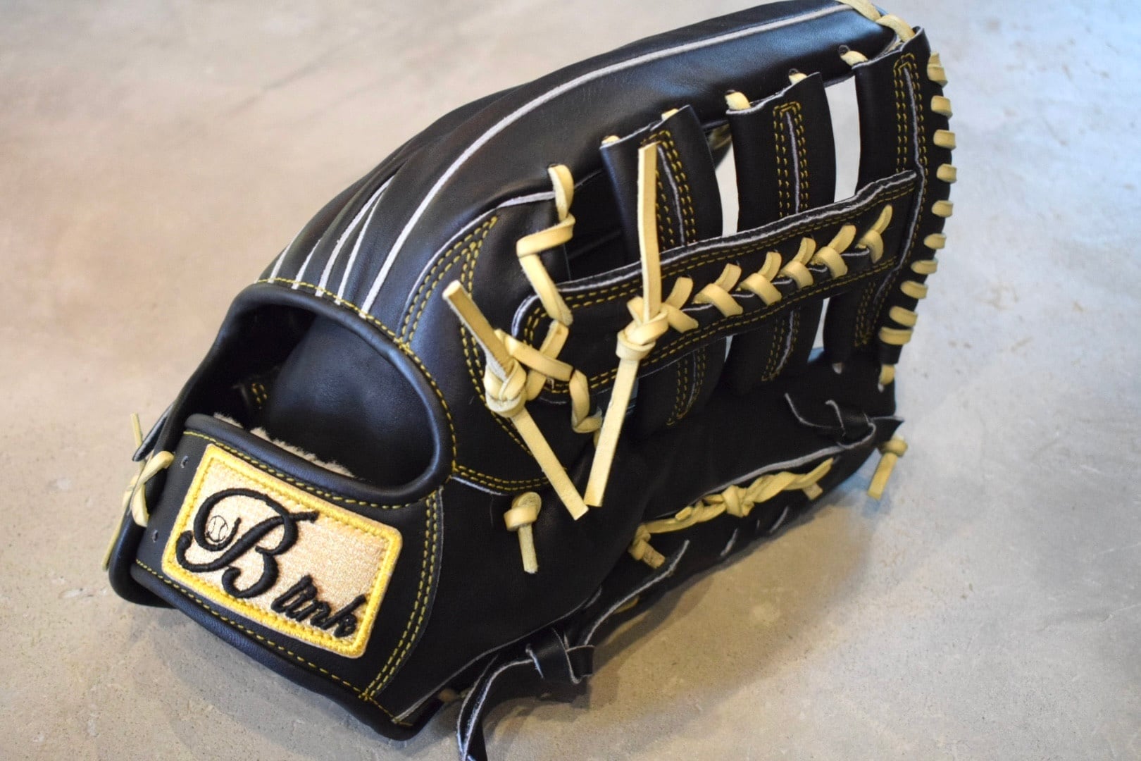 小指二本入れなのに手が奥までしっかり入る! 安心の捕球感‼︎ 型番:B-7 約32.0cm。オーソドックスな大きさの外野手用グラブ。クオリティを追求したB-link Proシリーズ。 ポジション:外野手 本体カラー:ブラック 紐カラー:キャメル ステッチカラー:ゴールド ラベル:ブラック×ゴールド 高校野球使用:可 小指2本入れグラブ専門メーカー【B-link】 大阪桐蔭高校、同志社大学、西濃運輸などの球歴を持ち、BT野球スクールなどを経営する生島氏がプロデュースした今話題の小指2本入れグラブが登場‼︎ [身体の連動に特化した唯一無二の小指2本専門メーカー] 小指2本入れ専用のグラブにする事で、捕球時にしっかりと打球を掴め、逆シングルへの対応も抜群にしやすい。 さらに、身体の連動性が上がる。送球時等に身体が開かなくなり、安定した送球がしやすくなる。 ※送料無料 ※型付け有の場合、加工期間に1週間程度かかる可能性がございます。予めご了承下さい。 追加で確認する事項がありましたらメールにてご連絡する事がございます。 ※柔らかさの目安(個人差はございます) 「硬め」・・・形を整える程度。お客様ご自身で柔らかくしていくイメージ。 「普通」・・・キャッチボールが出来る程度。多少の開閉ができるイメージ。 「柔らかめ」・・・ノックなど受けれる程度。しっかり開閉できるイメージ。 ※グラブ刺繍は、平裏土手部のみ可能。ご利用の際はグラブ刺繍ページをご確認下さい。 (メニューバー→カテゴリ→グラブ刺繍)