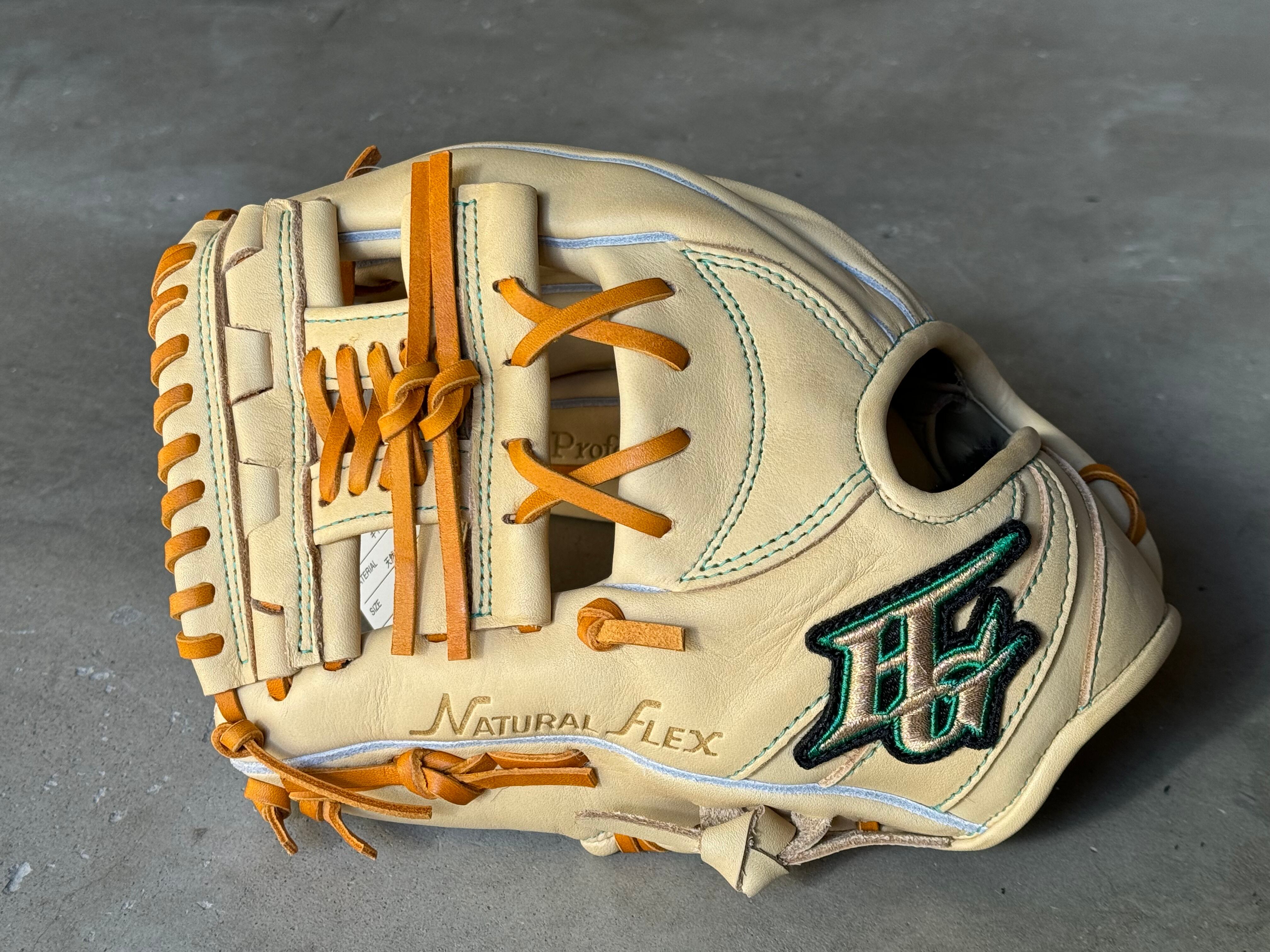 型番・サイズ:RKG-1112 M〜L(対象3〜5年生) ポジション:オールポジション(27.5cm) 本体カラー:キャメル×タン ステッチカラー:グリーン ラベル:シャイニングゴールド×グリーン×ブラック 専用グラブ袋無し [Hi-GOLD]ROOKIES 少年軟式用グラブ 本物の質感にこだわり、軽さと扱いやすさを追求した人気の新ルーキーズシリーズ。 野球を始めるならまずはこちらのグローブから‼︎ 入門編にピッタリ。 小学生が握りやすいように、「革質」「芯材」にもこだわった扱いやすい設計。 当店の型付けも込みで、すぐにお使い頂けるグラブに仕上がります。 ※型付け有の場合、加工期間に1週間程度かかる可能性がございます。予めご了承下さい。 追加で確認する事項がありましたらメールにてご連絡する事がございます。 ※柔らかさの目安(個人差はございます) 「硬め」・・・形を整える程度。お客様ご自身で柔らかくしていくイメージ。 「普通」・・・キャッチボールが出来る程度。多少の開閉ができるイメージ。 「柔らかめ」・・・ノックなど受けれる程度。しっかり開閉できるイメージ。 ※グラブ刺繍は、平裏土手部のみ可能。ご利用の際はグラブ刺繍ページをご確認下さい。 (メニューバー→カテゴリ→グラブ刺繍)