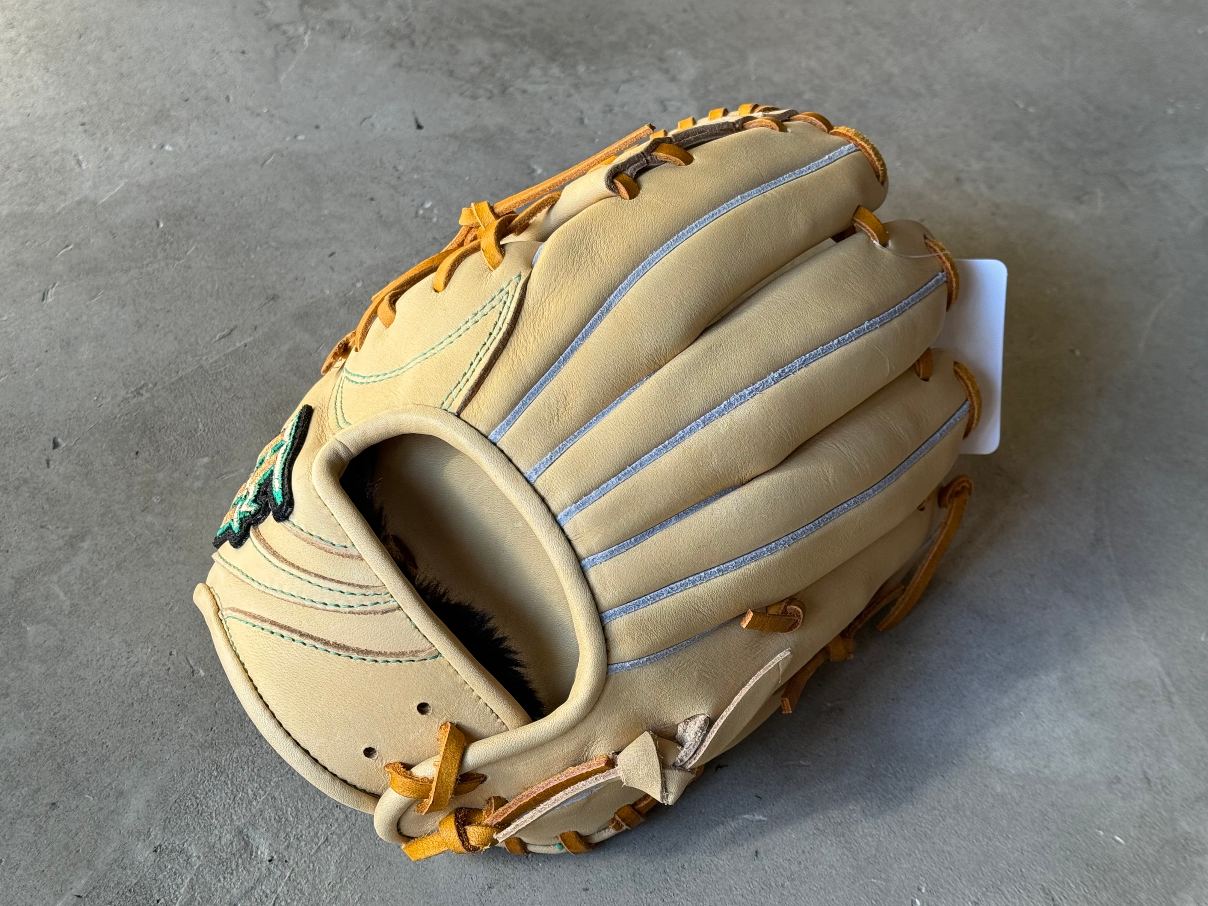 型番・サイズ:RKG-1111 S〜M(対象2〜4年生) ポジション:オールポジション(26.5cm) 本体カラー:キャメル×タン ステッチカラー:グリーン ラベル:シャイニングゴールド×グリーン×ブラック 専用グラブ袋無し [Hi-GOLD]ROOKIES 少年軟式用グラブ 本物の質感にこだわり、軽さと扱いやすさを追求した人気の新ルーキーズシリーズ。 野球を始めるならまずはこちらのグローブから‼︎ 入門編にピッタリ。 小学生が握りやすいように、「革質」「芯材」にもこだわった扱いやすい設計。 当店の型付けも込みで、すぐにお使い頂けるグラブに仕上がります。 ※型付け有の場合、加工期間に1週間程度かかる可能性がございます。予めご了承下さい。 追加で確認する事項がありましたらメールにてご連絡する事がございます。 ※柔らかさの目安(個人差はございます) 「硬め」・・・形を整える程度。お客様ご自身で柔らかくしていくイメージ。 「普通」・・・キャッチボールが出来る程度。多少の開閉ができるイメージ。 「柔らかめ」・・・ノックなど受けれる程度。しっかり開閉できるイメージ。 ※グラブ刺繍は、平裏土手部のみ可能。ご利用の際はグラブ刺繍ページをご確認下さい。 (メニューバー→カテゴリ→グラブ刺繍)