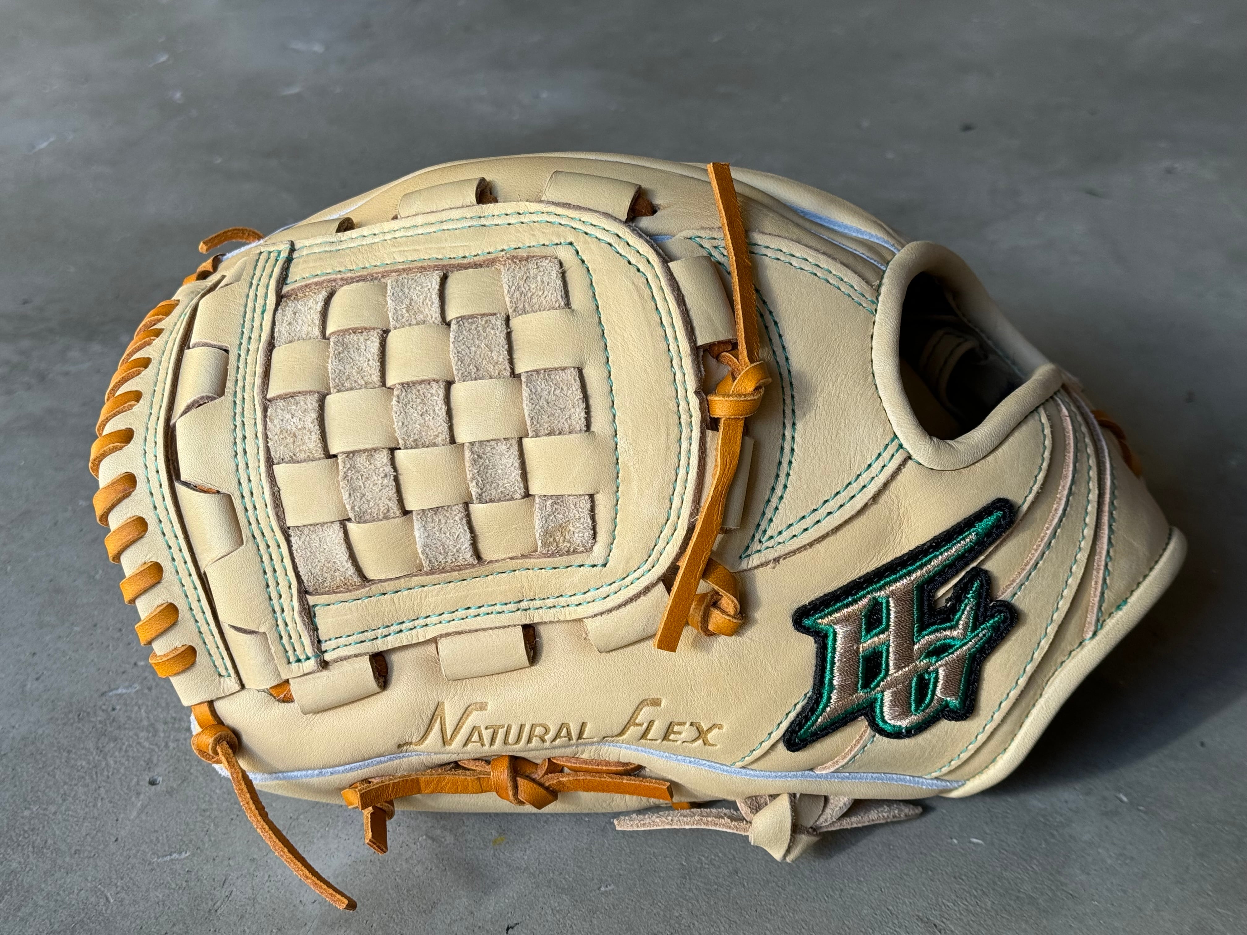 型番・サイズ:RKG-1113 L〜LL(対象5〜6年生) ポジション:オールポジション(28.0cm) 本体カラー:キャメル×タン ステッチカラー:グリーン ラベル:シャイニングゴールド×グリーン×ブラック 専用グラブ袋無し [Hi-GOLD]ROOKIES 少年軟式用グラブ 本物の質感にこだわり、軽さと扱いやすさを追求した人気の新ルーキーズシリーズ。 野球を始めるならまずはこちらのグローブから‼︎ 入門編にピッタリ。 小学生が握りやすいように、「革質」「芯材」にもこだわった扱いやすい設計。 当店の型付けも込みで、すぐにお使い頂けるグラブに仕上がります。 ※型付け有の場合、加工期間に1週間程度かかる可能性がございます。予めご了承下さい。 追加で確認する事項がありましたらメールにてご連絡する事がございます。 ※柔らかさの目安(個人差はございます) 「硬め」・・・形を整える程度。お客様ご自身で柔らかくしていくイメージ。 「普通」・・・キャッチボールが出来る程度。多少の開閉ができるイメージ。 「柔らかめ」・・・ノックなど受けれる程度。しっかり開閉できるイメージ。 ※グラブ刺繍は、平裏土手部のみ可能。ご利用の際はグラブ刺繍ページをご確認下さい。 (メニューバー→カテゴリ→グラブ刺繍)