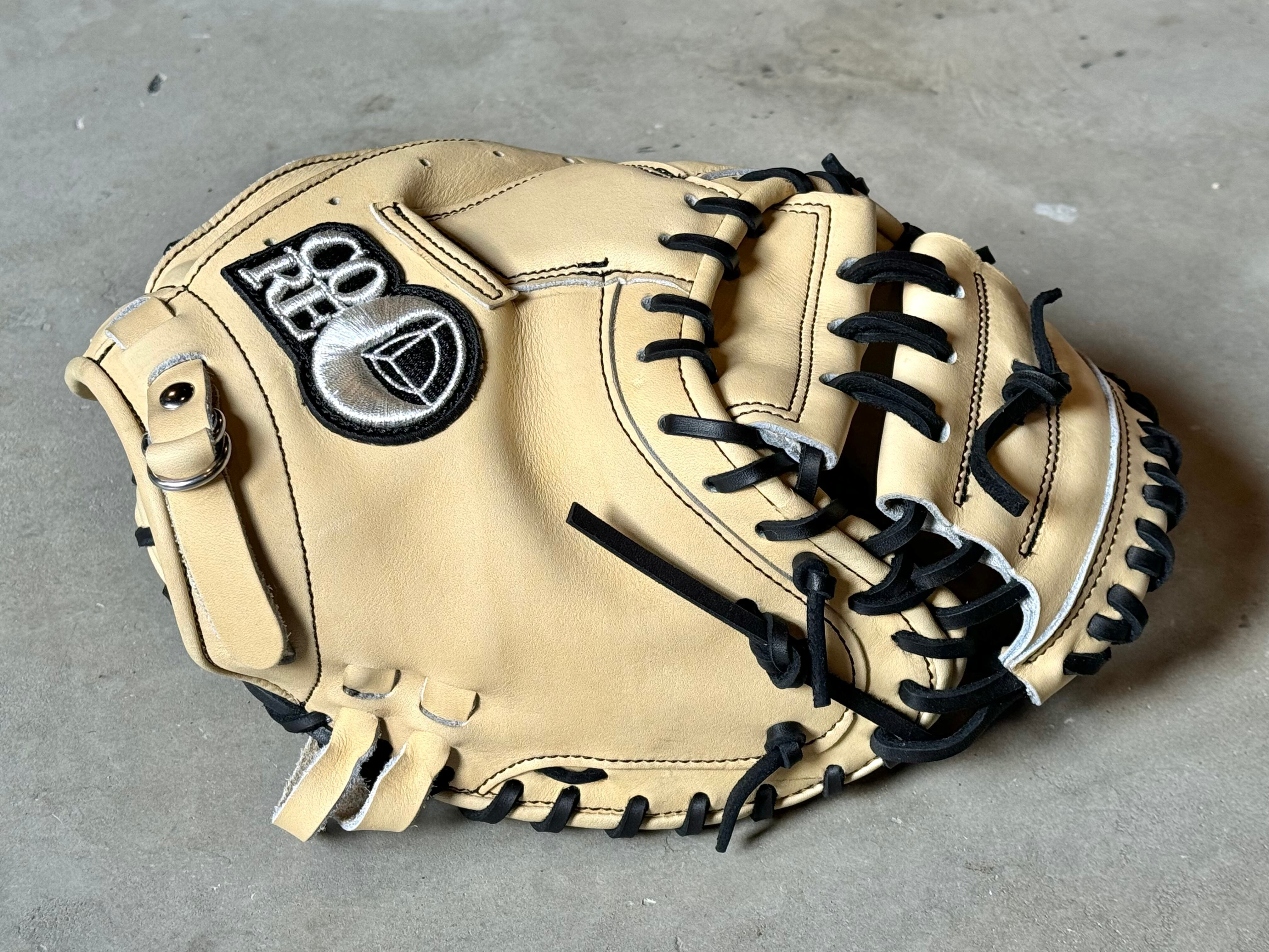 【CORE】硬式用キャッチャーミット キャッチャーミットはどこで捕るのが正解なのか!? ラクして捕ってそれ以上上手くなれるのか!? どうしたら上手くなれるか、その道筋を示してくれるキャッチャーミット 本体カラー:キャメル×ブラック ステッチカラー:ブラック ラベル:シルバー×ブラック 高校野球使用:可 [話題のキャッチャーミット CORE(コア)] キャッチャーのプレーを考え、追求して 生み出されたキャッチャーミット。 全ての箇所にこだわりがあり、それが正解。 ○親指にアーチが掛けやすい芯構造 ○指当ては送球時に最適な形 ○指入れ部をツマミ縫いにする事でフィット感向上 ○ウェブ穴を増やし強度、捕球率UP ○最適なポケット位置を作る形 ○ヘタらない強度 キャッチャーミットの正解はこれです。 より上のレベルのキャッチャーを目指すなら、 キャッチャーミット専門ブランド【CORE】 ※型付け、送料無料 ※型付け有の場合、加工期間に1週間程度かかる可能性がございます。予めご了承下さい。 また、「ご希望の型」「柔らかさ」「ご年齢(大人or高校生or中学生or小学生)」などございましたら【備考欄】にご記入下さい。 追加で確認する事項がありましたらメールにてご連絡する事がございます。 ※柔らかさの目安(個人差はございます) 「硬め」・・・形を整える程度。お客様ご自身で柔らかくしていくイメージ。 「普通」・・・キャッチボールが出来る程度。多少の開閉ができるイメージ。 「柔らかめ」・・・ノックなど受けれる程度。しっかり開閉できるイメージ。