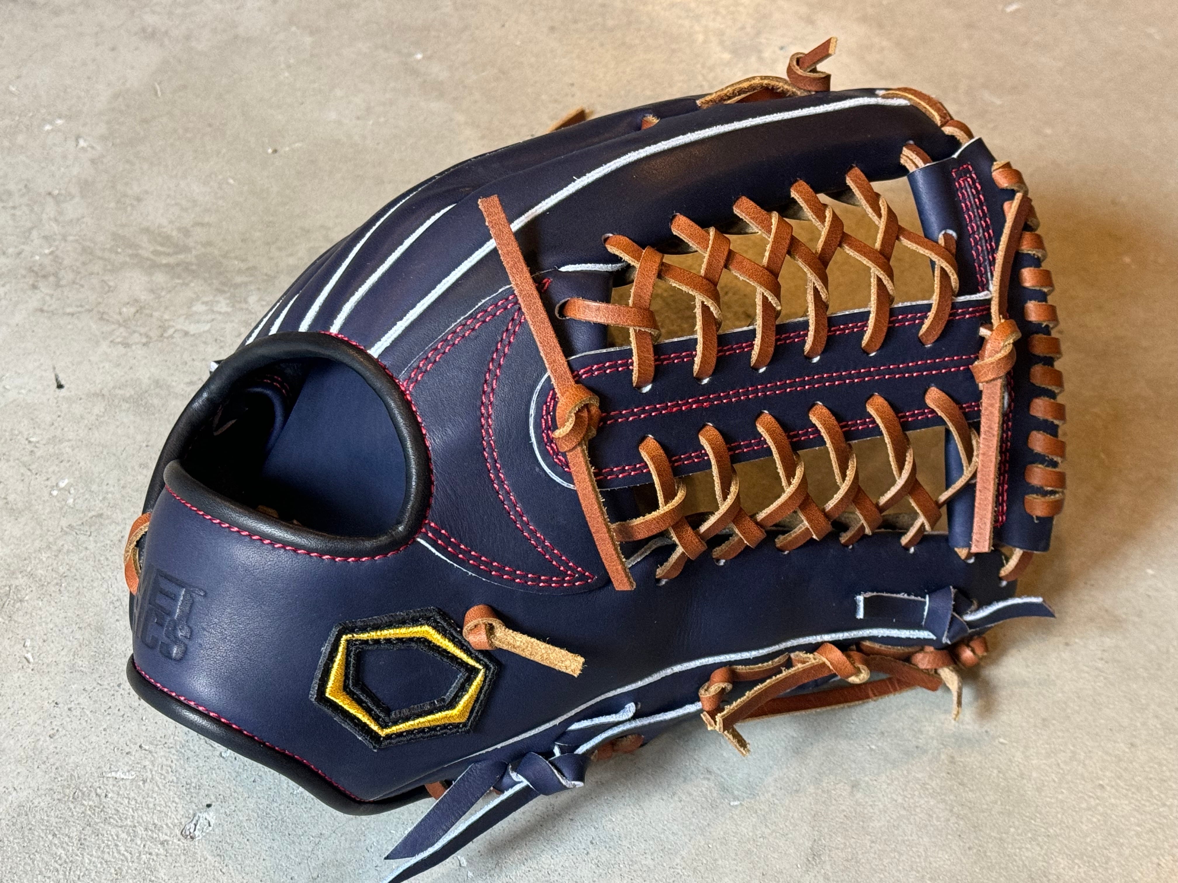新規取り扱いメーカー 【METORICS】硬式用グラブ PREMIUM STEER HIDE 型番:TYPE-07 METRIC外野手用のスタンダードタイプ。しっかり掴みたい方にオススメ!芯材が硬くメリハリあるプレーをサポート。 ※サイズ約31.5cm ポジション:外野手 本体カラー:ネイビーブラック 紐カラー:ブラウン ステッチカラー:レッド ラベル:ゴールド×ブラック 高校野球使用:可 [METRICS]メトリクス 野球におけるデータを統計学的に分析し、選手の能力やチームの戦略を考える分析方法セイバーメトリクス。六角形のエンブレムは様々なデータを戦力分析の指標にした戦闘力の高さを彷彿とさせるレーダーチャートをイメージ。 ※型付け・送料無料 ※型付け有の場合、加工期間に1週間程度かかる可能性がございます。予めご了承下さい。 また、「ご希望の型」「柔らかさ」「ご年齢(大人or高校生or中学生or小学生)」などございましたら【備考欄】にご記入下さい。 追加で確認する事項がありましたらメールにてご連絡する事がございます。 ※柔らかさの目安(個人差はございます) 「硬め」・・・形を整える程度。お客様ご自身で柔らかくしていくイメージ。 「普通」・・・キャッチボールが出来る程度。多少の開閉ができるイメージ。 「柔らかめ」・・・ノックなど受けれる程度。しっかり開閉できるイメージ。