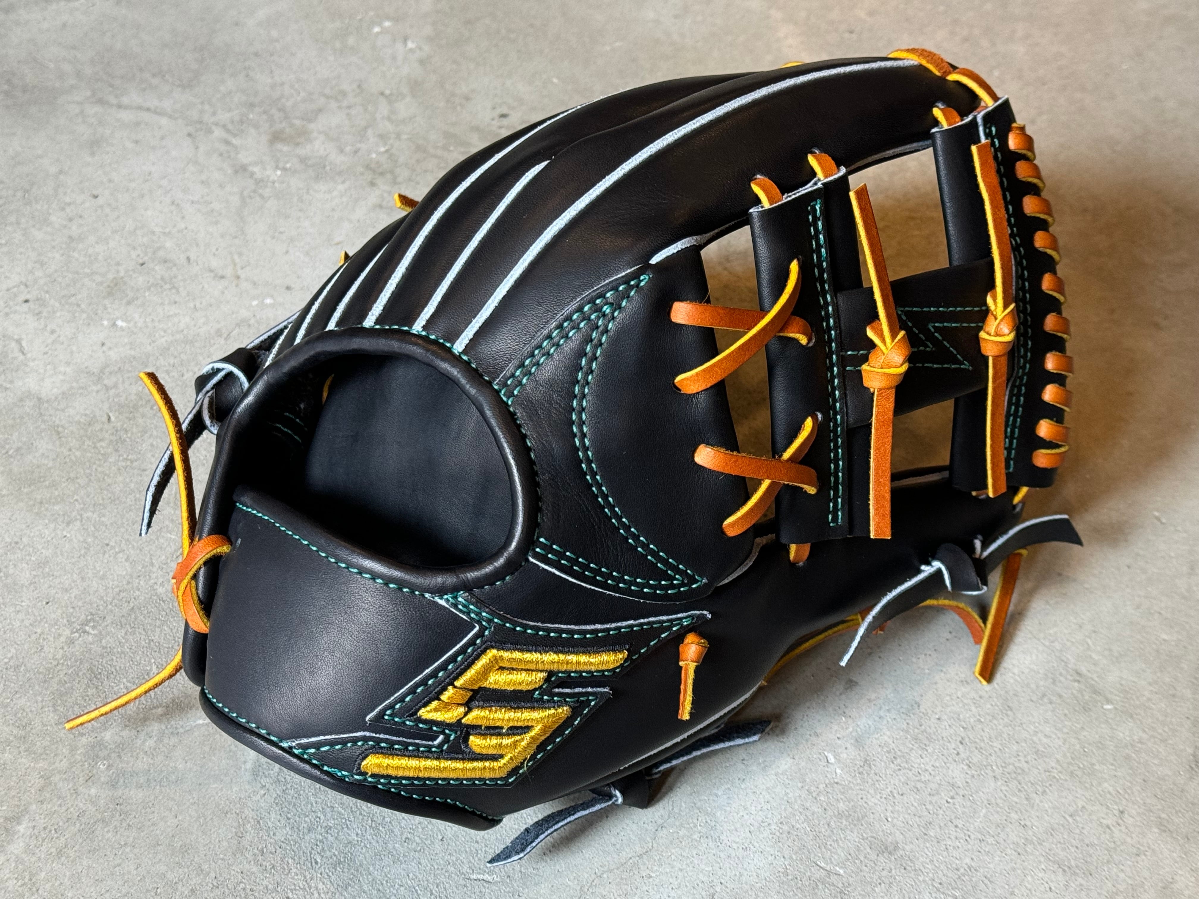 『最高の捕球をつくる』 〜その一球、その一瞬のために。〜 型番:F601 軽快にさばく、がっちり掴むなどマルチに力を発揮。あらゆるプレースタイルにマッチする内野手用の万能型。薬指でボールをホールドする設計が特徴。 ※サイズ約29.0cm ポジション:内野手 本体カラー:ブラック 紐カラー:タン ステッチカラー:サックス ラベル:ゴールド×ブラック 高校野球使用:可 『最高の捕球をつくる』 〜その一球、その一瞬のために。〜 その一球は必ず来る FIVEは「最高の捕球をつくる」をコンセプトに一貫した開発製造を行なっています。 これは、試合を左右する一球がプレイヤー自身、 またチームメイトに訪れるその瞬間を私たち作り手も同じ目線で考え、製品に活かす重要性を強く感じるからです。 いつ、誰に、どのような形でそれが訪れるのか誰も分からない。 けれど“己”にその一球が向いた時、どれだけのものを発揮できるか。 この備えこそ、日本の心技体という言葉にも通ずる要素だと考えています。 FIVEは、先ずその一球、その瞬間のためにグラブ機能を理論的に追求し形づくる。 そしてプレイヤーにとって、その一球、その瞬間が訪れた時に「このグラブがある、捕球できる」という心の自信をプレイヤーに与えられるものづくりを目指しています。 ※送料無料 ※型付け有の場合、加工期間に1週間程度かかる可能性がございます。予めご了承下さい。 追加で確認する事項がありましたらメールにてご連絡する事がございます。 ※柔らかさの目安(個人差はございます) 「硬め」・・・形を整える程度。お客様ご自身で柔らかくしていくイメージ。 「普通」・・・キャッチボールが出来る程度。多少の開閉ができるイメージ。 「柔らかめ」・・・ノックなど受けれる程度。しっかり開閉できるイメージ。 ※グラブ刺繍は、平裏土手部のみ可能。ご利用の際はグラブ刺繍ページをご確認下さい。 (メニューバー→カテゴリ→グラブ刺繍)