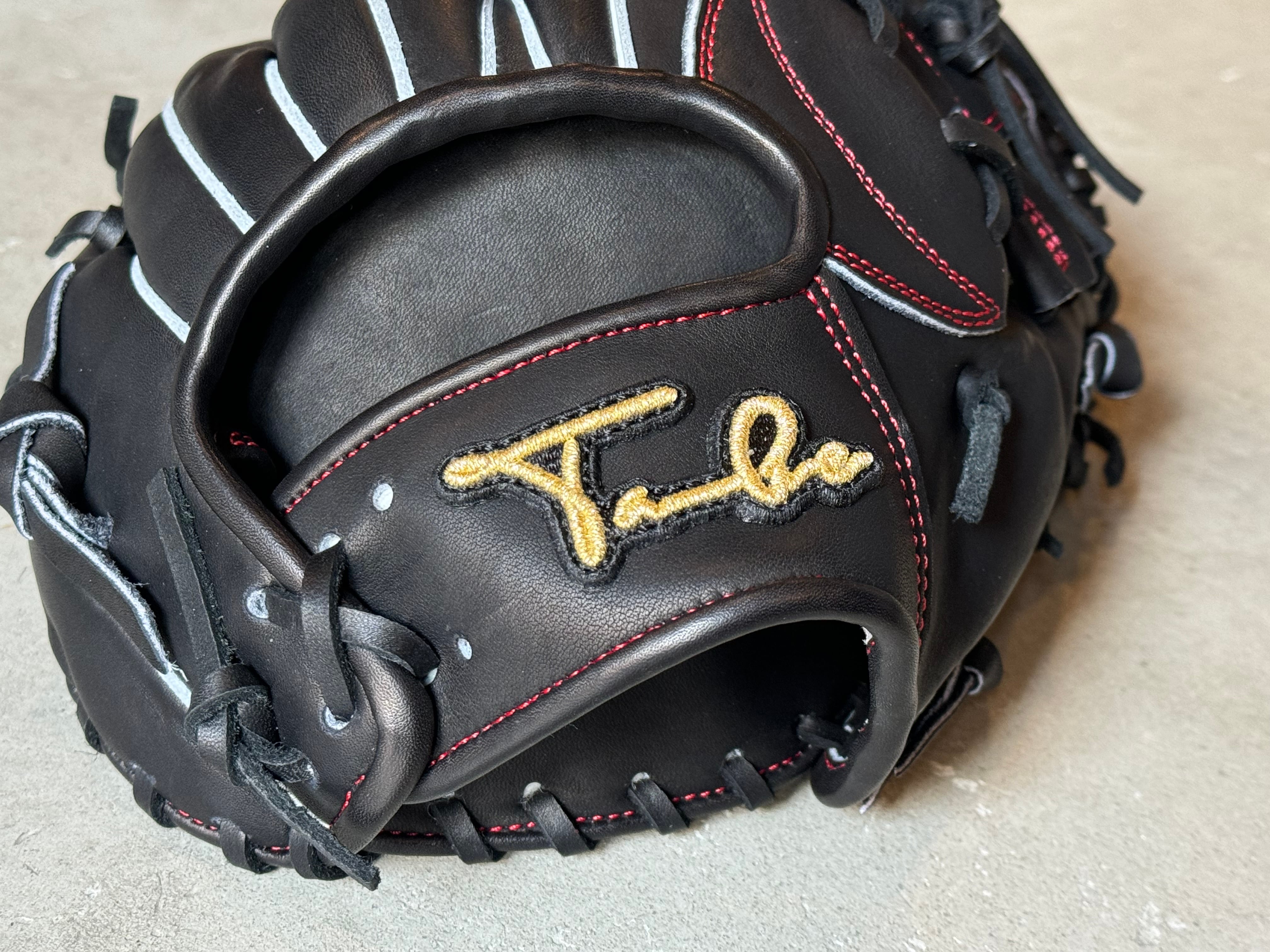 型番:TY-66 [元祖Take]TY-6型をFirst Takeで復刻。しっかり硬さを出すために選別した革を使用。 捕球面、約14cm。Take特有の手乗り感、脱力して打球に反応できるはめ感や小指側の連動性は健在に。 草野球プレーヤーはもちろん、中学生、高校生など上手くなりたい人にもぜひ使って欲しい。 ポジション:内野手 本体カラー:ブラック ステッチカラー:レッド ラベル:ゴールド×ブラック 専用グラブ袋:有 高校野球使用:可 [脱力した状態で打球を持てるグラブ] 柔らかいグラブ捌きを可能にする内野手用グラブ。 グラブ・ミット仕上げ専門ブランド「REAL FORM」が手掛ける。 計算しつくされた一品‼︎ 数量限定、超レアなアイテムです。 ※送料無料 ※型付け有の場合、加工期間に1週間程度かかる可能性がございます。予めご了承下さい。 追加で確認する事項がありましたらメールにてご連絡する事がございます。 ※柔らかさの目安(個人差はございます) 「硬め」・・・形を整える程度。お客様ご自身で柔らかくしていくイメージ。 「普通」・・・キャッチボールが出来る程度。多少の開閉ができるイメージ。 「柔らかめ」・・・ノックなど受けれる程度。しっかり開閉できるイメージ。 ※グラブ刺繍は、平裏土手部のみ可能。ご利用の際はグラブ刺繍ページをご確認下さい。 (メニューバー→カテゴリ→グラブ刺繍)