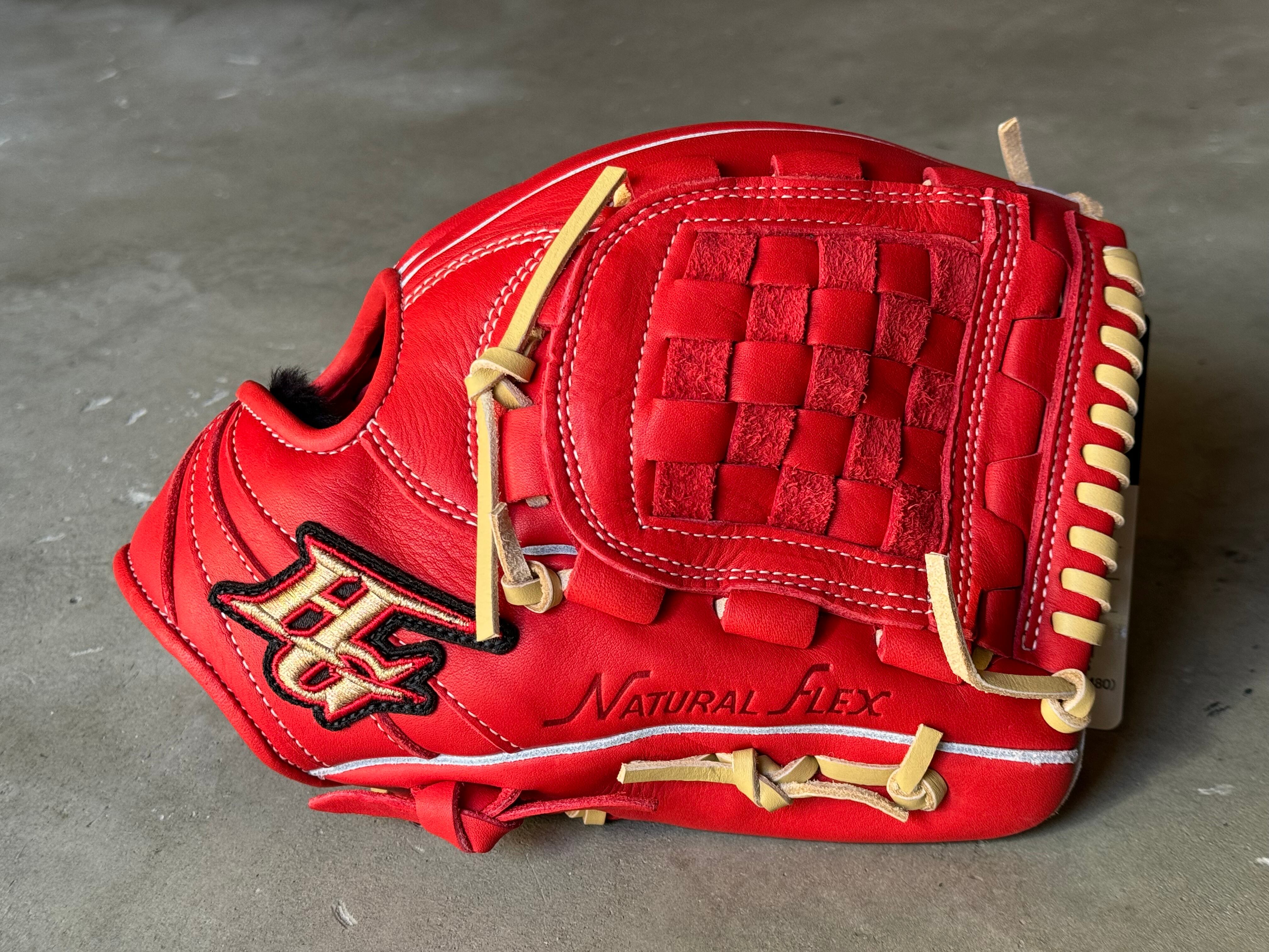 型番・サイズ:RKG-1213 L〜LL(対象5〜6年生) ポジション:オールポジション(28.0cm) 本体カラー:バーニングオレンジ×キャメル ステッチカラー:ホワイト ラベル:シャイニングゴールド×レッド×ブラック 専用グラブ袋無し [Hi-GOLD]ROOKIES 少年軟式用グラブ 本物の質感にこだわり、軽さと扱いやすさを追求した人気の新ルーキーズシリーズ。 野球を始めるならまずはこちらのグローブから‼︎ 入門編にピッタリ。 小学生が握りやすいように、「革質」「芯材」にもこだわった扱いやすい設計。 当店の型付けも込みで、すぐにお使い頂けるグラブに仕上がります。 ※型付け有の場合、加工期間に1週間程度かかる可能性がございます。予めご了承下さい。 追加で確認する事項がありましたらメールにてご連絡する事がございます。 ※柔らかさの目安(個人差はございます) 「硬め」・・・形を整える程度。お客様ご自身で柔らかくしていくイメージ。 「普通」・・・キャッチボールが出来る程度。多少の開閉ができるイメージ。 「柔らかめ」・・・ノックなど受けれる程度。しっかり開閉できるイメージ。 ※グラブ刺繍は、平裏土手部のみ可能。ご利用の際はグラブ刺繍ページをご確認下さい。 (メニューバー→カテゴリ→グラブ刺繍)