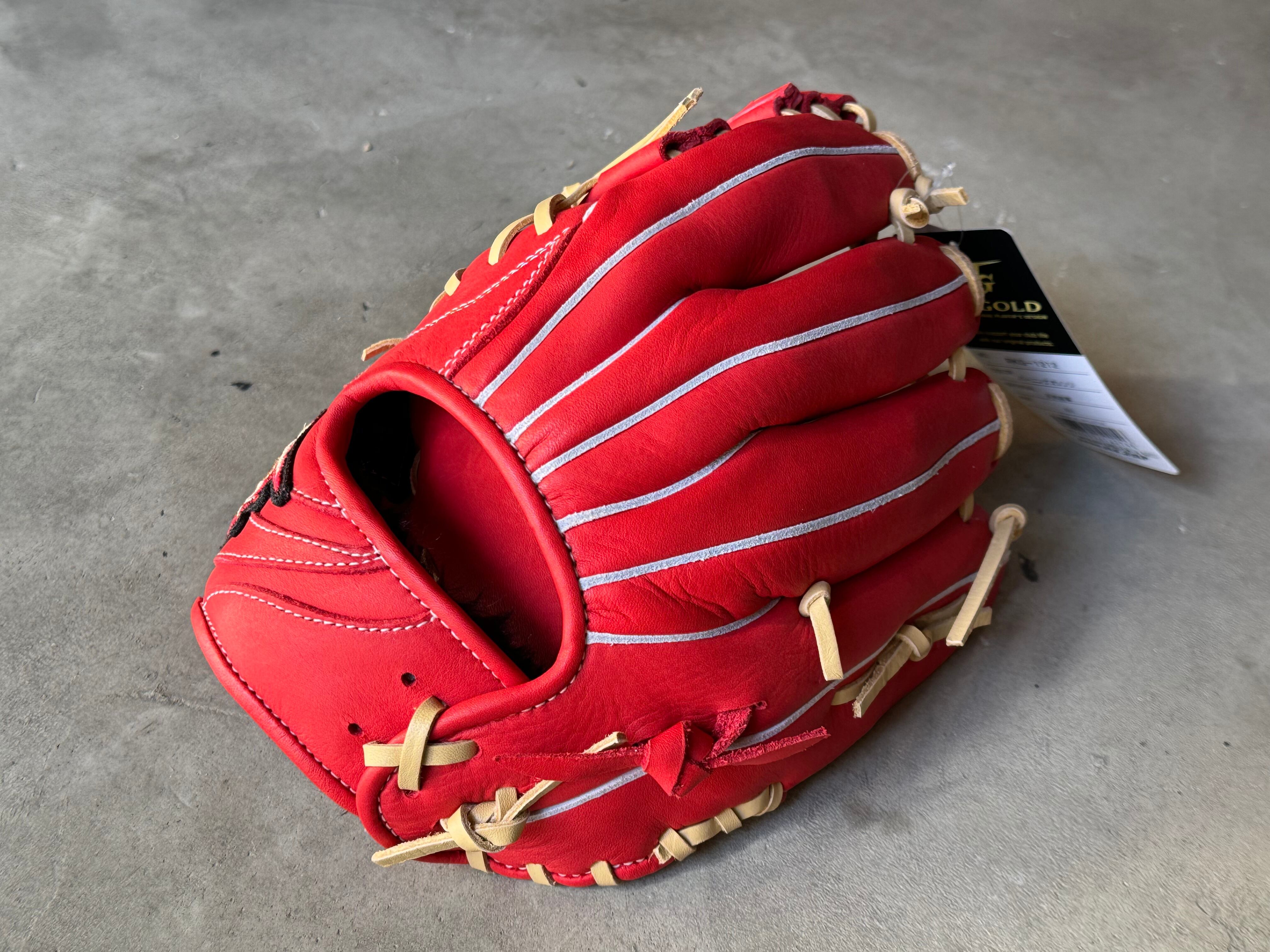 型番・サイズ:RKG-1212 M〜L(対象3〜5年生) ポジション:オールポジション(27.5cm) 本体カラー:バーニングオレンジ ステッチカラー:ホワイト ラベル:シャイニングゴールド×レッド×ブラック 専用グラブ袋無し [Hi-GOLD]ROOKIES 少年軟式用グラブ 本物の質感にこだわり、軽さと扱いやすさを追求した人気の新ルーキーズシリーズ。 野球を始めるならまずはこちらのグローブから‼︎ 入門編にピッタリ。 小学生が握りやすいように、「革質」「芯材」にもこだわった扱いやすい設計。 当店の型付けも込みで、すぐにお使い頂けるグラブに仕上がります。 ※型付け有の場合、加工期間に1週間程度かかる可能性がございます。予めご了承下さい。 追加で確認する事項がありましたらメールにてご連絡する事がございます。 ※柔らかさの目安(個人差はございます) 「硬め」・・・形を整える程度。お客様ご自身で柔らかくしていくイメージ。 「普通」・・・キャッチボールが出来る程度。多少の開閉ができるイメージ。 「柔らかめ」・・・ノックなど受けれる程度。しっかり開閉できるイメージ。 ※グラブ刺繍は、平裏土手部のみ可能。ご利用の際はグラブ刺繍ページをご確認下さい。 (メニューバー→カテゴリ→グラブ刺繍)