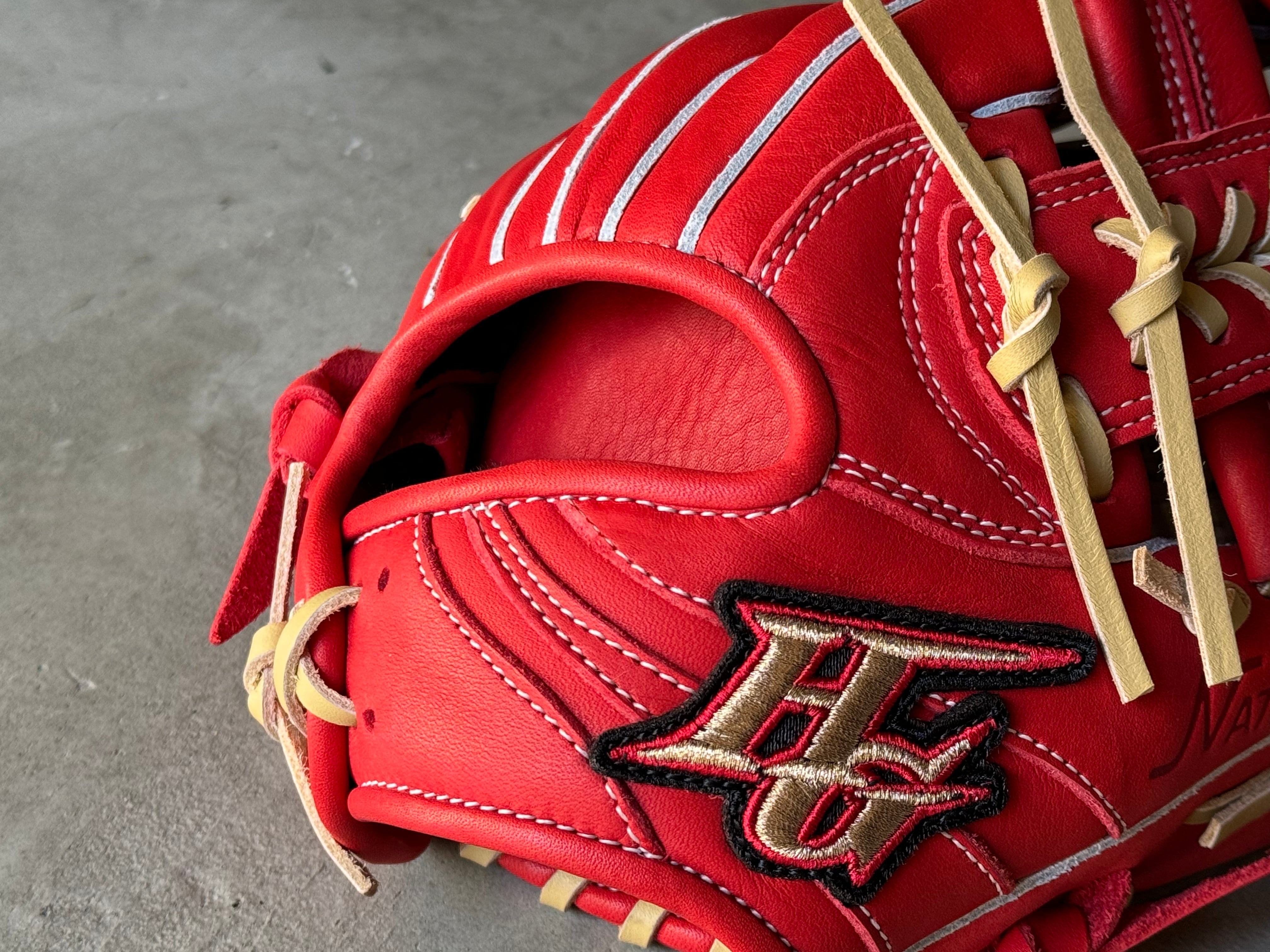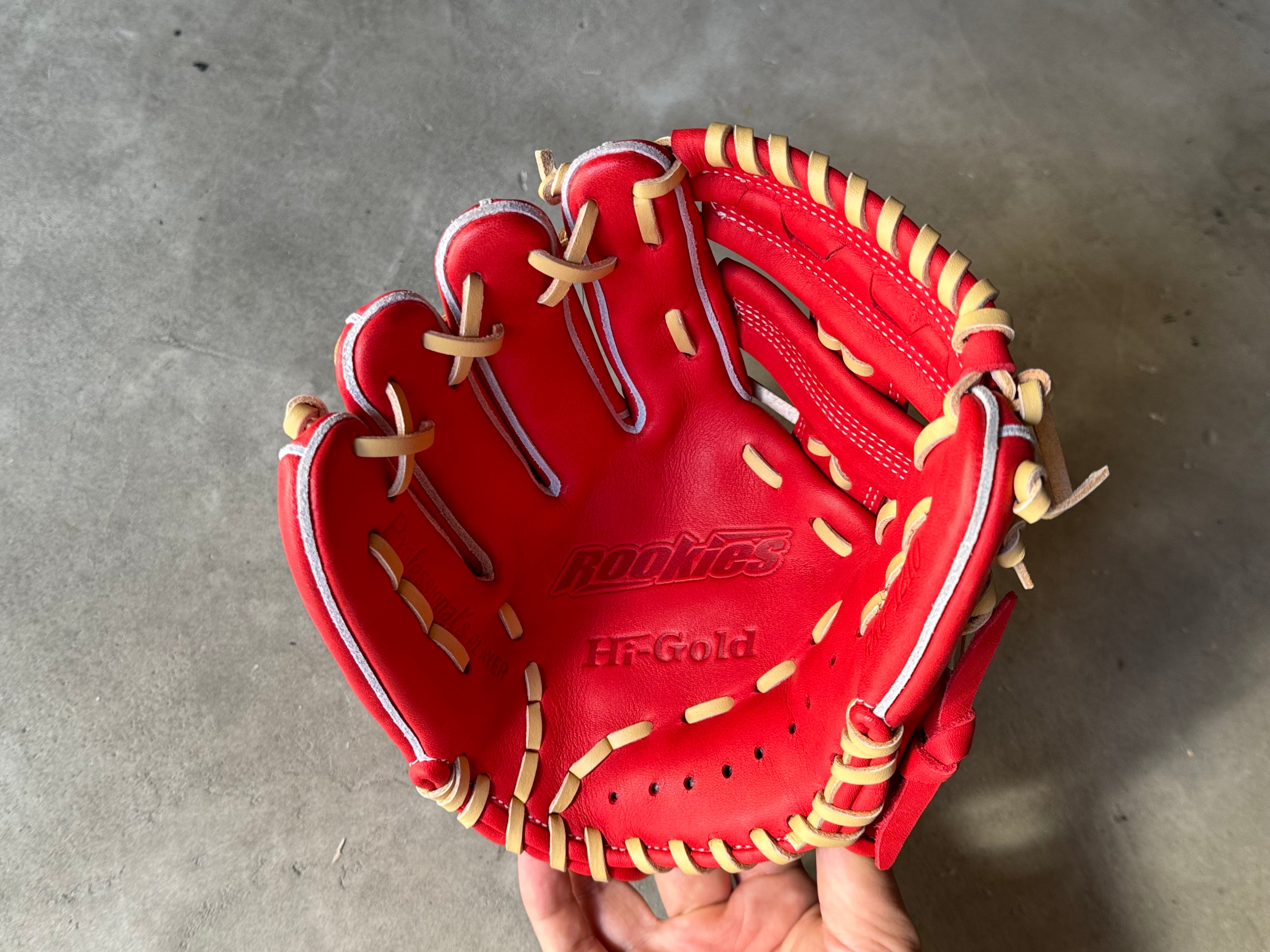 型番・サイズ:RKG-1210 SS(対象1〜2年生) ポジション:オールポジション(25.0cm) 本体カラー:バーニングオレンジ×キャメル ステッチカラー:ホワイト ラベル:シャイニングゴールド×レッド×ブラック 専用グラブ袋無し [Hi-GOLD]ROOKIES 少年軟式用グラブ 本物の質感にこだわり、軽さと扱いやすさを追求した人気の新ルーキーズシリーズ。 野球を始めるならまずはこちらのグローブから‼︎ 入門編にピッタリ。 小学生が握りやすいように、「革質」「芯材」にもこだわった扱いやすい設計。 当店の型付けも込みで、すぐにお使い頂けるグラブに仕上がります。 ※型付け有の場合、加工期間に1週間程度かかる可能性がございます。予めご了承下さい。 追加で確認する事項がありましたらメールにてご連絡する事がございます。 ※柔らかさの目安(個人差はございます) 「硬め」・・・形を整える程度。お客様ご自身で柔らかくしていくイメージ。 「普通」・・・キャッチボールが出来る程度。多少の開閉ができるイメージ。 「柔らかめ」・・・ノックなど受けれる程度。しっかり開閉できるイメージ。 ※グラブ刺繍は、平裏土手部のみ可能。ご利用の際はグラブ刺繍ページをご確認下さい。 (メニューバー→カテゴリ→グラブ刺繍)