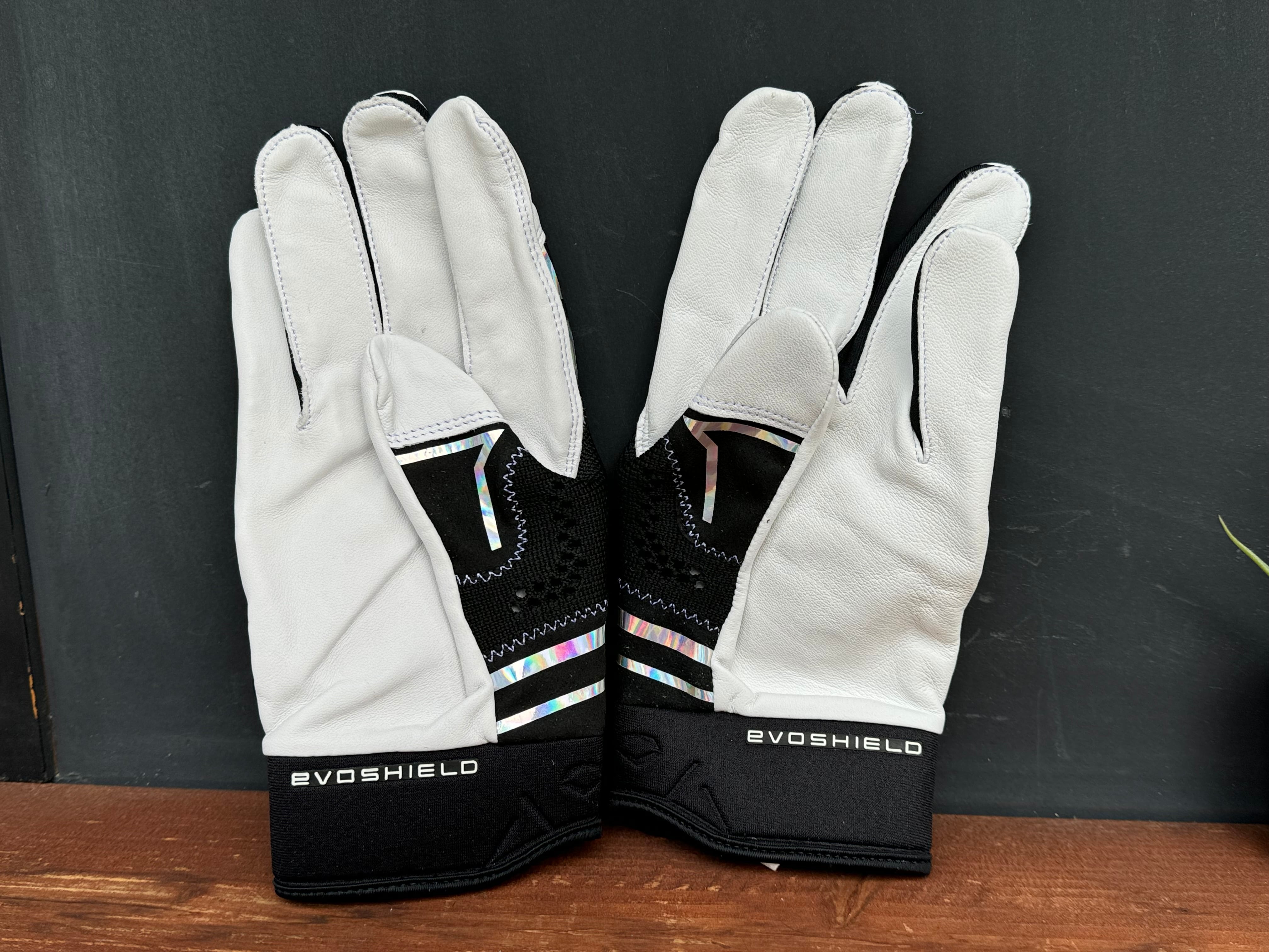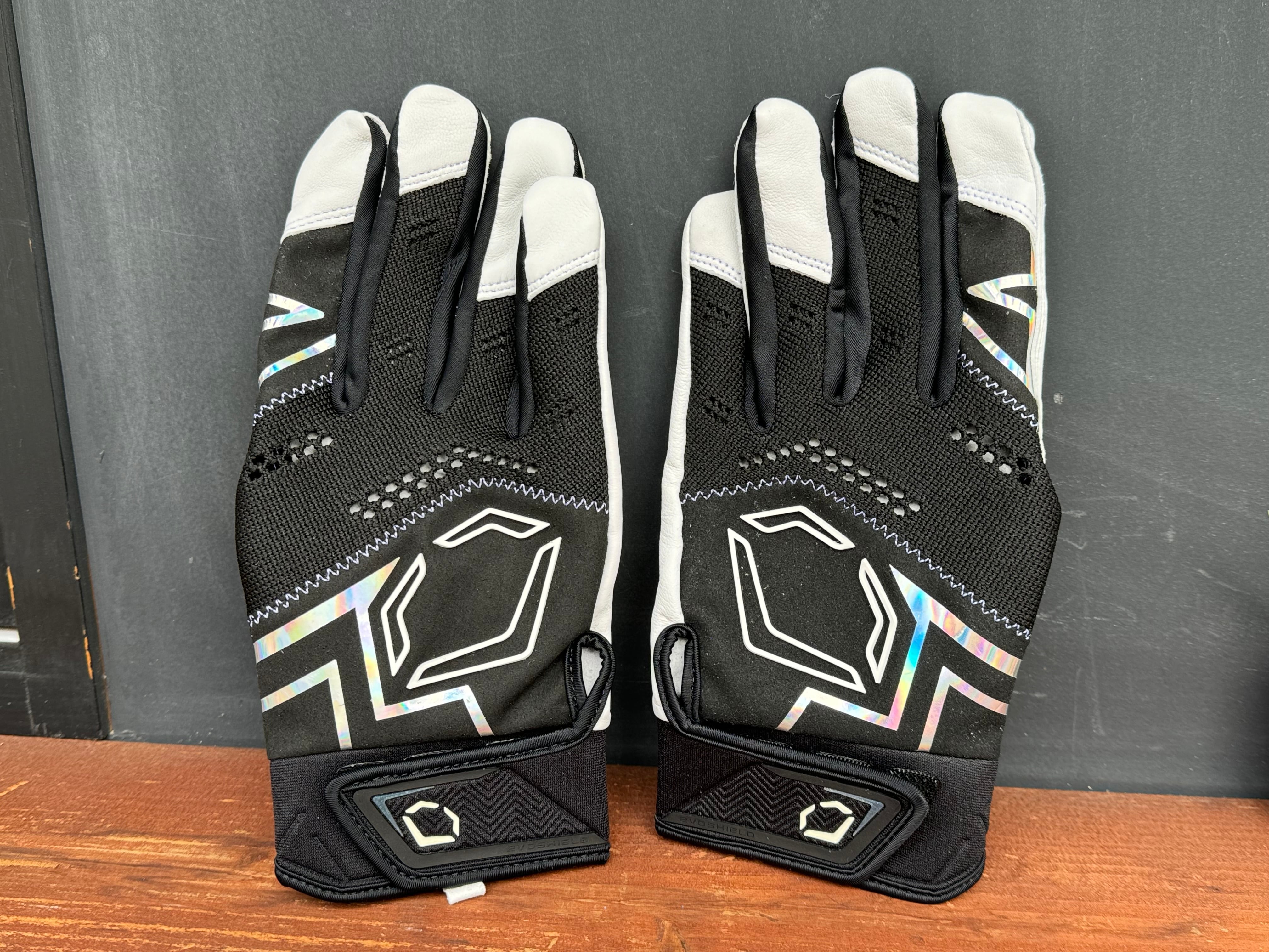 【evoSHIELD】バッティンググローブ 両手用 優れたグリップ力と耐久性を兼ね備えたハイパフォーマンスシープモデル。 PRO-SRZ V2 品番:WB57305 カラー:(01)ブラック サイズ:S、M、L、XL 素材:羊革、ナイロン、合成皮革、PU、ポリエステル(インドネシア製) 甲側にパフォーマンスニットバックハンドを採用することで伸縮性と通気性を追求。