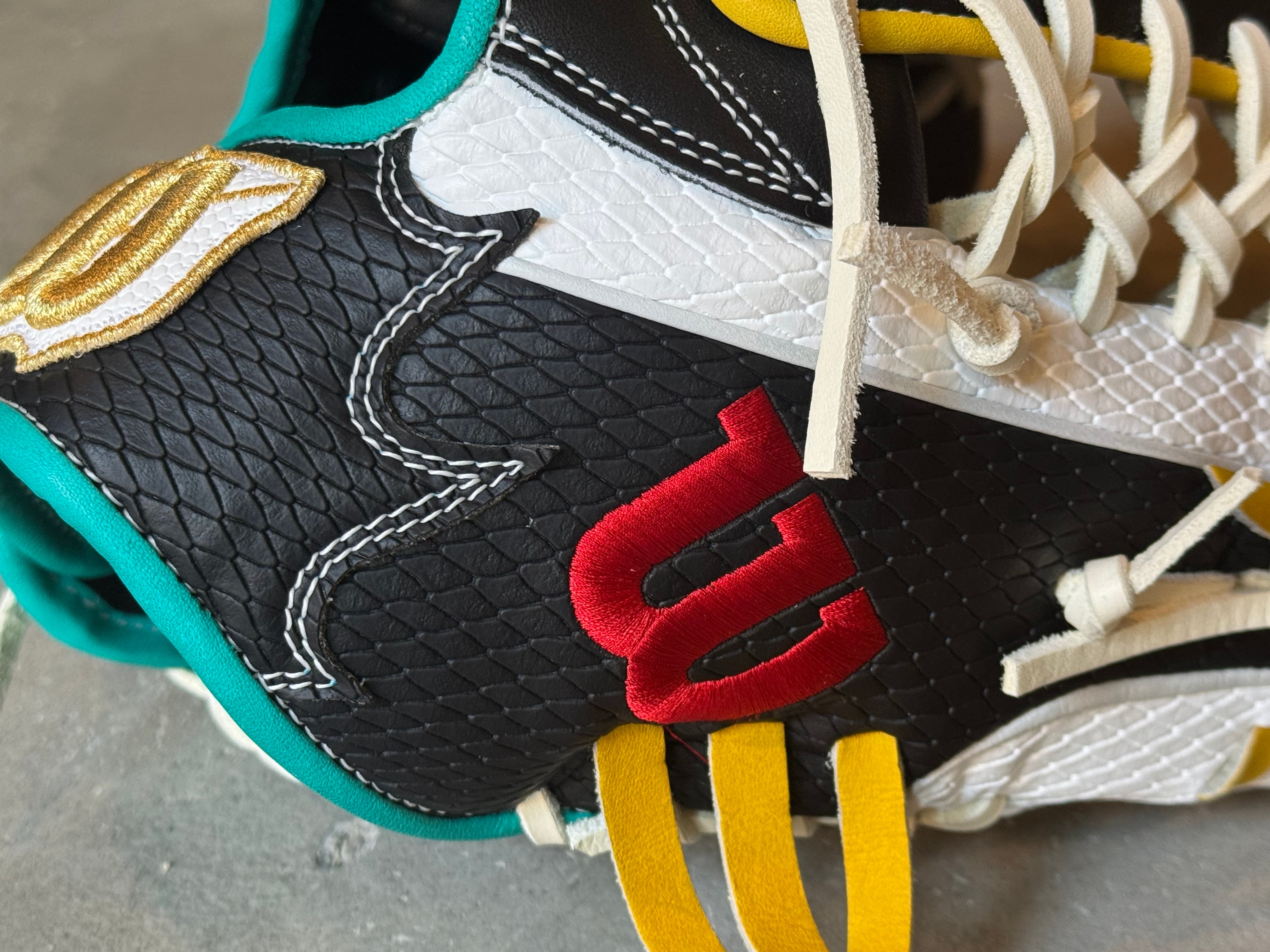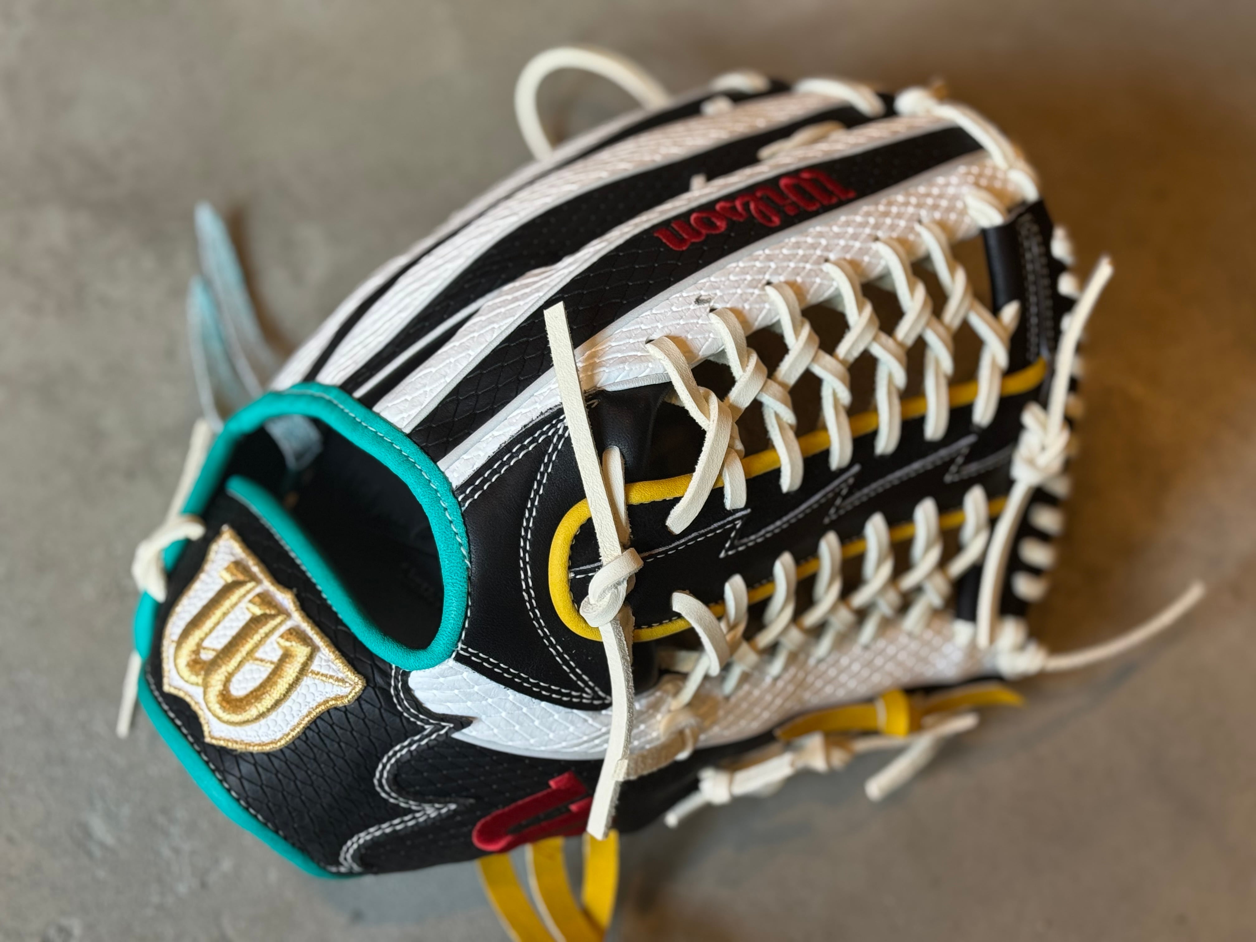 〜Wilsonの軟式オーダーを店舗別注でセレクトしたシリーズ〜 定番モデルでは不可能な良質かつデザイン性・刺繍もふんだんに使用した87スポーツ限定モデル 型番:D8型 レッドソックス吉田正尚選手愛用。 Wilsonの人気の外野手用。(12.5インチ) 大きく開き、深いポケットで打球を確実に捕るグラブ。ウェブも流行りのダブルシャープを使用し、ガッチリ掴むことをサポート。 〜デュアル・テクノロジー〜 丸みを帯びた独特な形状により、ポケット以外の部分にボールが当たっても自然とポケットに収まり、捕球から正確なスローイングが可能。 深めでしっかりとキャッチできるモデルとなっております。 ポジション:外野手 本体カラー:ブラック×ブラックSSN×ホワイトSSN ステッチカラー:ホワイト 紐カラー:ホワイト ラベル :ホワイトSS 専用グラブ袋:有 深めでしっかりとキャッチできるモデルとなっております。 縦にポケットを使う事で握り替えも早く素早い送球が出来ます。 『守備率10割に近づくグラブ』 ◎適材適所設計 〜ポジションによりプレー内容はことなる。よってグラブの役割も異なる〜 「適材(最もふさわしい革と芯材)」を「適所」に採用し、細部に拘って日本の職人が手仕事により作り上げた、技術力向上最重視グラブ。 ○ 外野手用〜飛球、ゴロを確実に捕球するためのグラブ〜 ・球際の強さを発揮する大きく開くポケット設計。指先まで力が伝わり操作性抜群。 ※送料無料 ※型付け有の場合、加工期間に1週間程度かかる可能性がございます。予めご了承下さい。 追加で確認する事項がありましたらメールにてご連絡する事がございます。 ※柔らかさの目安(個人差はございます) 「硬め」・・・形を整える程度。お客様ご自身で柔らかくしていくイメージ。 「普通」・・・キャッチボールが出来る程度。多少の開閉ができるイメージ。 「柔らかめ」・・・ノックなど受けれる程度。しっかり開閉できるイメージ。 ※グラブ刺繍は、平裏土手部のみ可能。ご利用の際はグラブ刺繍ページをご確認下さい。 (メニューバー→カテゴリ→グラブ刺繍)