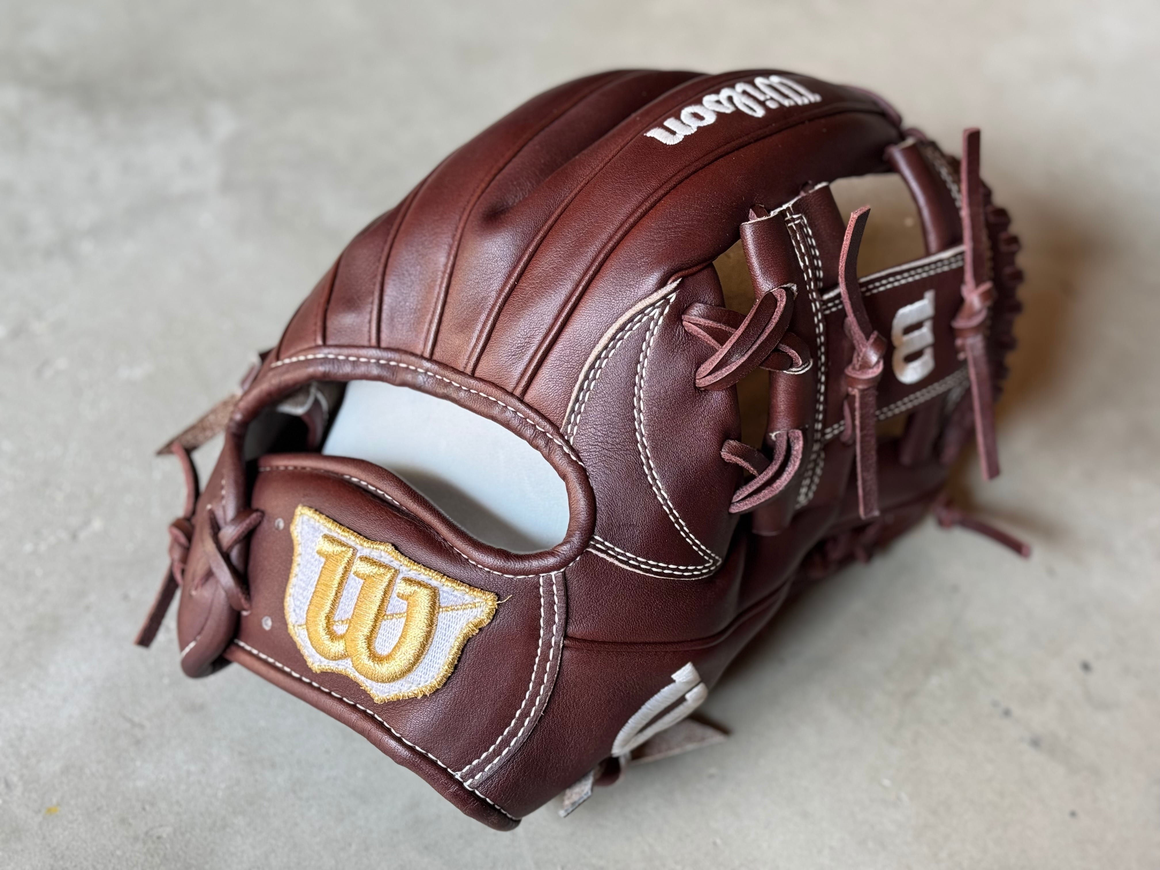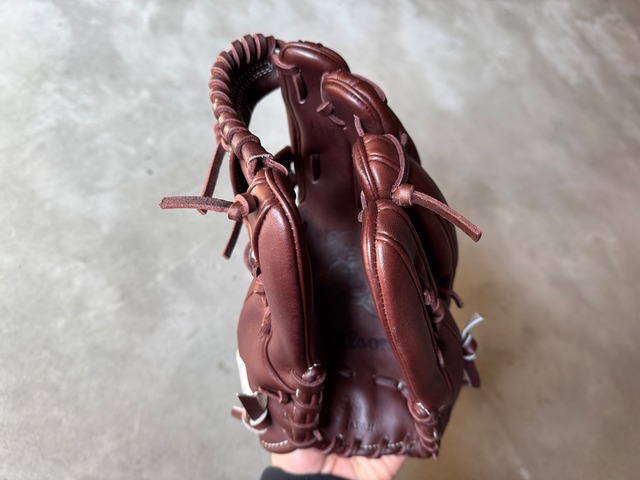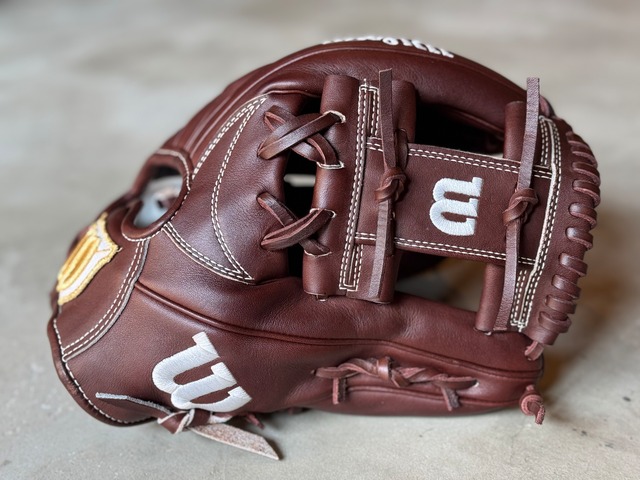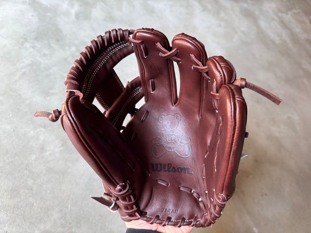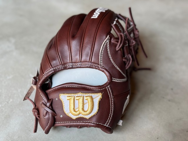 型付け済即戦力‼︎ 店舗別注【Wilson】軟式用グローブ 1723型 [Wilson中村氏]直伝型付け 型番:1723型コユニ推奨 (11.75インチ) US NEWモデル。ポケットをタテに使うグラブ。 87型より親指が6mm程短く、小指も少し短くし、はめると87型より小さく感じるモデル。 [注目の新機能] ⚪︎アーチフィッター…手首の動きを妨げることなく、手の甲をしっかりと押さえつけることで、手との一体感を向上。 ⚪︎フラットバインディング…人差し指を出す部分のヘリ革を特殊縫製することで人差し指の痛さを軽減。 〜デュアル・テクノロジー〜 丸みを帯びた独特な形状により、ポケット以外の部分にボールが当たっても自然とポケットに収まり、捕球から正確なスローイングが可能。 深めでしっかりとキャッチできるモデルとなっております。 ポジション:内野手 本体カラー:Dブラウン×ホワイト ステッチカラー:ホワイト 紐カラー:ブラウン ラベル :ホワイト×ホワイト 専用グラブ袋:有 高校野球使用:不可 深めでしっかりとキャッチできるモデルとなっております。 縦にポケットを使う事で握り替えも早く素早い送球が出来ます。 『守備率10割に近づくグラブ』 ◎適材適所設計 〜ポジションによりプレー内容はことなる。よってグラブの役割も異なる〜 「適材(最もふさわしい革と芯材)」を「適所」に採用し、細部に拘って日本の職人が手仕事により作り上げた、技術力向上最重視グラブ。 ○内野手用〜正確に打球をさばくためのグラブ〜 ・手のように自由に動く柔軟性と、軽快な守備を可能にする軽さ、高い耐久性の最強コンビネーション。 ※送料無料 ※型付け有の場合、加工期間に1週間程度かかる可能性がございます。予めご了承下さい。 追加で確認する事項がありましたらメールにてご連絡する事がございます。 ※柔らかさの目安(個人差はございます) 「硬め」・・・形を整える程度。お客様ご自身で柔らかくしていくイメージ。 「普通」・・・キャッチボールが出来る程度。多少の開閉ができるイメージ。 「柔らかめ」・・・ノックなど受けれる程度。しっかり開閉できるイメージ。 ※グラブ刺繍は、平裏土手部のみ可能。ご利用の際はグラブ刺繍ページをご確認下さい。 (メニューバー→カテゴリ→グラブ刺繍)