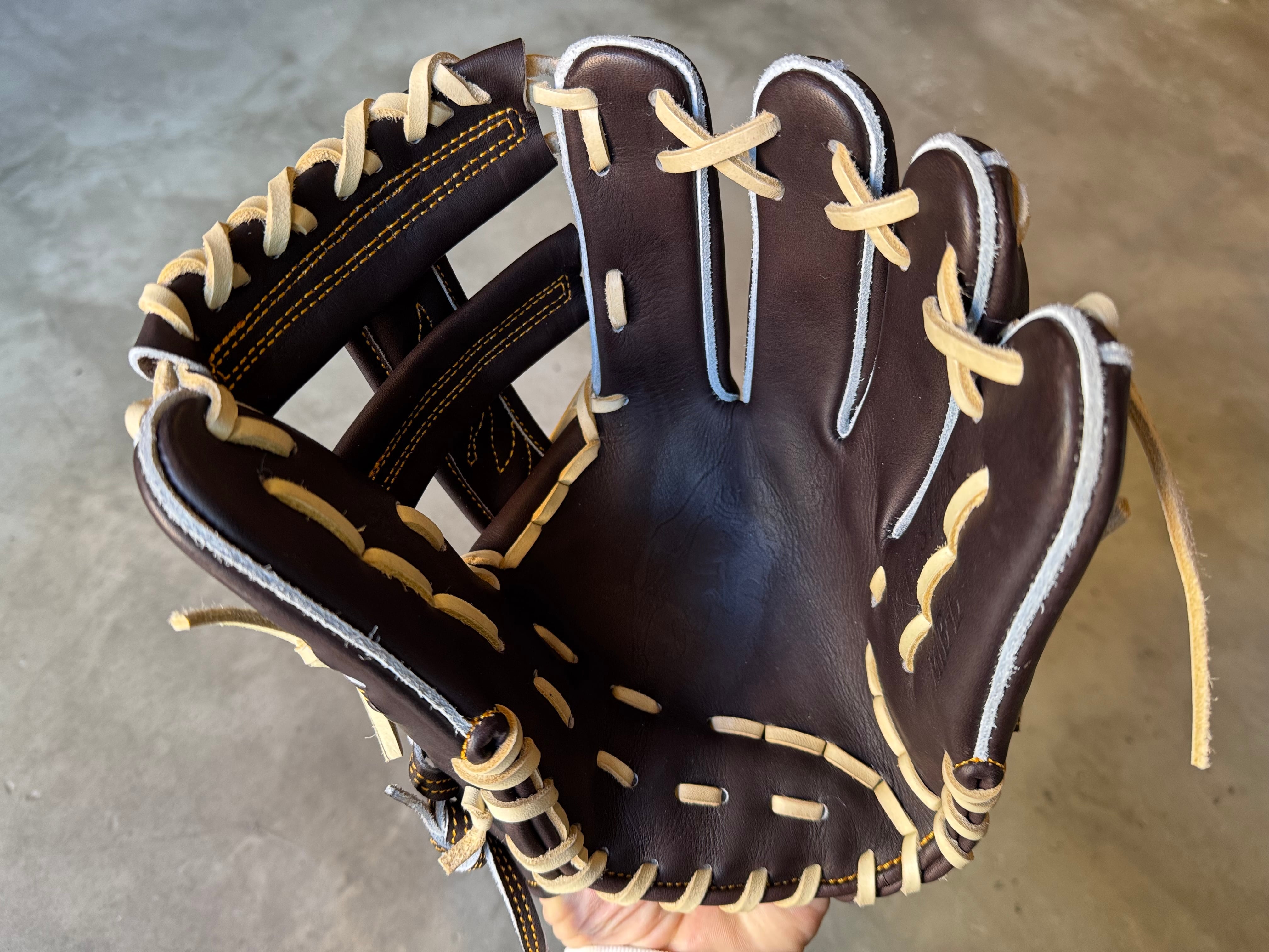 型番:MIE-L TEPPEN人気の内野手用[MIE-L]約28.0cm。 クロスウェブで逆シングルも◎ ポジション:内野手 本体カラー:Bブラウン ヒラウラカラー:Dオレンジ ヒモカラー:ブロンド ステッチカラー:オレンジ ラベル:限定ラベル 専用グラブ袋:有 ボーイズ・ヤング・高校野球使用:可 TEPPENはじめ氏『至極仕上げ』 TEPPENのグラブは、はじめ氏が魂を込めて形を整えて店舗に入荷してくる。 質感、手馴染みの良さも健在のTEPPENレザーも相まって良いグラブに仕上がってます。 ⭐︎自分だけのTEPPENグローブを作ろう! こちらのECサイトでは、TEPPENグローブのオーダーも受付可能です。 納期は2ヶ月半〜3ヶ月ほど。 お気軽にご相談下さい。 ※送料無料 ※型付け有の場合、加工期間に1週間程度かかる可能性がございます。予めご了承下さい。 追加で確認する事項がありましたらメールにてご連絡する事がございます。 ※柔らかさの目安(個人差はございます) 「硬め」・・・形を整える程度。お客様ご自身で柔らかくしていくイメージ。 「普通」・・・キャッチボールが出来る程度。多少の開閉ができるイメージ。 「柔らかめ」・・・ノックなど受けれる程度。しっかり開閉できるイメージ。